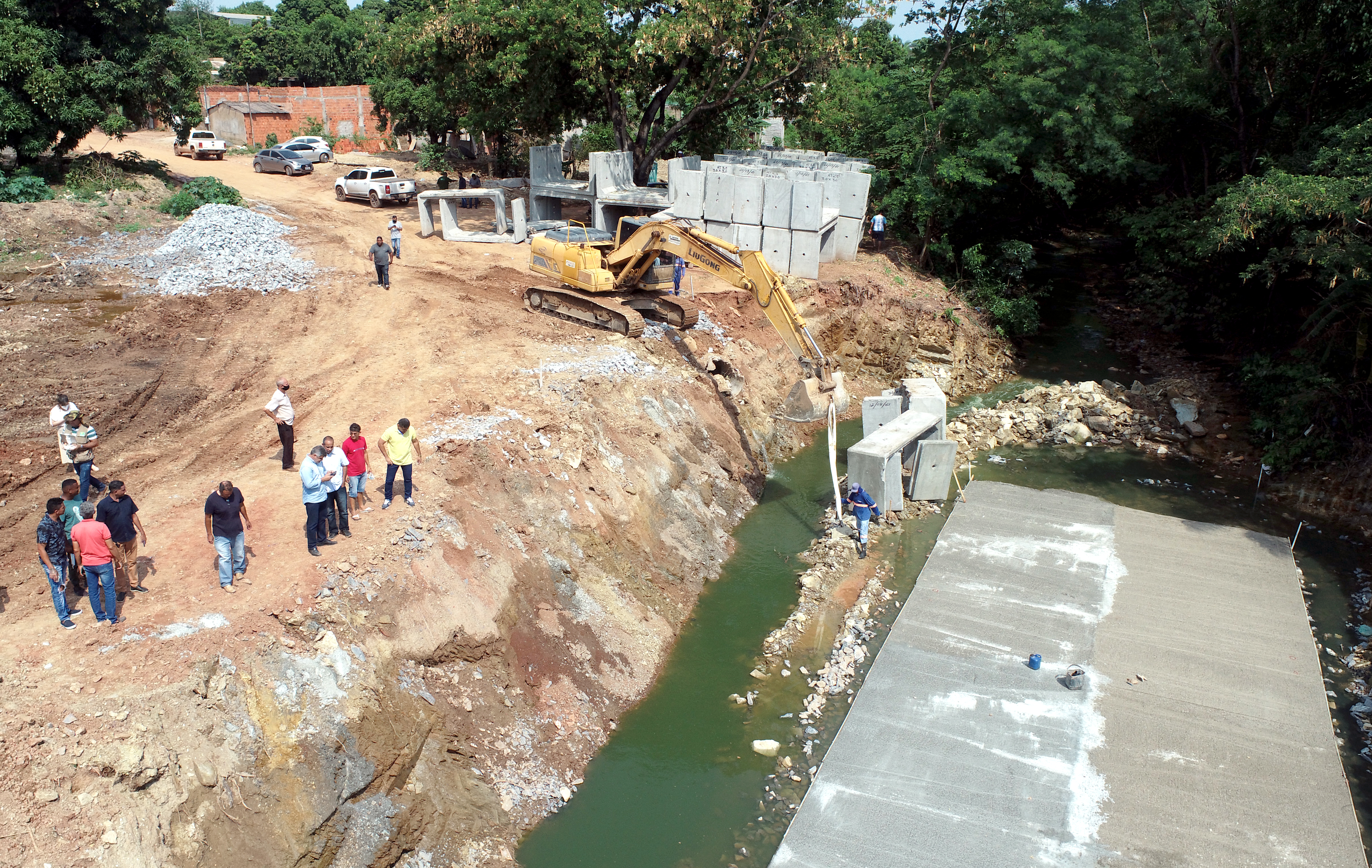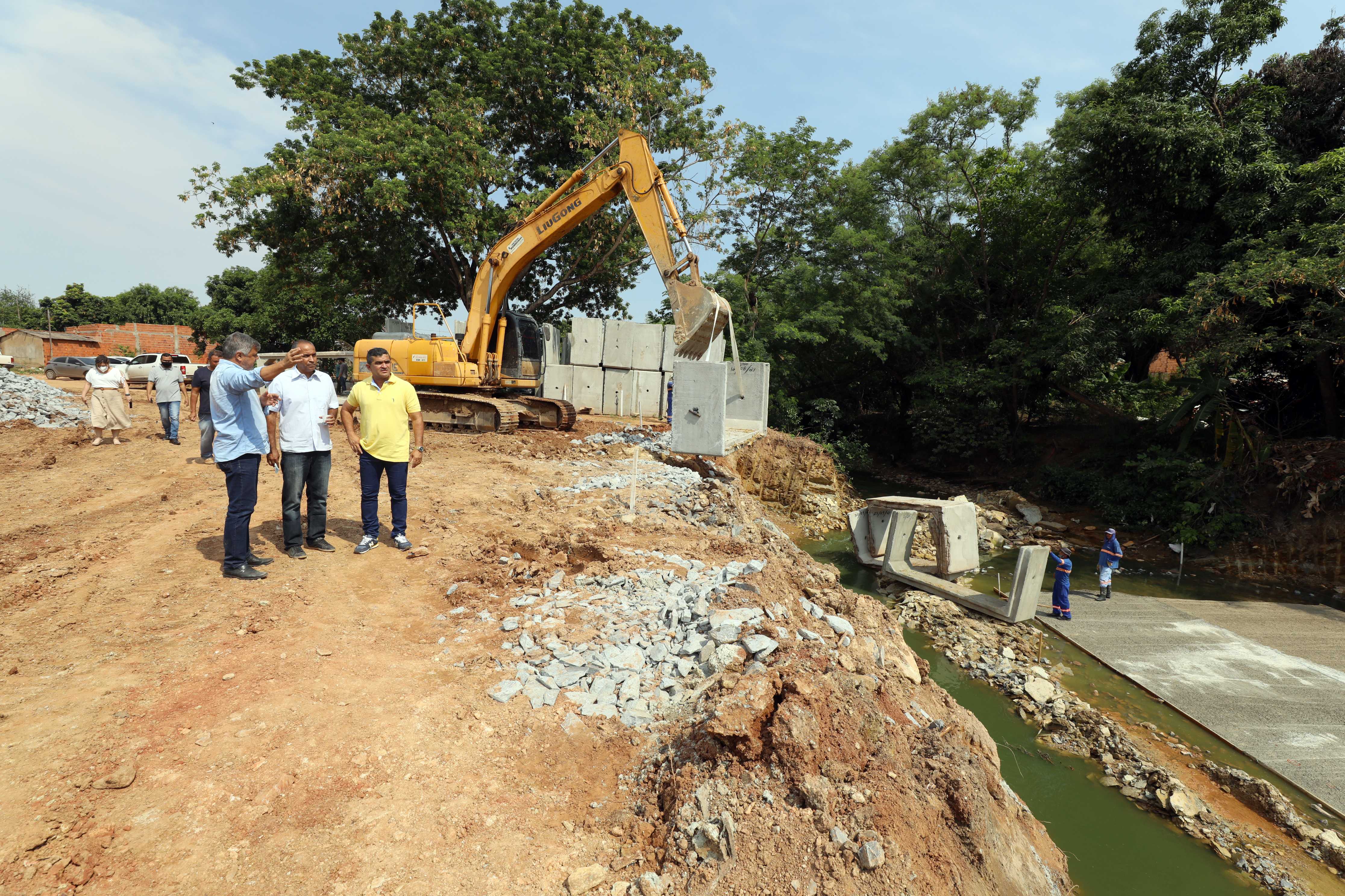 No local, que faz a ligação entre a Dante Martins de Oliveira (Planalto) e a Rua P (Novo Horizonte), os trabalhadores já efetuaram a concretagem da base de apoio para a instalação do conjunto de aduelas que formará o bueiro celular sobre o córrego. A edificação da travessia teve início neste mês e a previsão de que até o fim deste ano seja concluído, conforme cronograma da Secretaria Municipal de Obras Públicas.