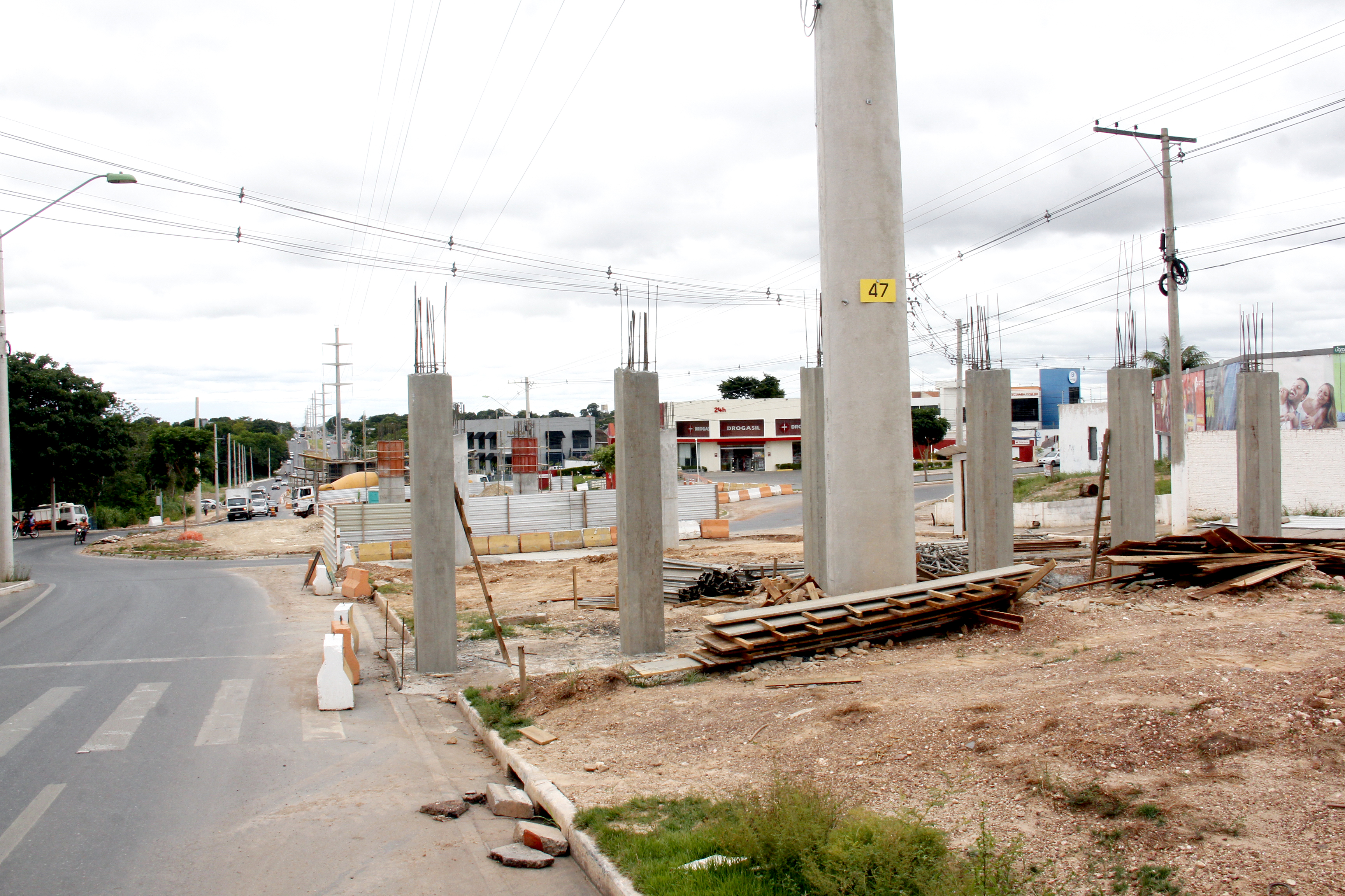 Igualmente, na Avenida Profª Edna Maria Albuquerque Affi (Av. das Torres) uma estrutura semelhante está sendo edificada. No local, o trabalho se encontra em um estágio mais avançado, com os pilares de sustentação prontos e recebendo a construção das vigas transversais. De acordo com o planejamento, nas próximas semanas as etapas de infra e mesoestrutura devem ser concluídas, iniciando a fase de superestrutura.