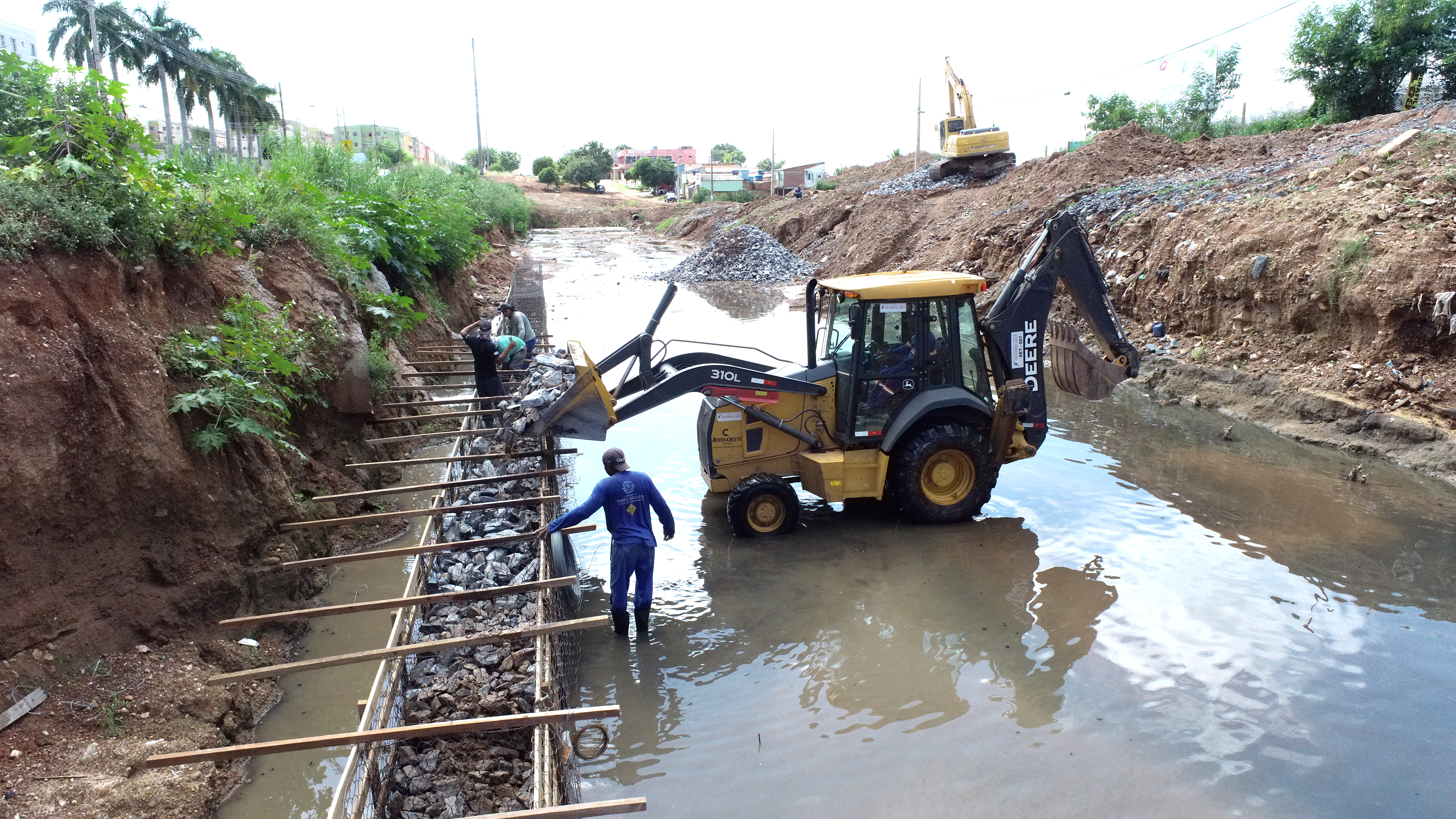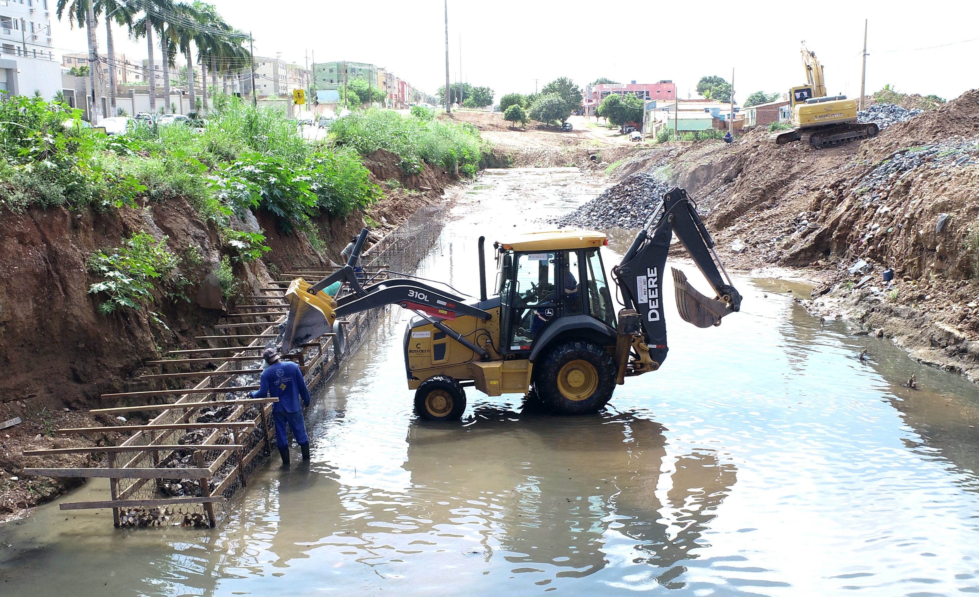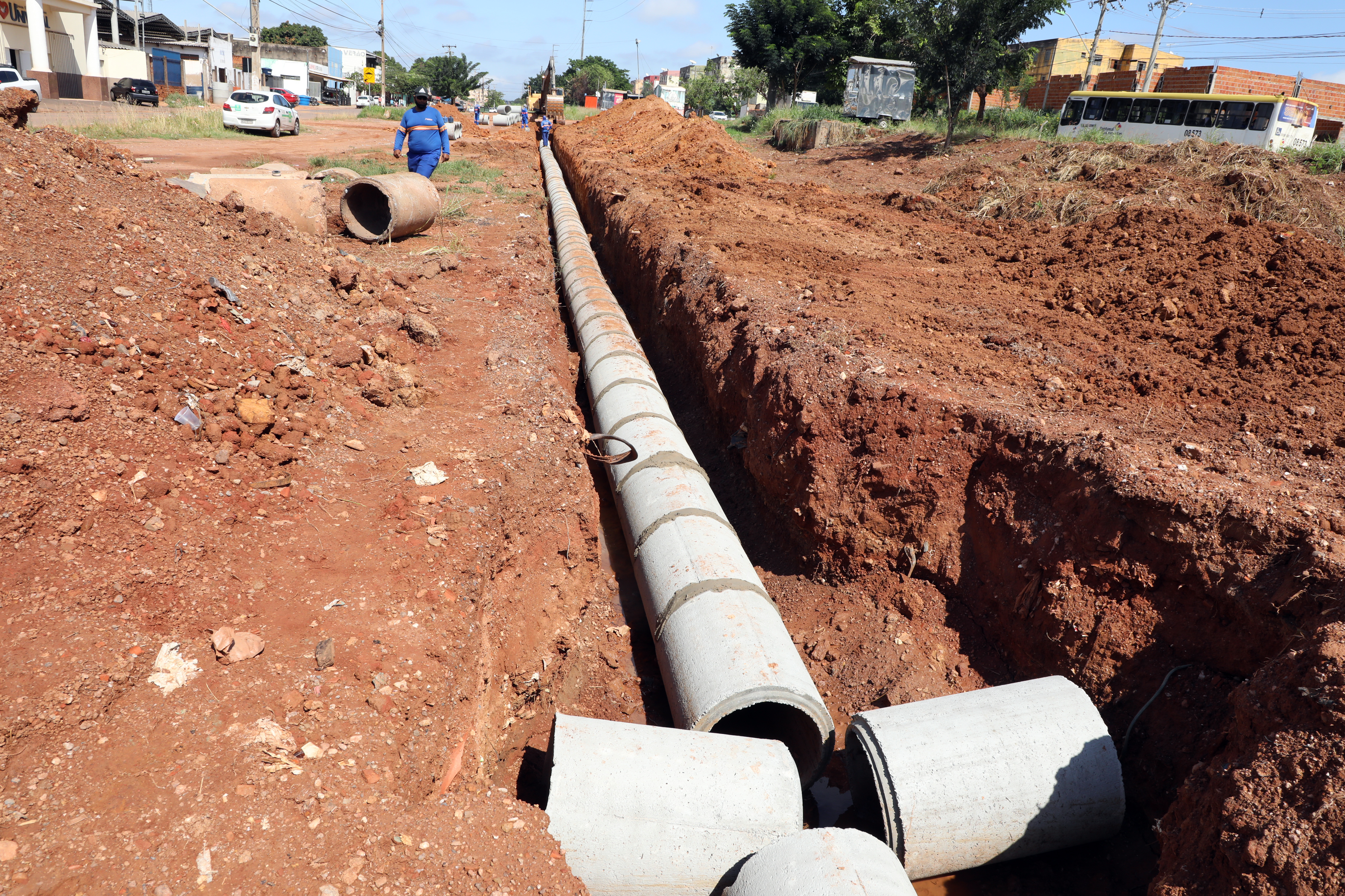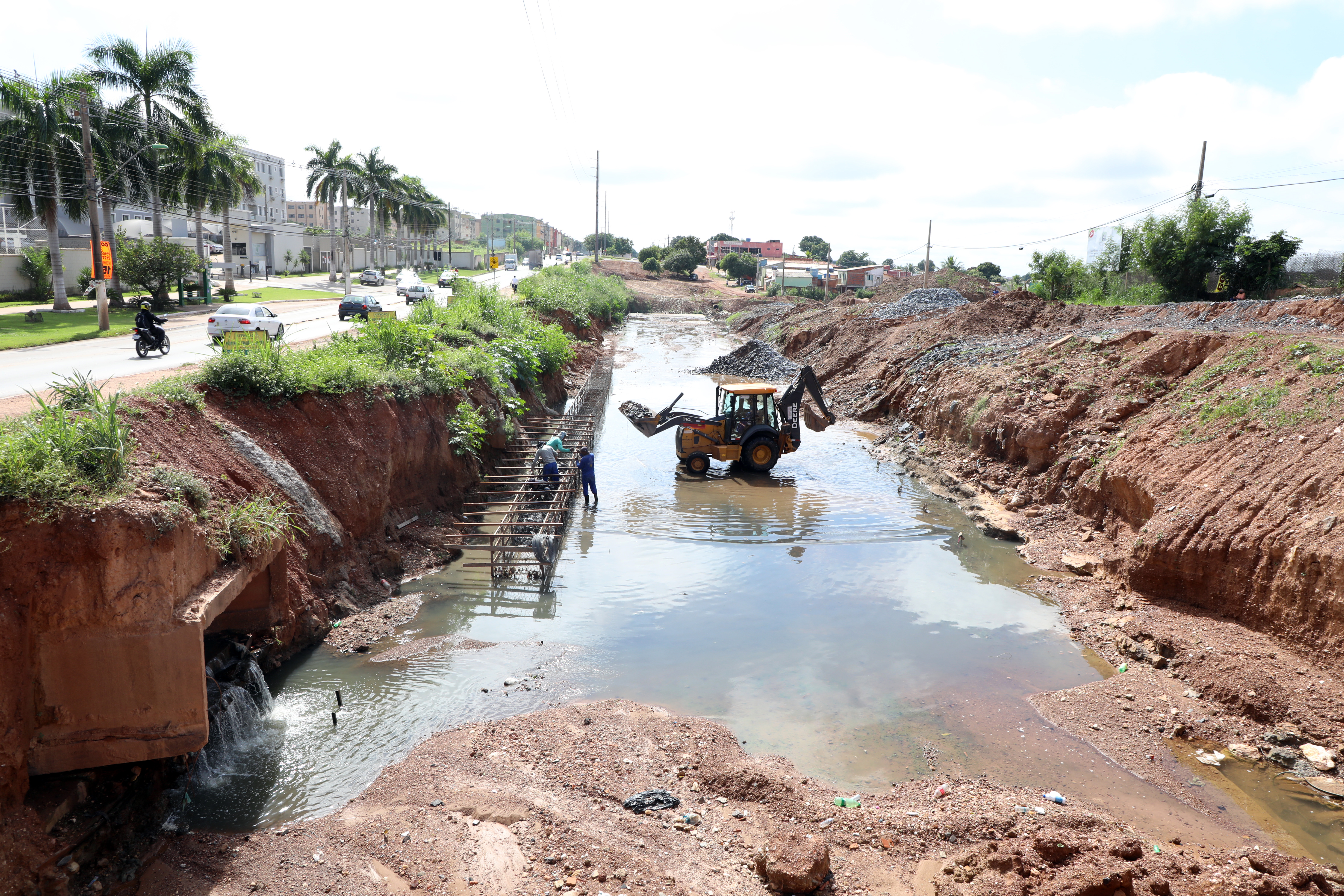 Neste momento, após superar as fases de desassoreamento e demarcação do córrego que passa pela via, uma equipe trabalha na construção do muro de gabião nas paredes laterais do local. Somado a isso, em outro trecho da avenida, também é executada a etapa de instalação da tubulação que compõe o sistema de drenagem de águas pluviais.