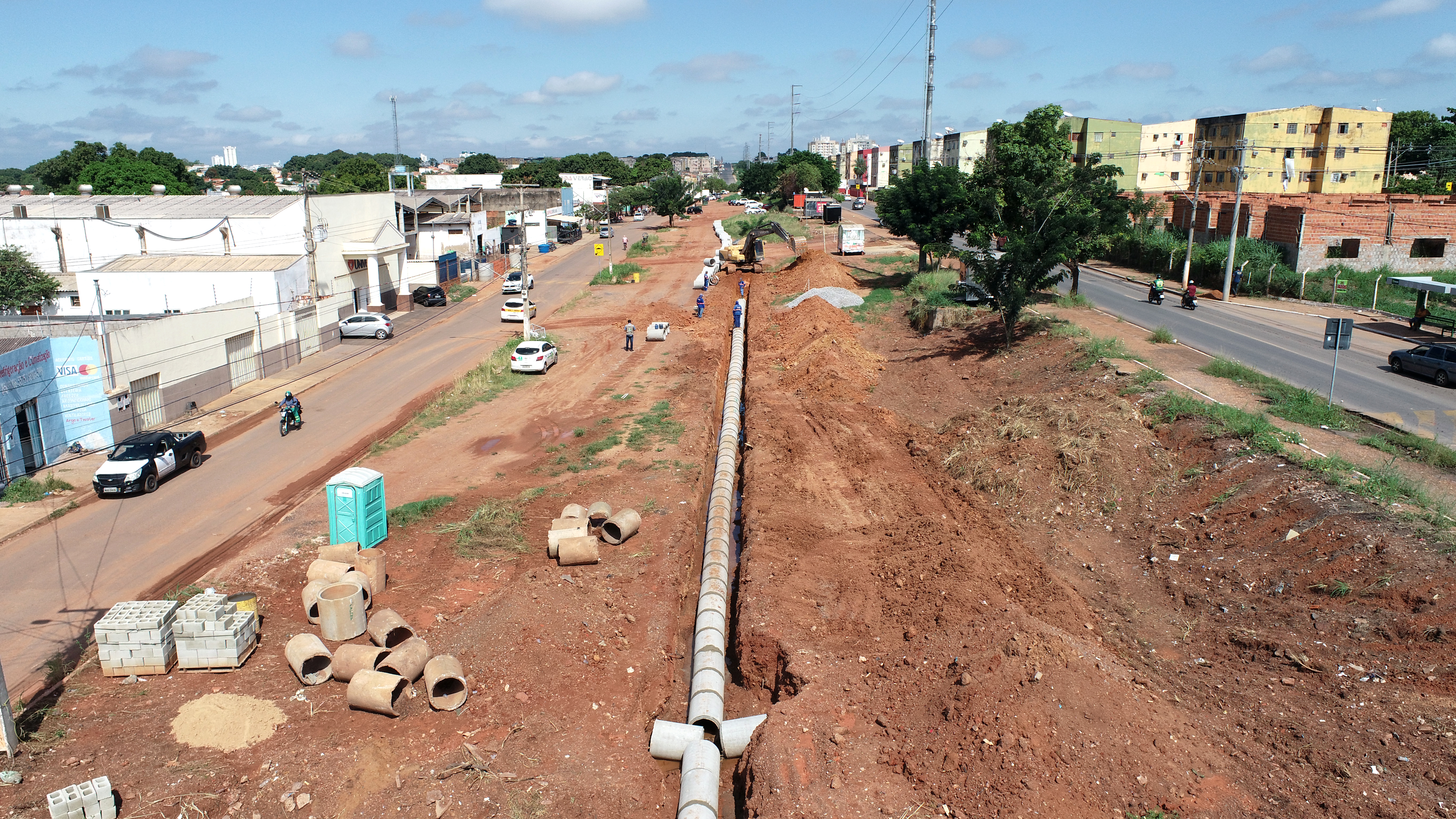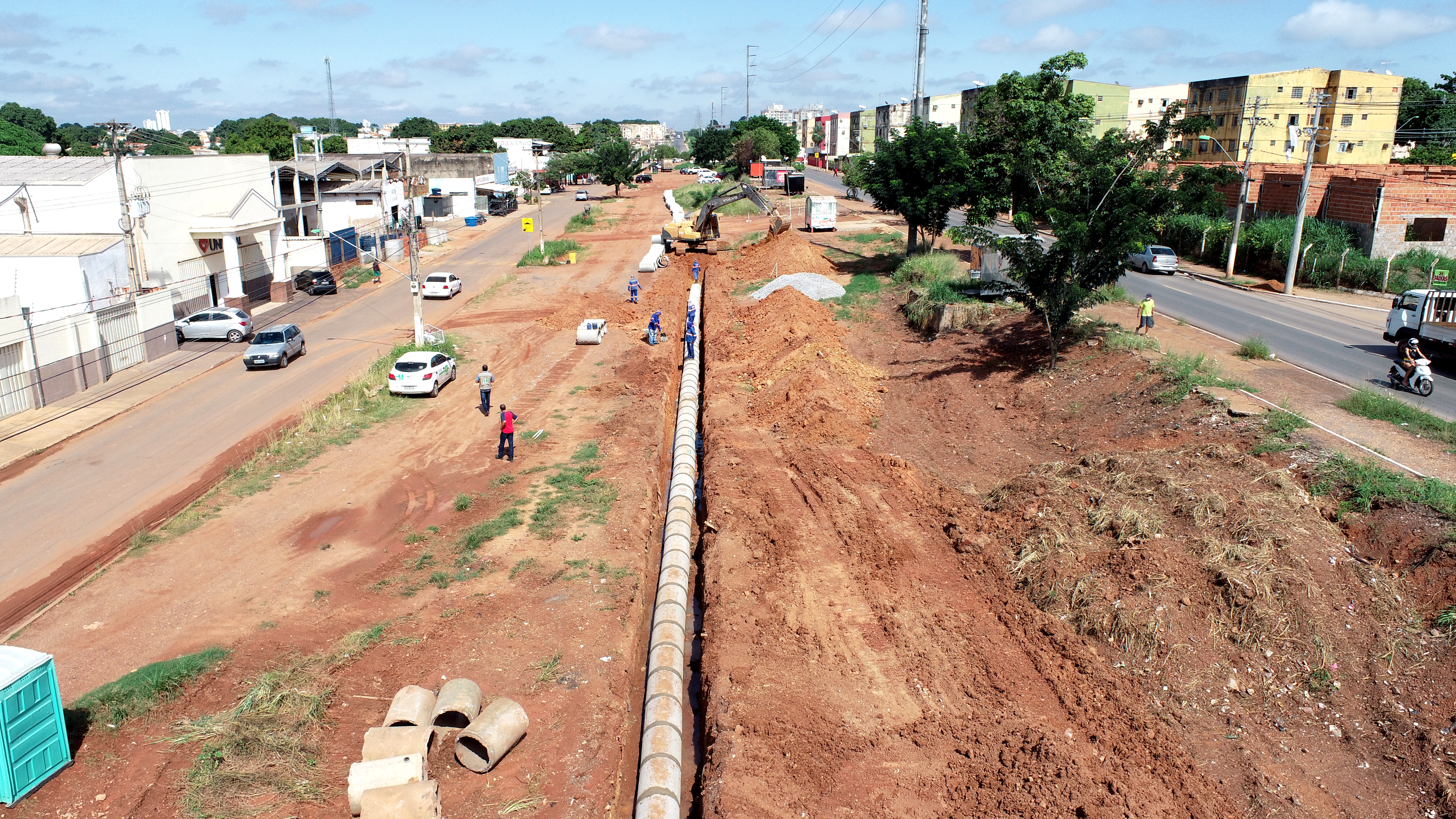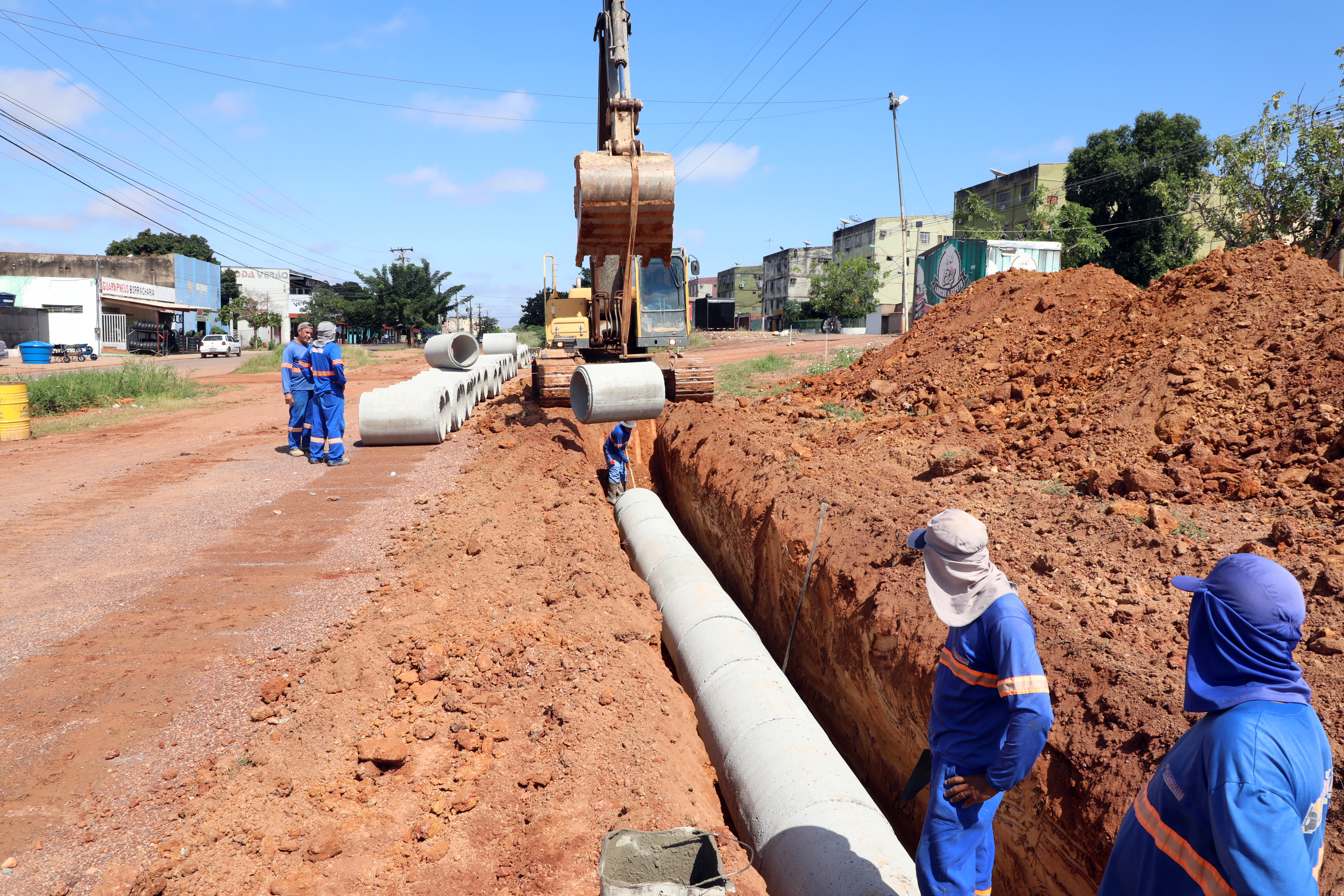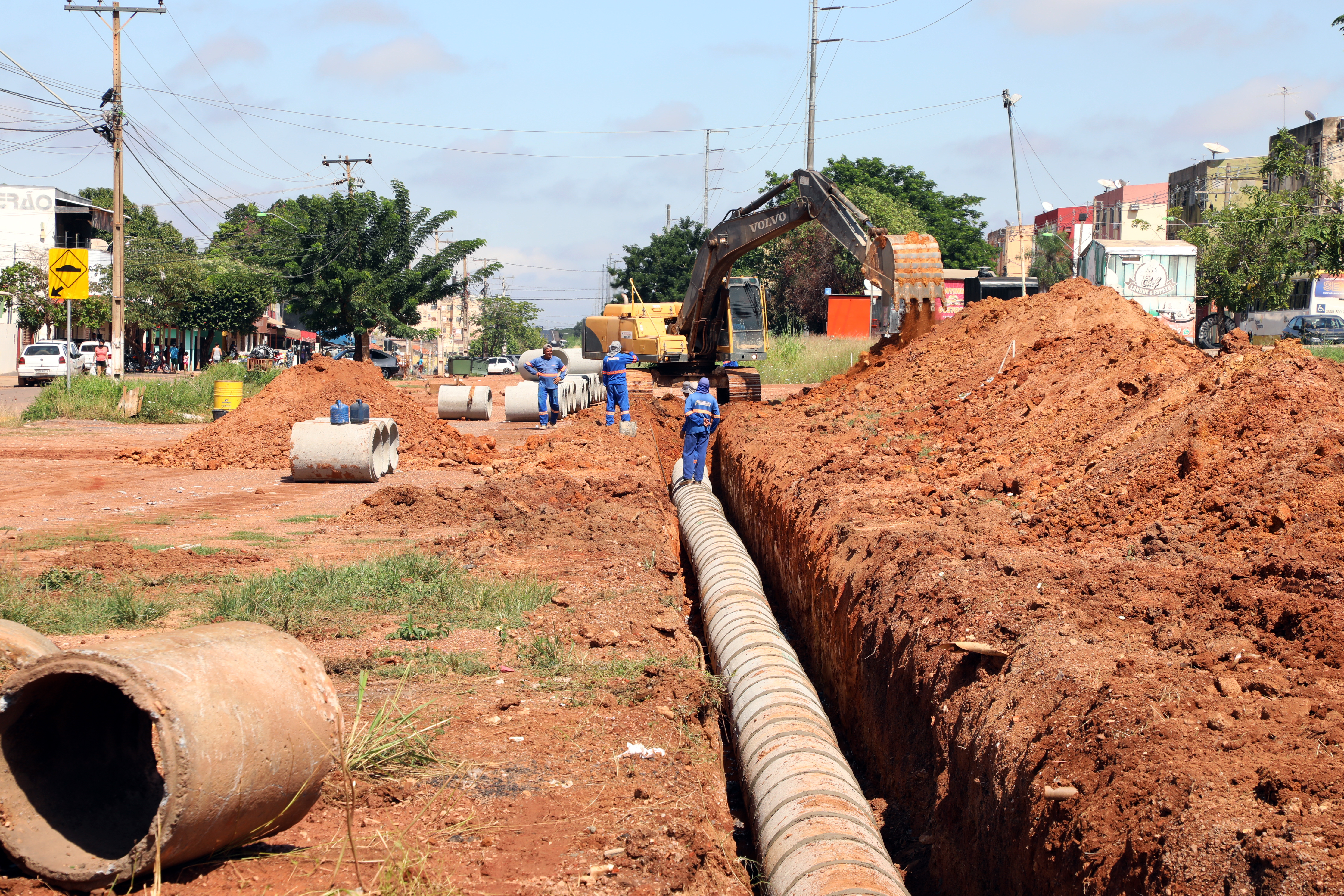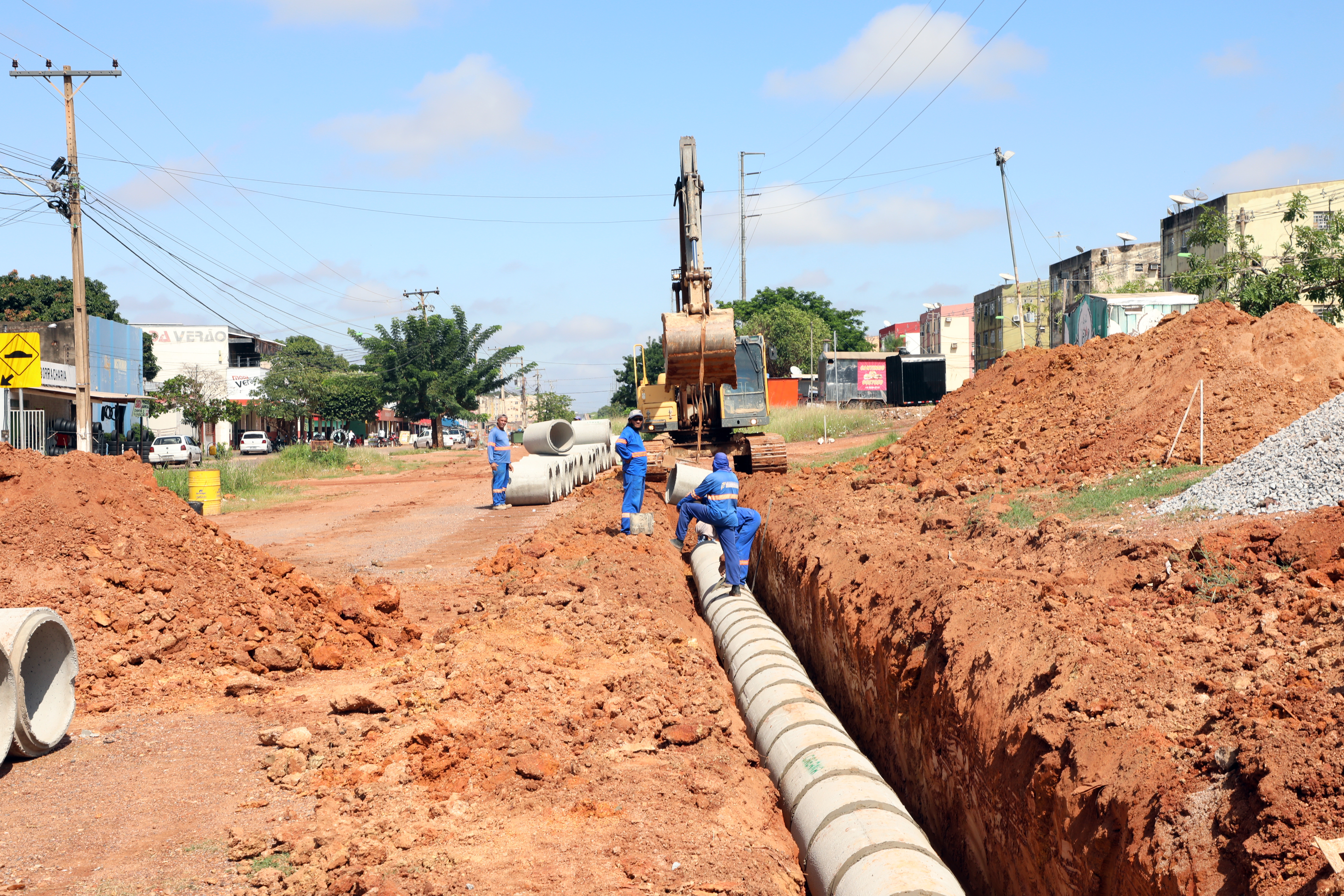 Obra na Av. Dante Martins de Oliveira entra na etapa de construção de rede de drenagem e muro de gabião
