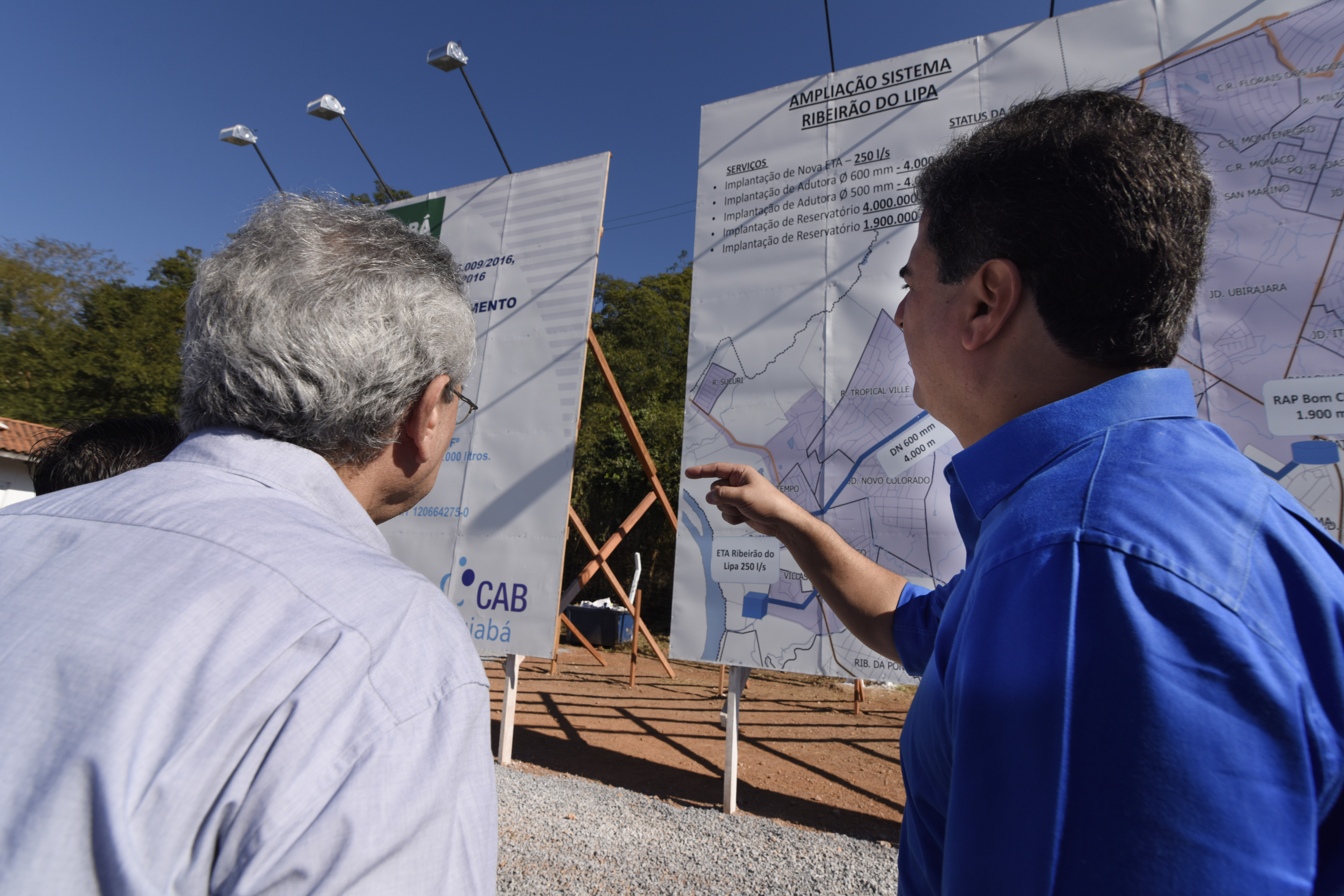 O prefeito Emanuel Pinheiro lançou, ao lado do vice Niuan Ribeiro, nesta terça-feira (13), as obras de ampliação do sistema de captação, tratamento e abastecimento de água da Estação de Tratamento do Ribeirão do Lipa. Com 250 litros por segundo a mais, as obras estão sendo conduzidas pela CAB Cuiabá com recursos próprios, equivalentes a R$ 16 milhões. A previsão é que a extensão seja finalizada em 150 dias.