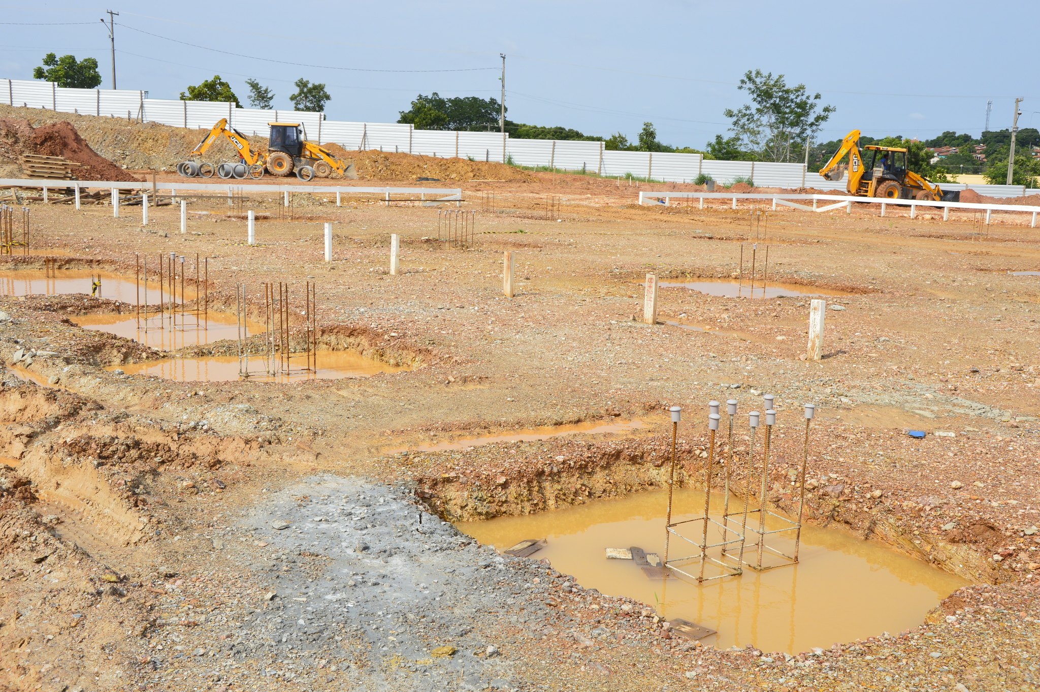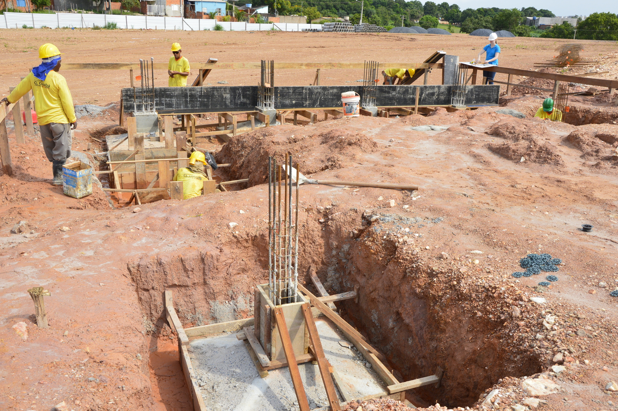 As obras do novo Hospital e Pronto-Socorro de Cuiabá chegaram à fase intermediária de fundação, após seis meses do início das obras, em julho do ano passado. Com todas as 152 sapatas concretadas, a fase agora é de instalação das vigas baldrames e as estacas hélice contínua, que dão sustentação à parte da estrutura predial, e início da drenagem mais rasa de águas pluviais.