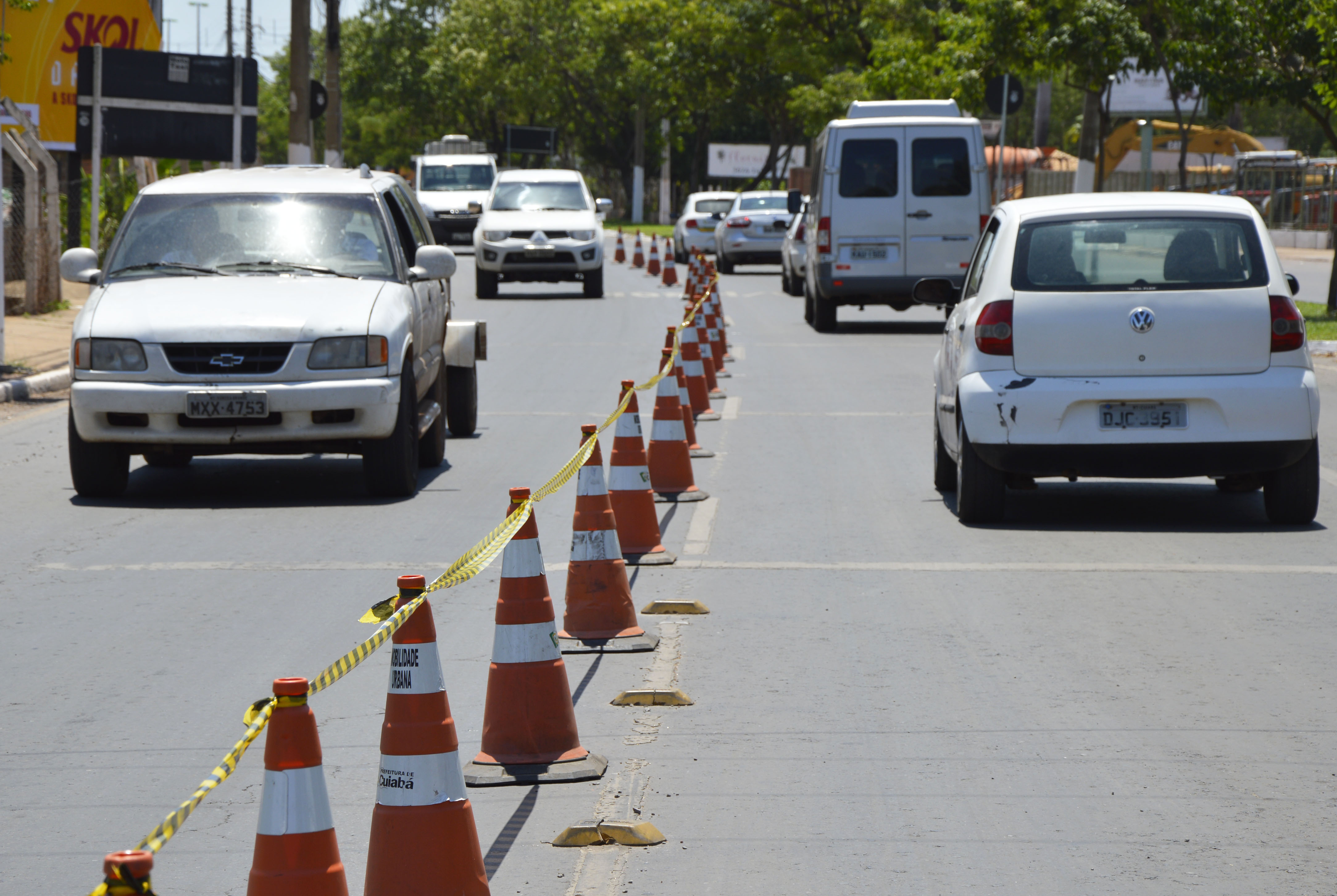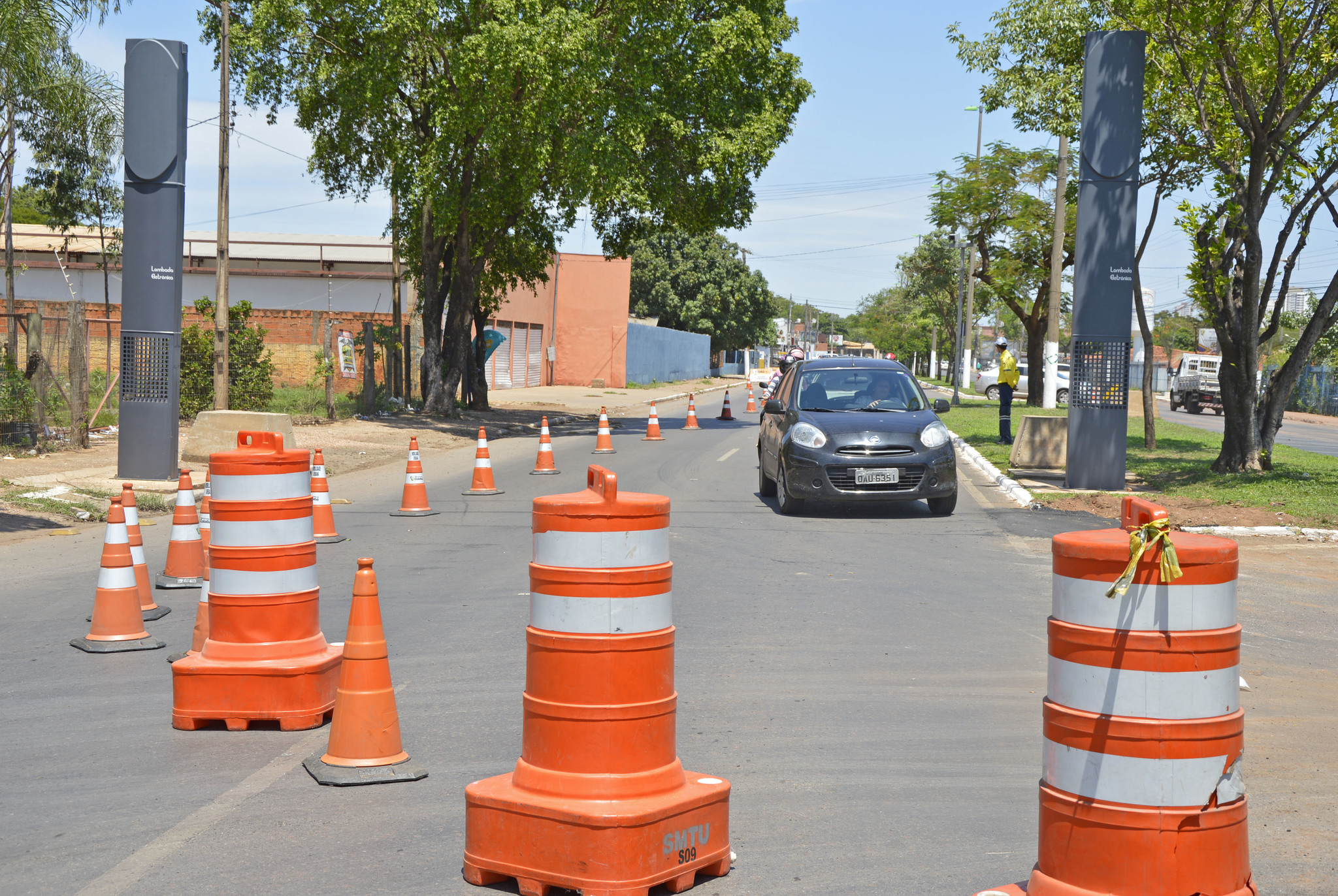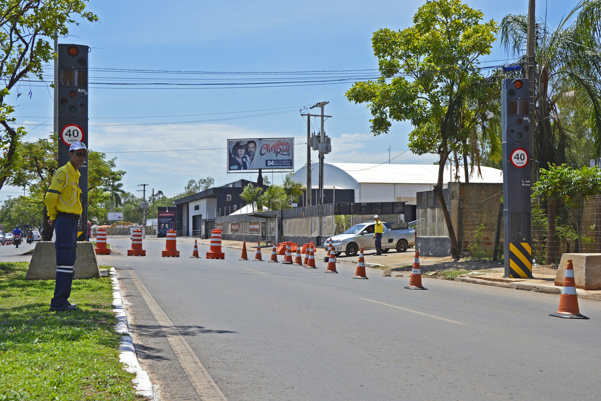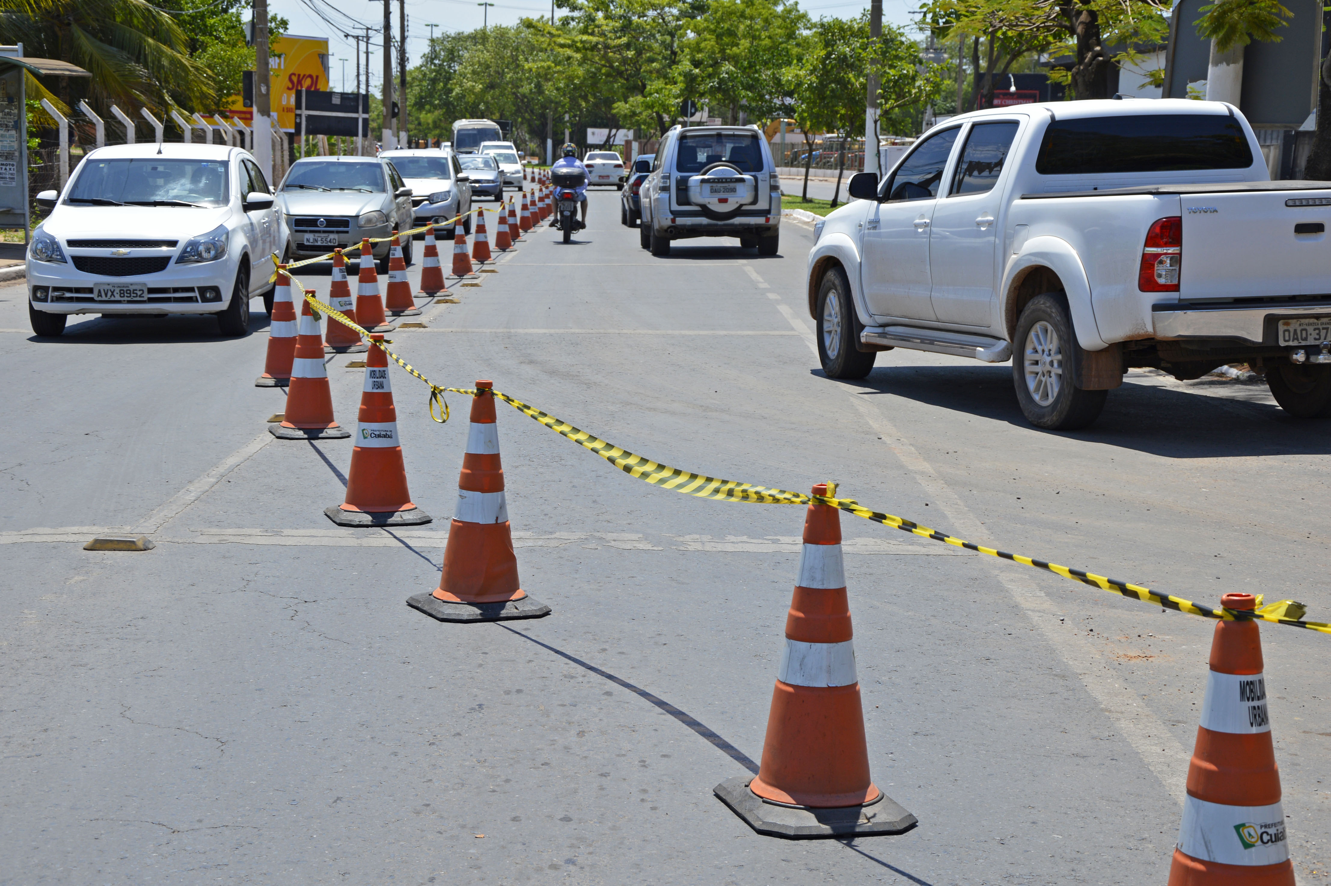A interdição começa antes da lombada eletrônica. No local, foram colocados cones para desviar o trânsito e agentes de trânsito da Secretaria de Mobilidade Urbana (Semob) também orientaram os condutores.