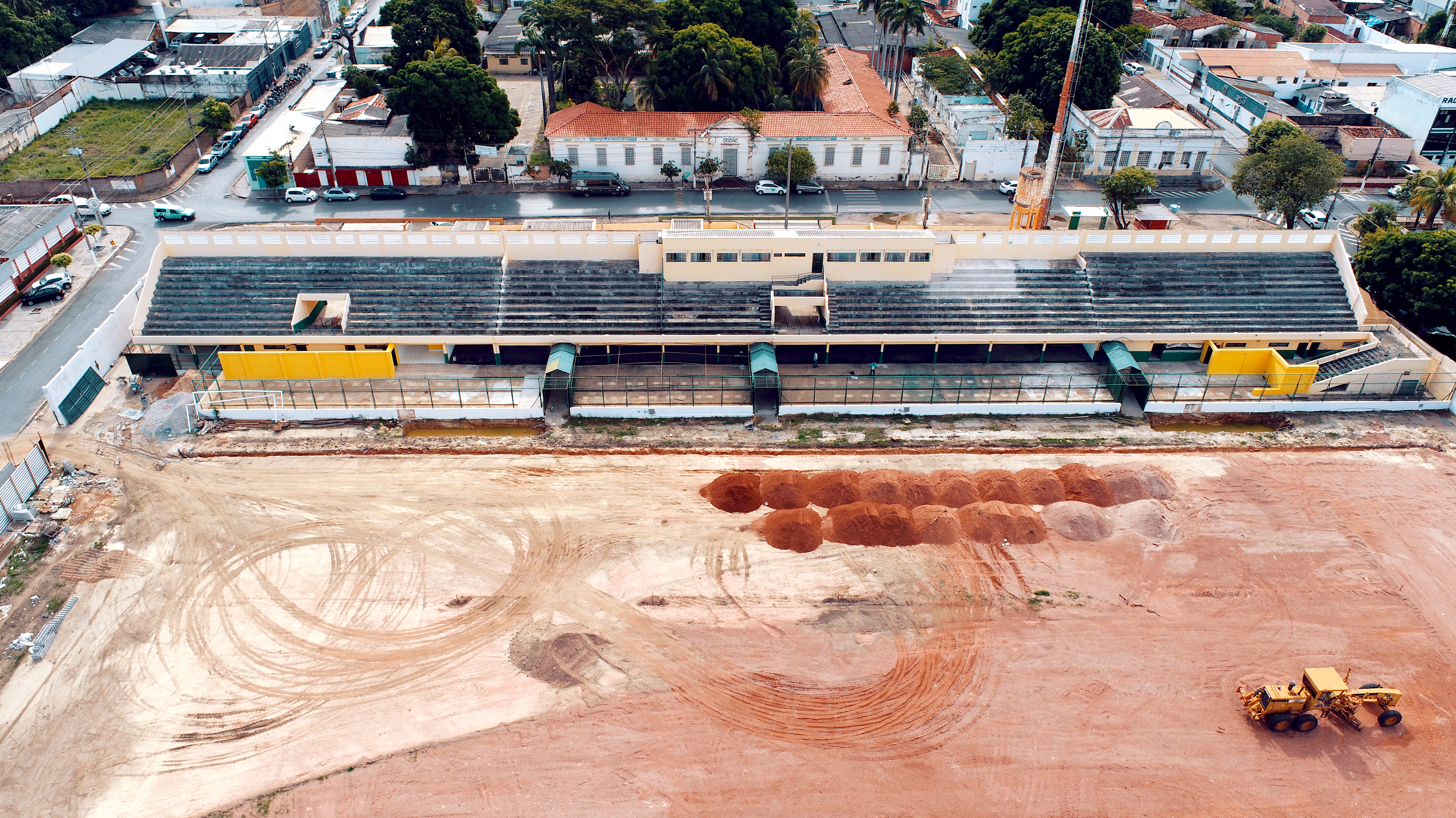 No último dia 09 de abril, a Secretaria de Serviços Urbanos iniciou a retirada do gramado para a implantação do sistema novo de drenagem e irrigação, que vai diminuir os custos de manutenção e consumo de água.