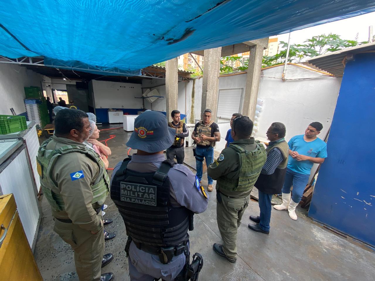 A pesagem complementar do pescado apreendido no Praeirinho está sendo realizada na delegacia. A ação continua nesta quarta-feira (10) no bairro Praeirinho, com a fiscalização dos demais boxes.
