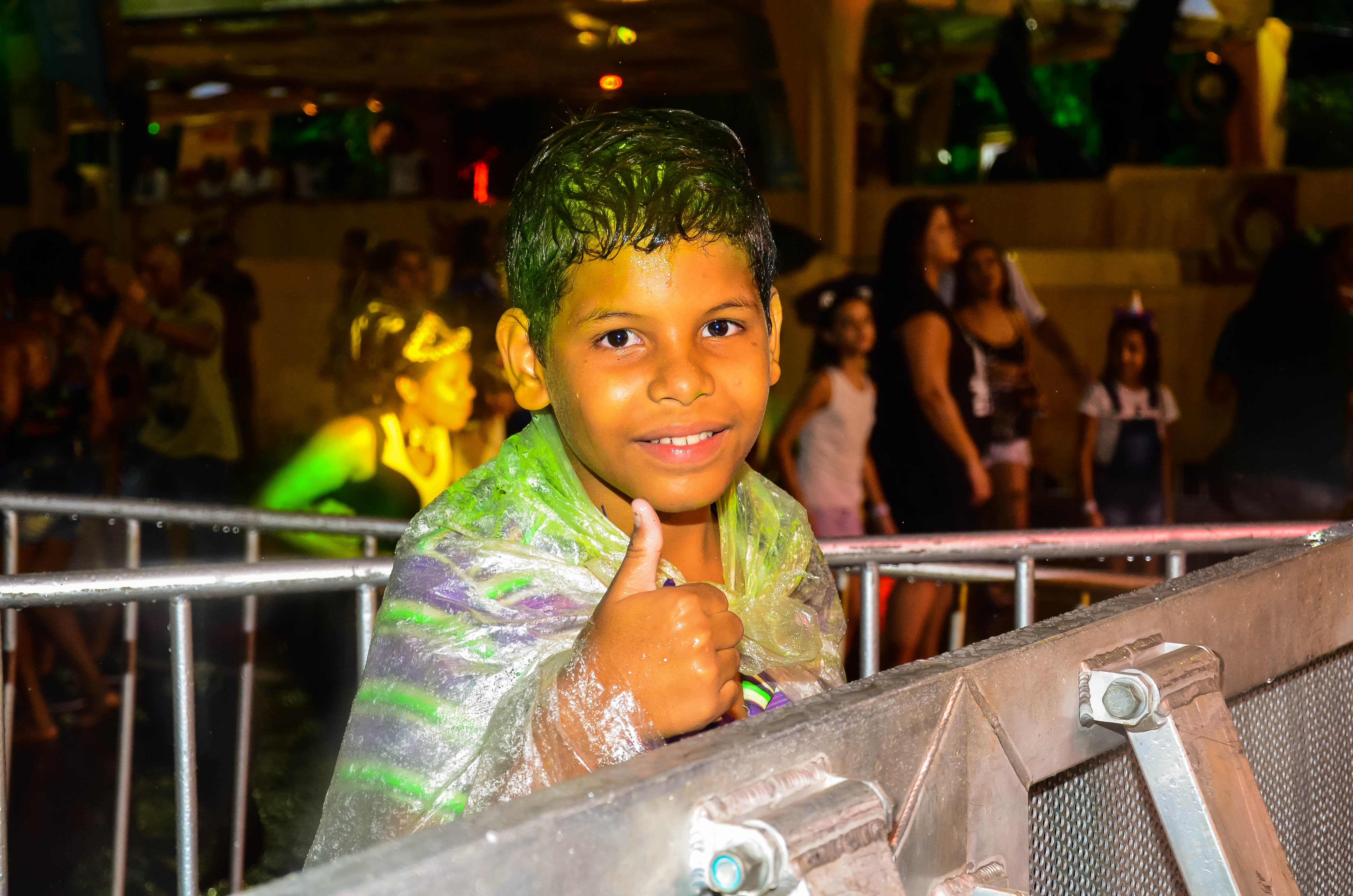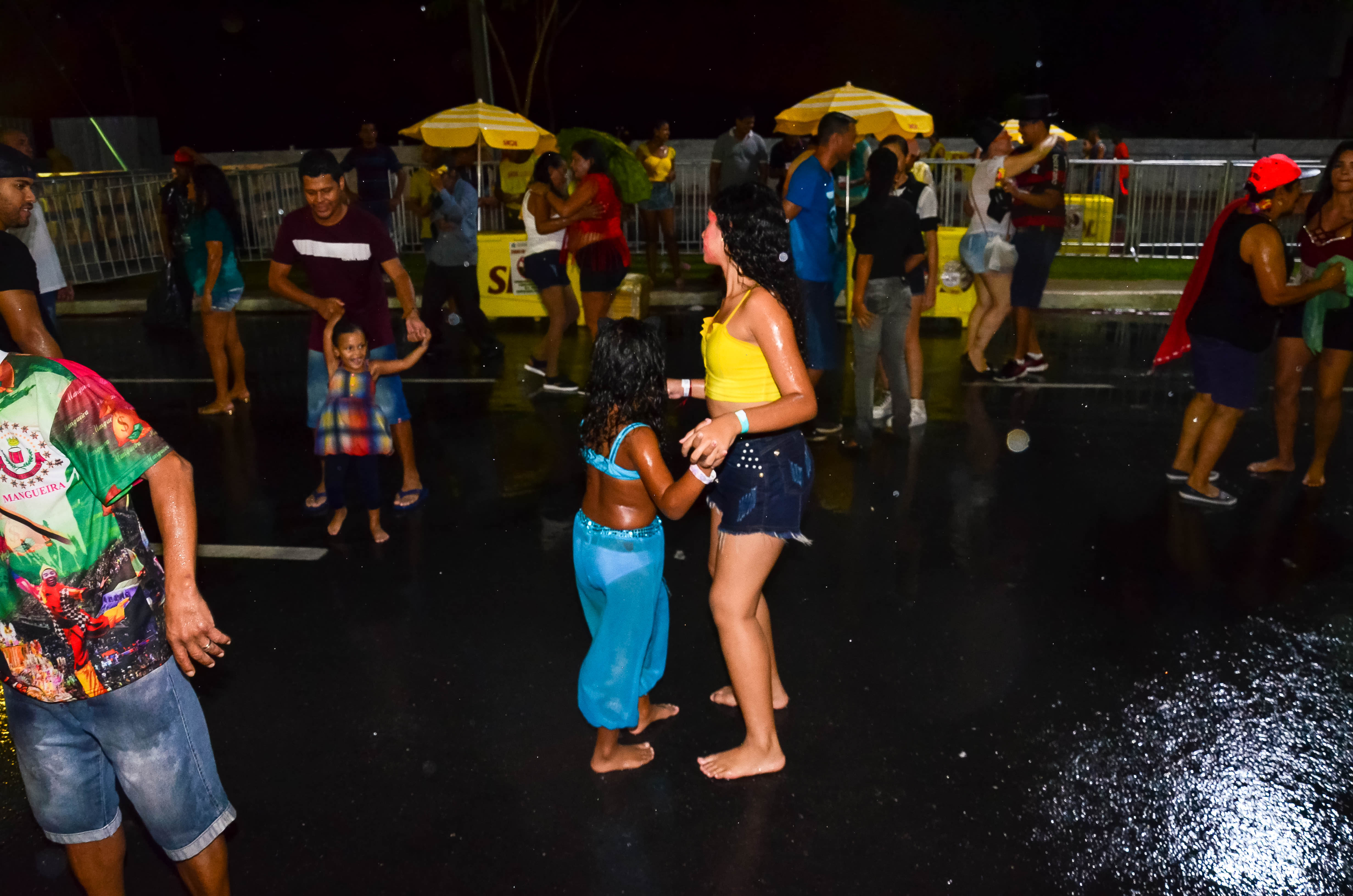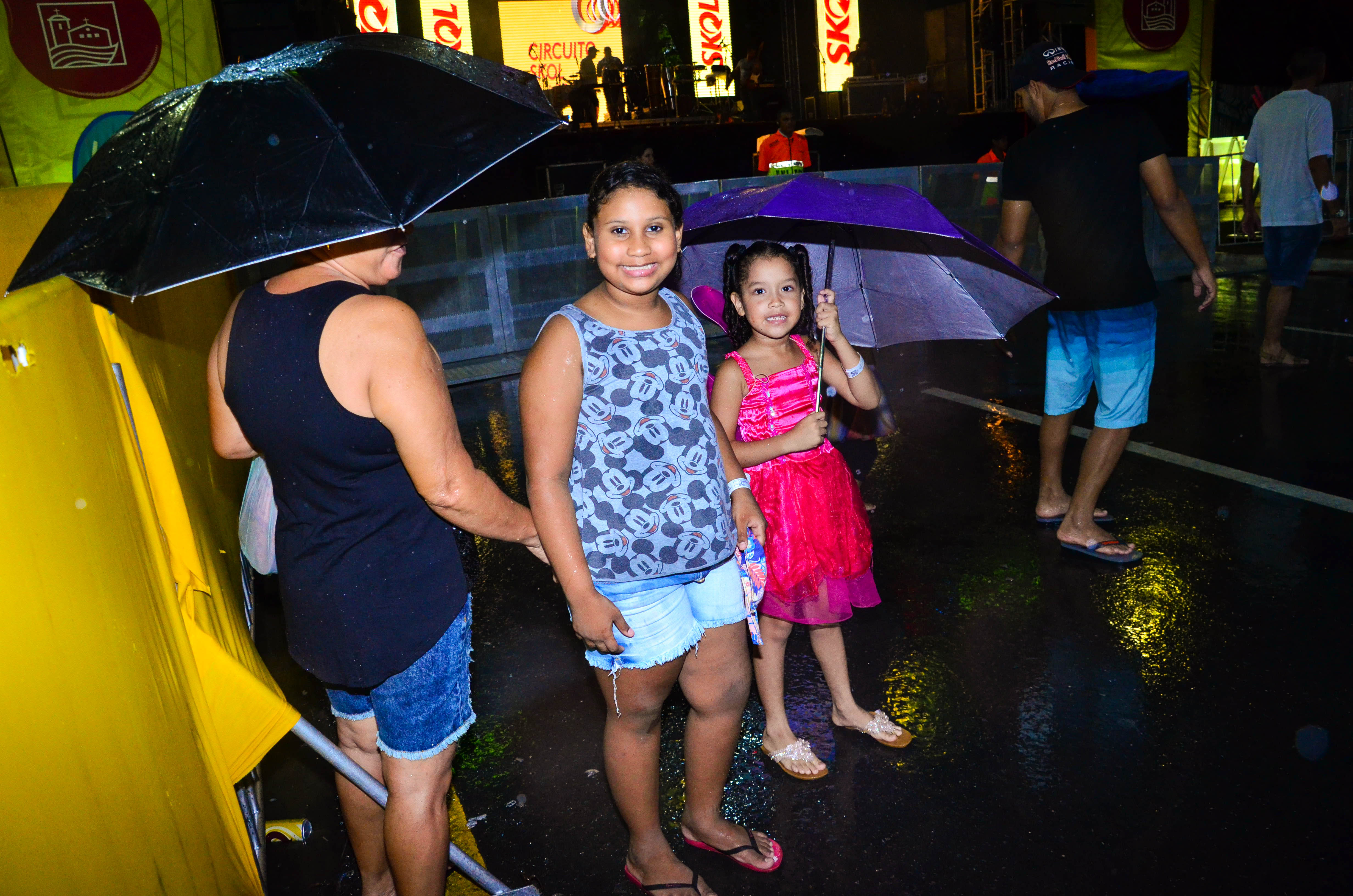 A diversão é nítida nos sorrisos das três primas, que não deixaram a chuva atrapalhar o clima de folia. Luisa Mel, 11, aprovou a festa e não se deixou intimidar pelo clima chuvoso. "Tudo está bem legal e estamos brincando bastante, mesmo com a chuva. Não tenho medo de ficar toda molhada, pois é bem divertido", concluiu.