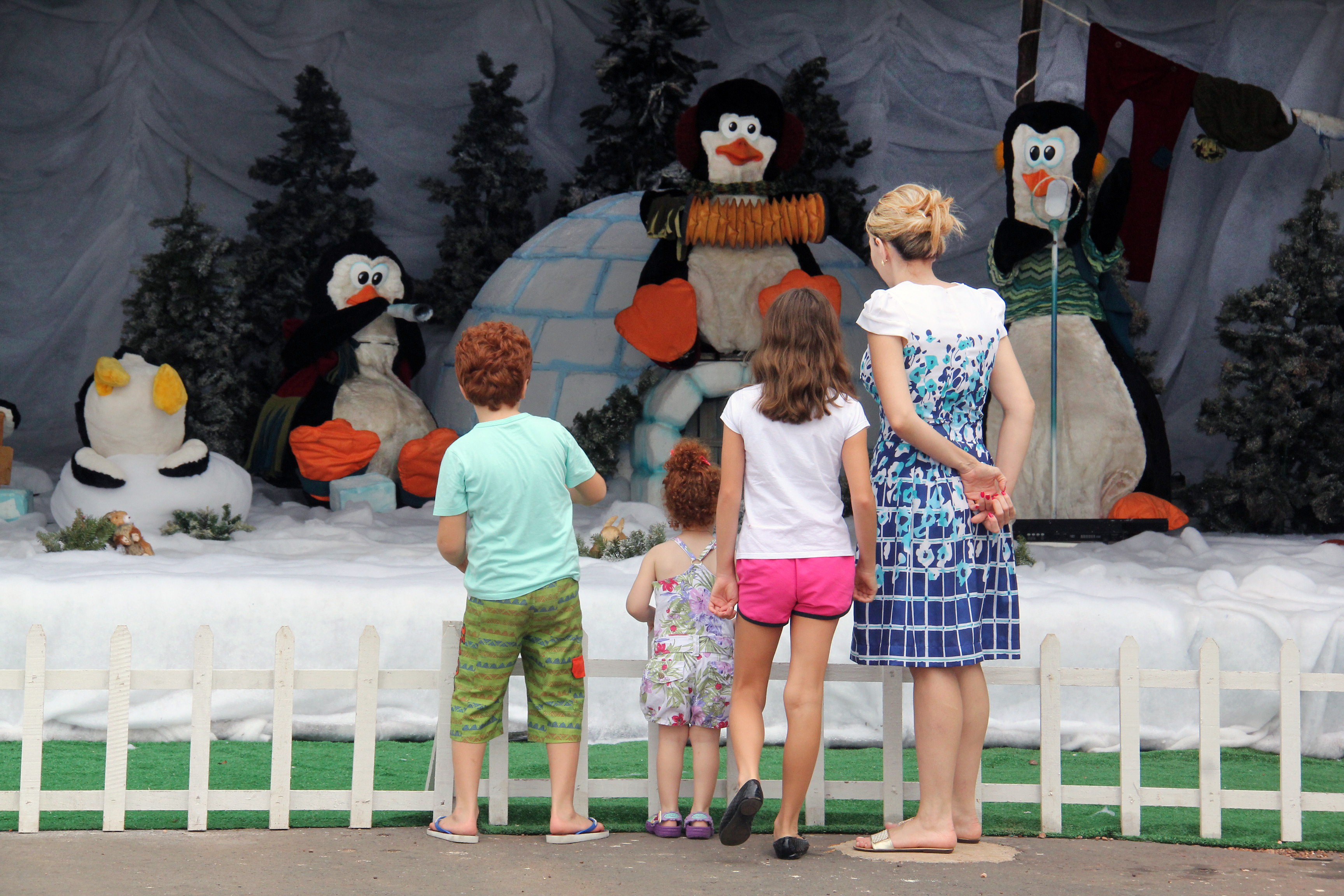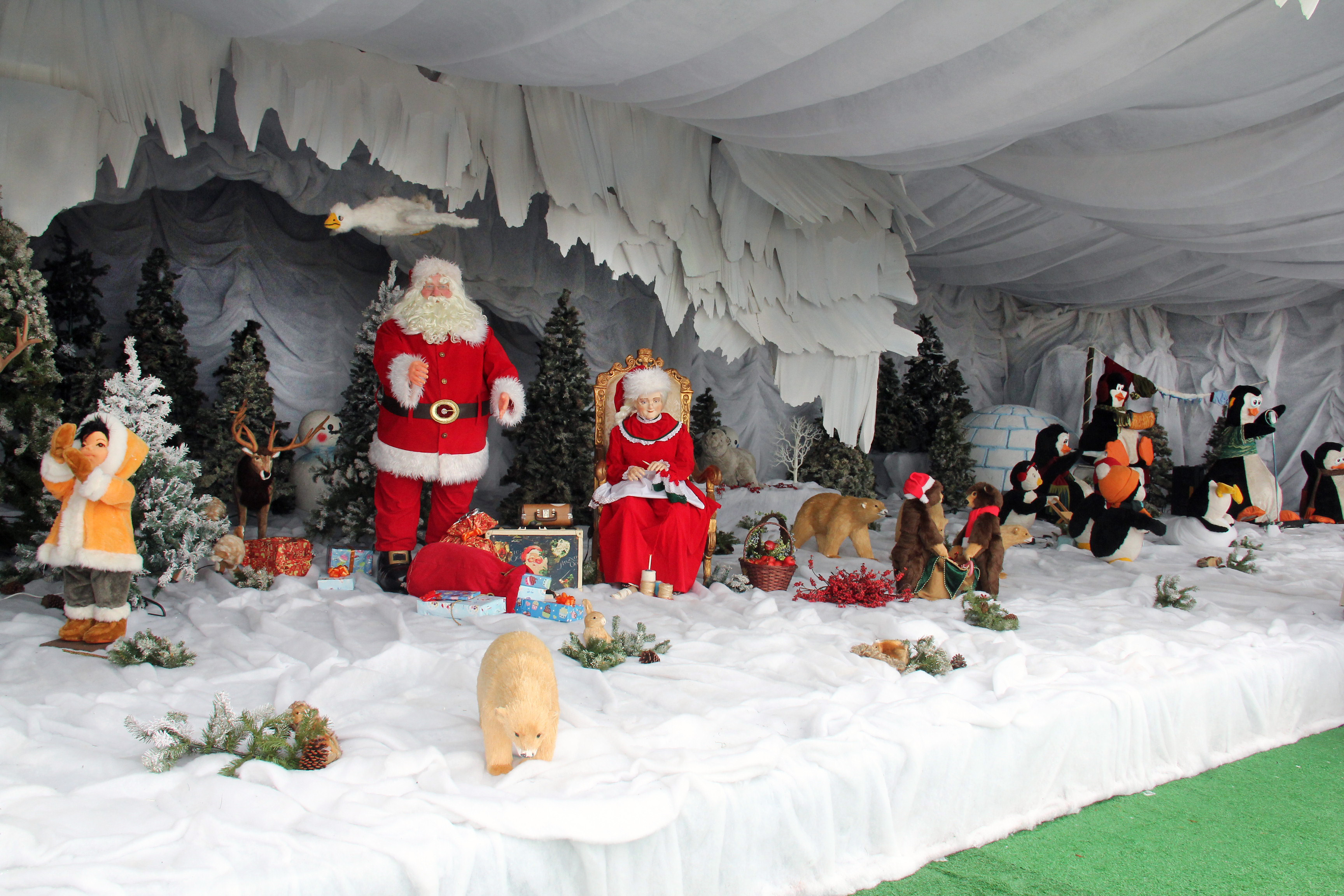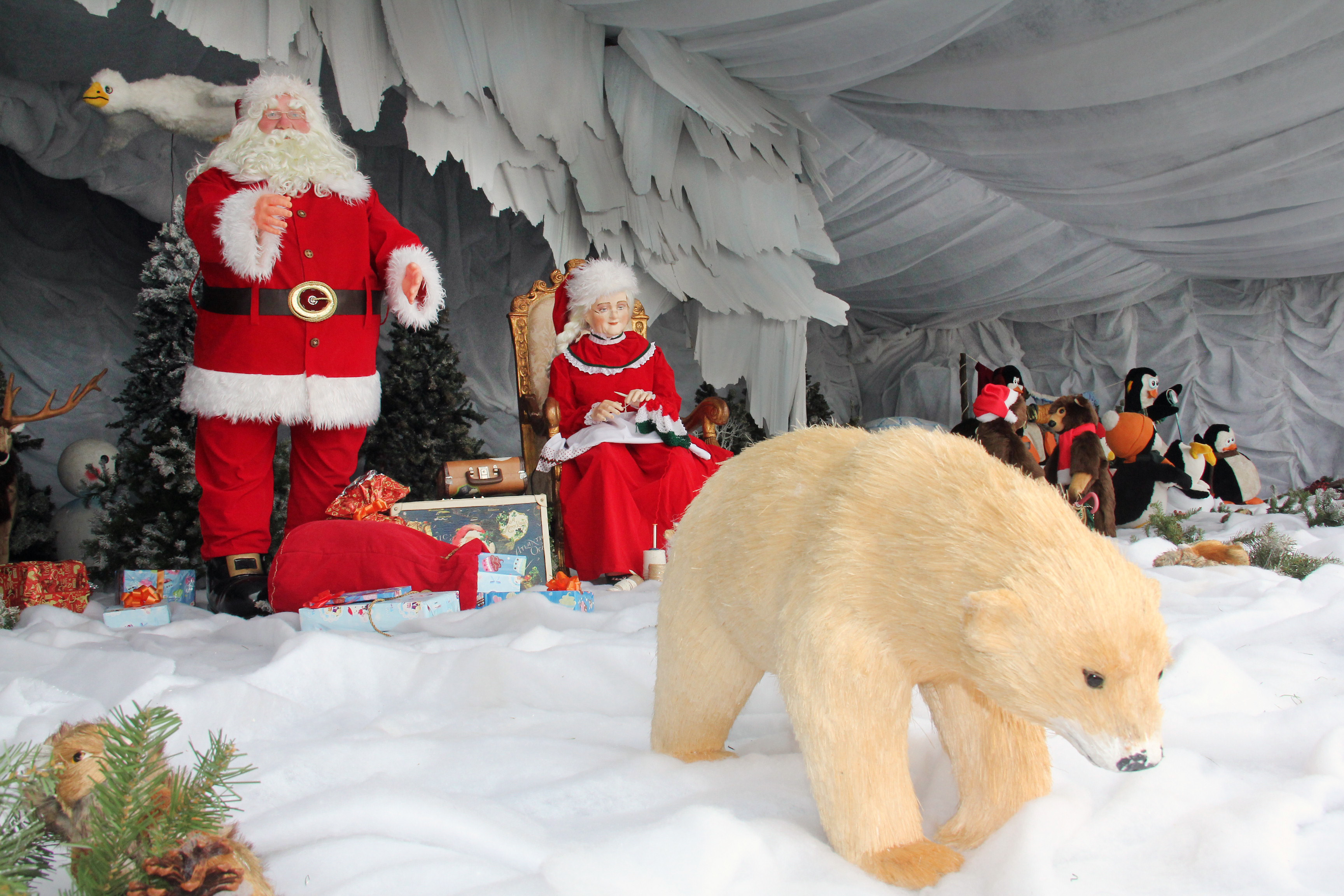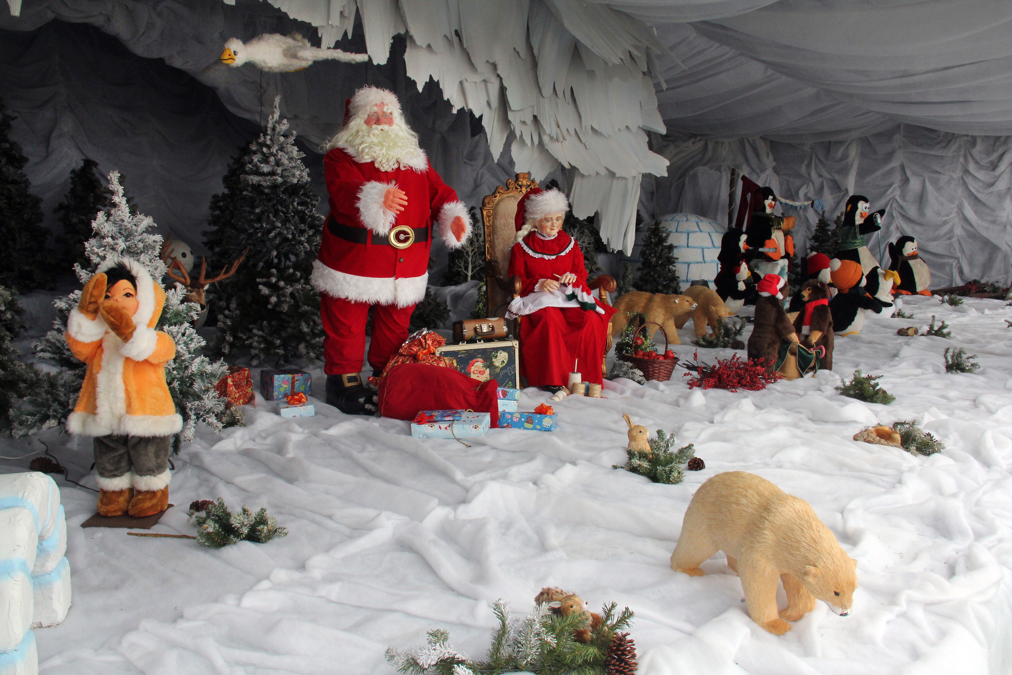 Os visitantes poderão conferir uma estrutura que imita uma espécie de caverna de gelo, dividida em dois cenários: com o Papai e a Mamãe Noel ao lado de ursos polares, renas, árvores de Natal e muitos presentes; e pinguins músicos ao lado de um iglu e bonecos de neve.