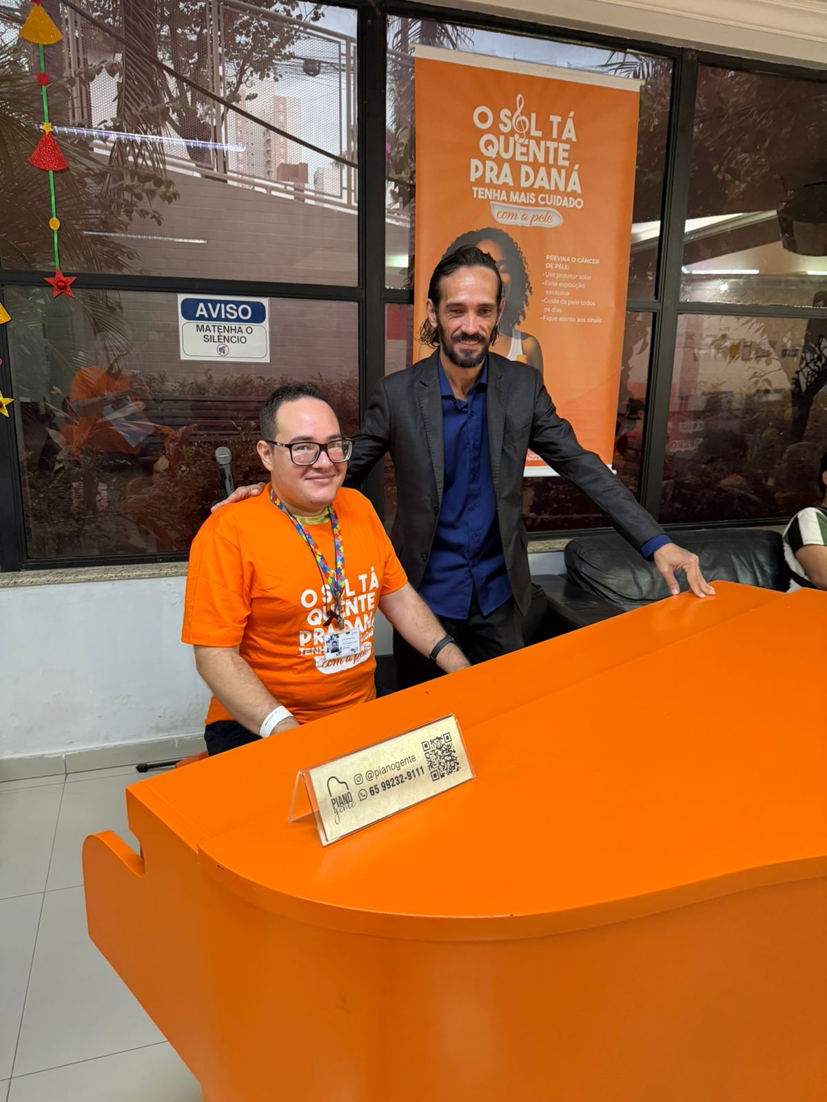 Para simbolizar a causa, o tradicional piano de cauda da Associação Piano Gente foi totalmente customizado com a cor laranja, que representa a campanha contra a doença.