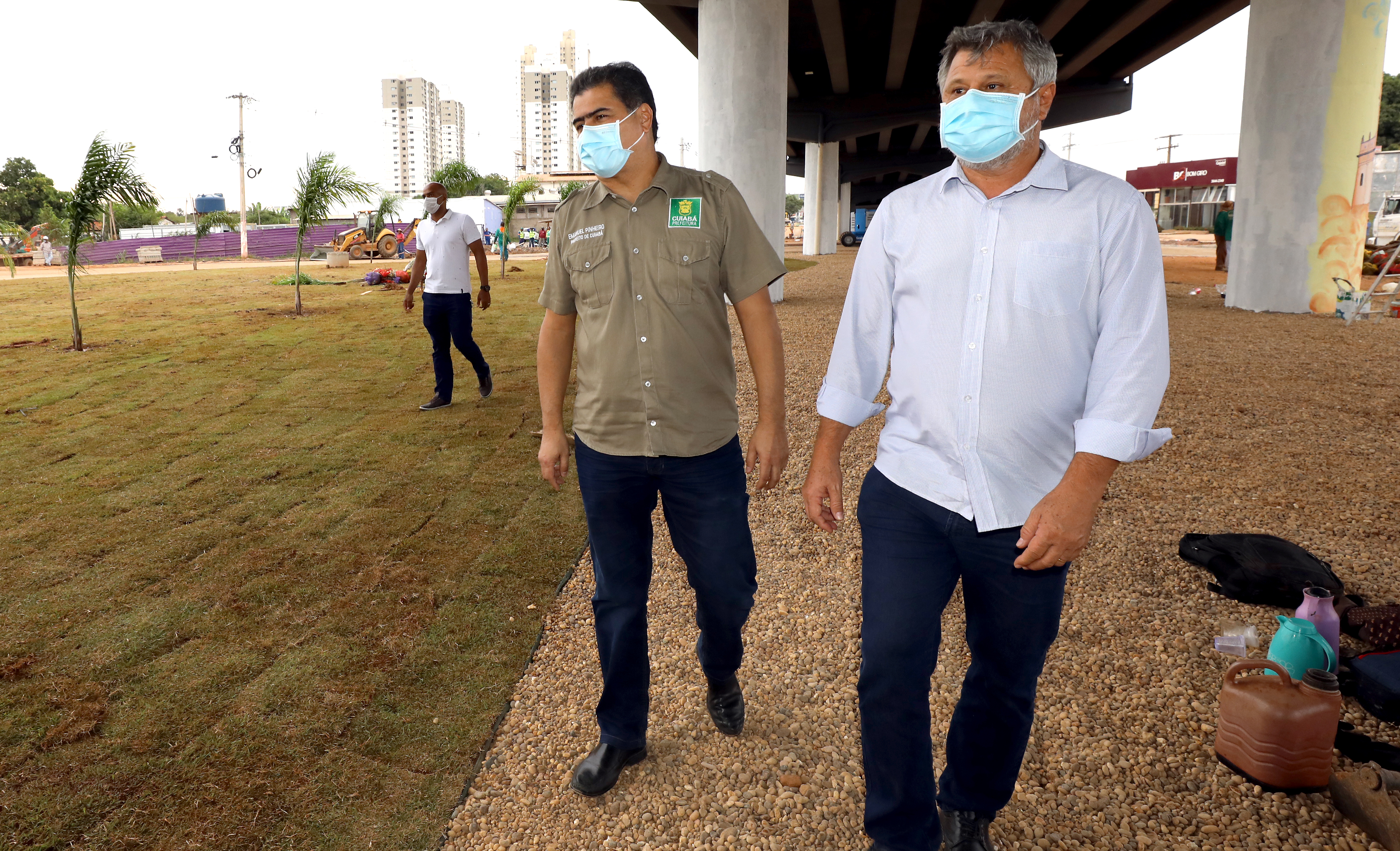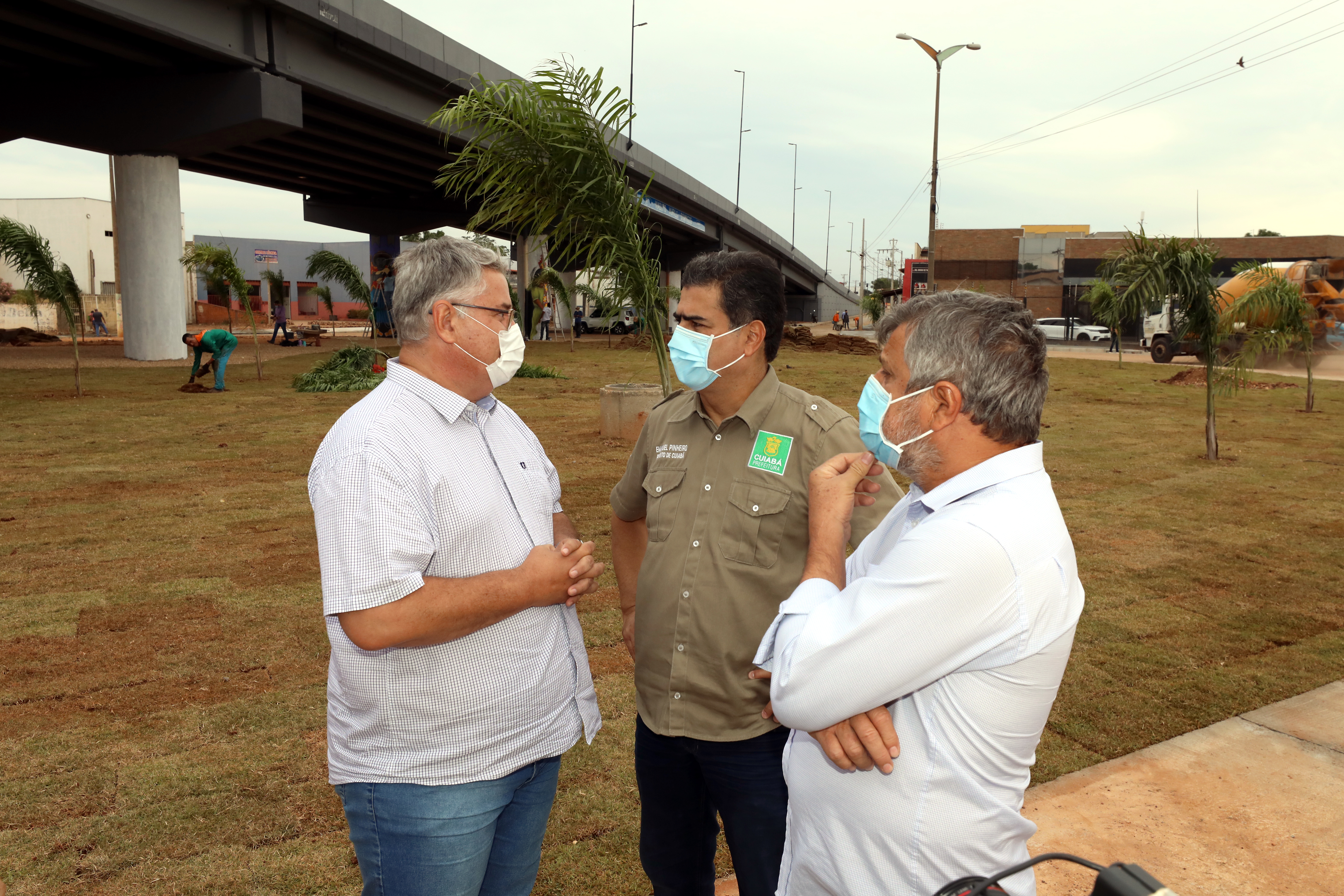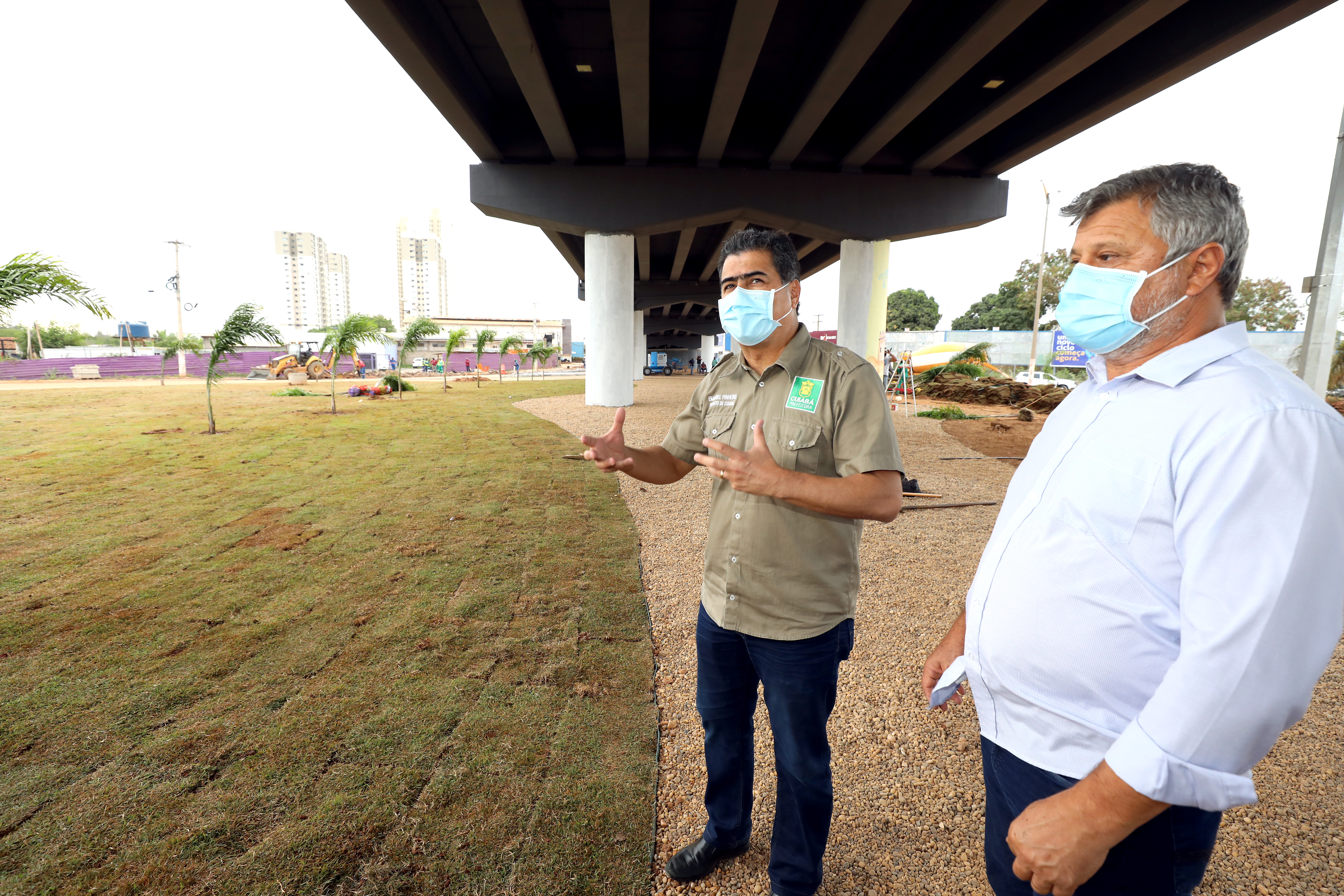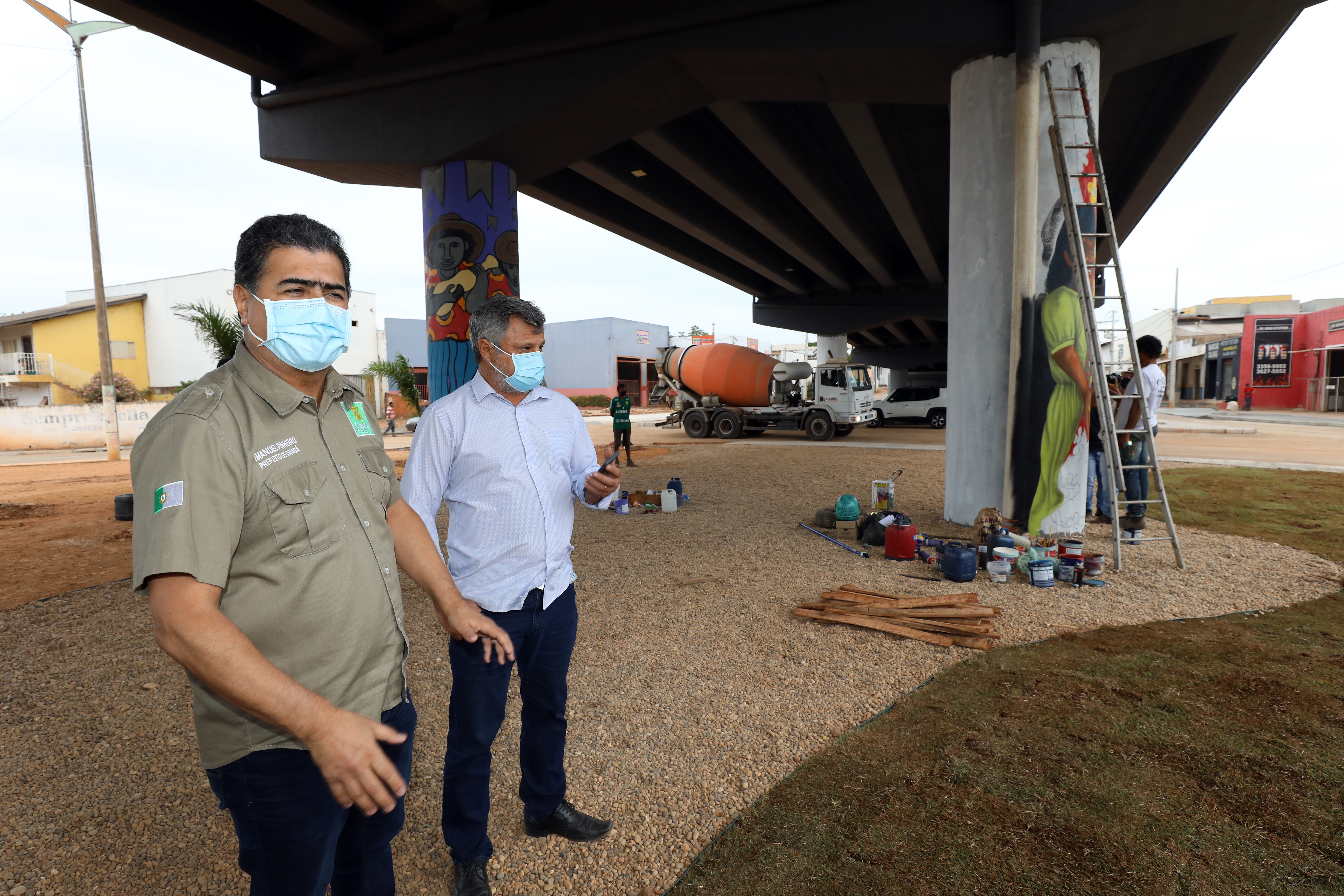 Durante a inspeção, acompanhado do vice-prefeito e secretário de Obras Públicas, José Roberto Stopa, Pinheiro pode observar que já está em andamento o trabalho de paisagismo que, além do plantio de grama, palmeira e outras espécies de plantas ornamentais, também contará com a pintura dos pilares de sustentação. Essa última ação é realizada por artistas plásticos regionais, por meio do programa Cidade Viva.