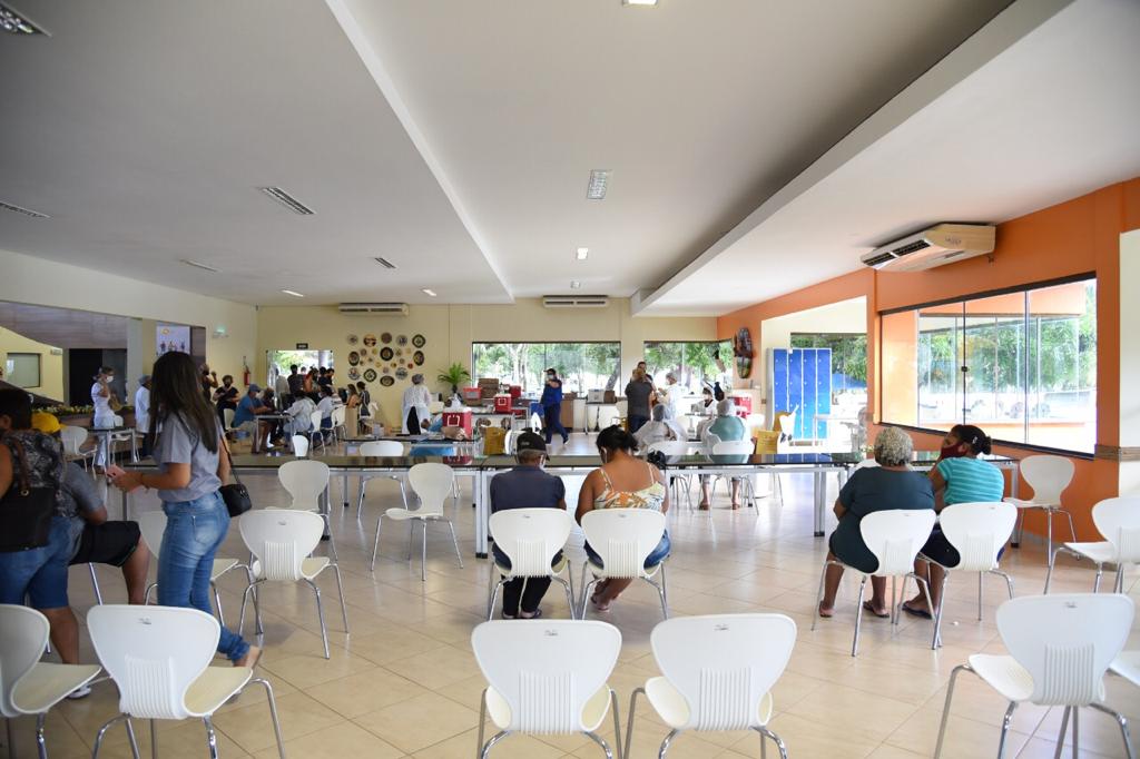 Polo de vacinação do SESC Balneário recebe pessoas com veículo próprio e pessoas a pé, que são beneficiadas com micro-ônibus no local