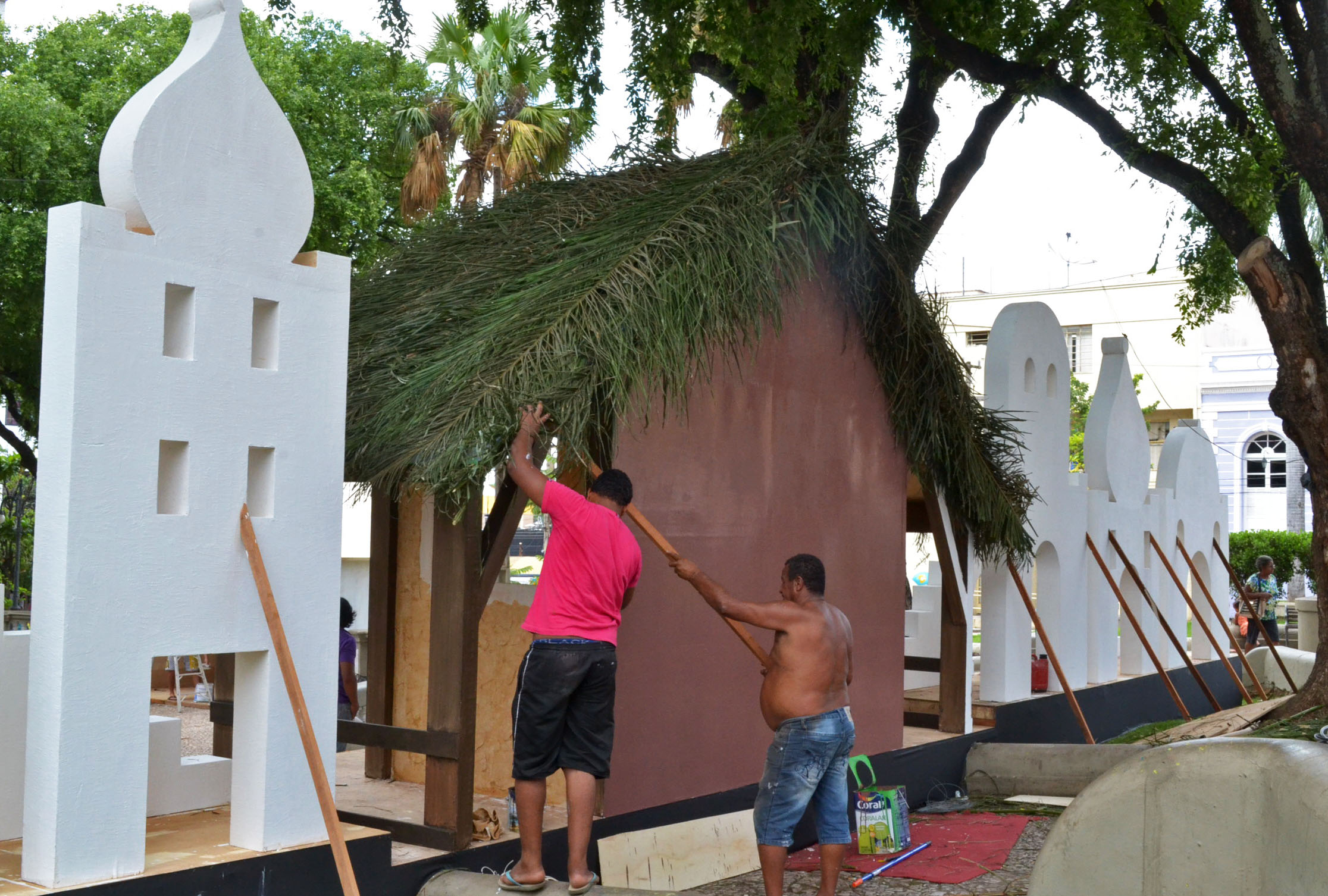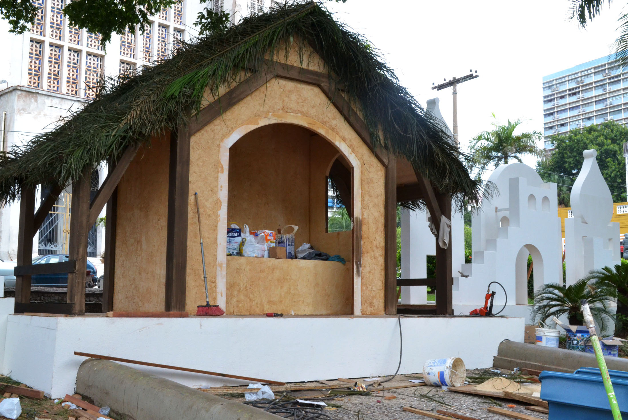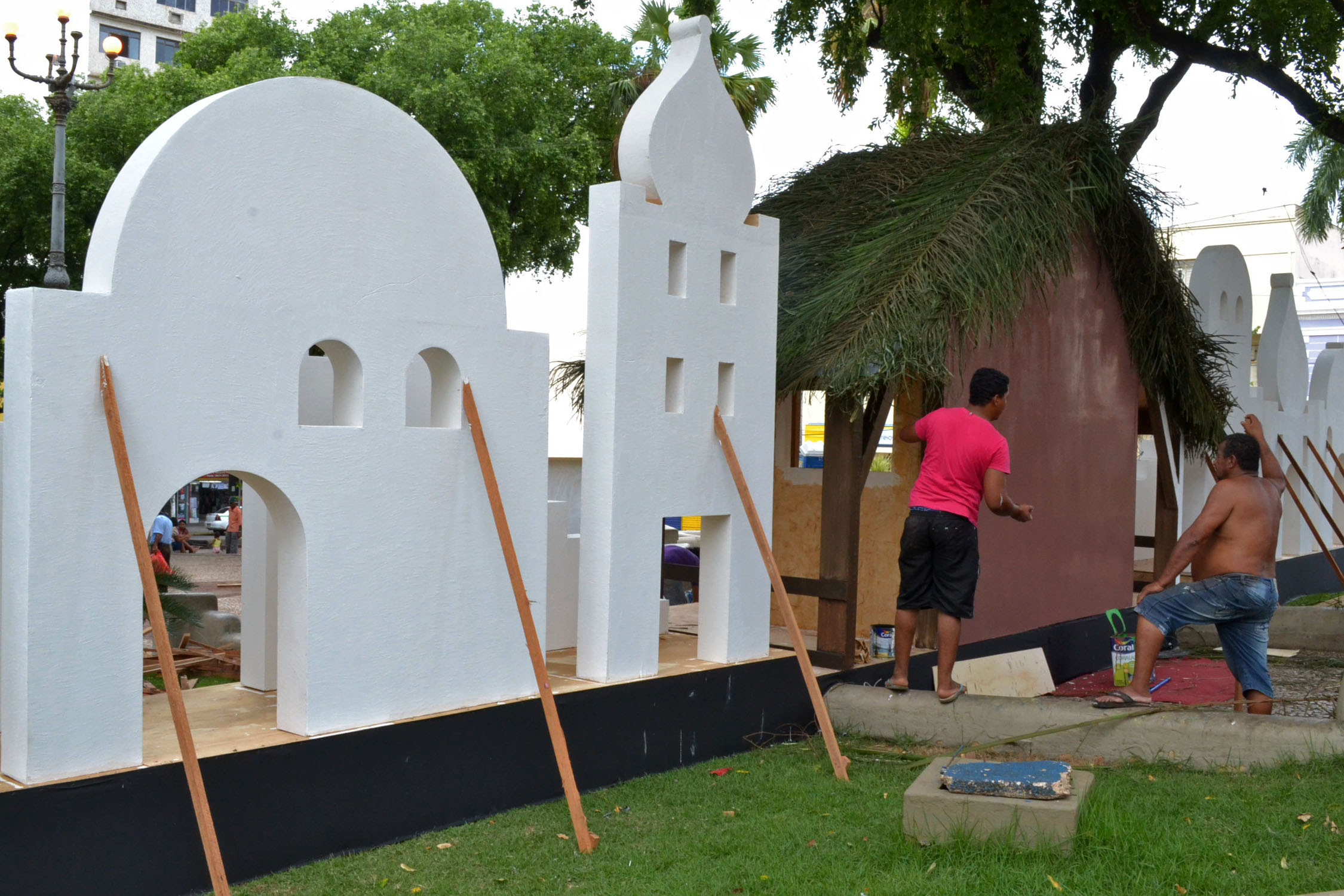 A Prefeitura de Cuiabá iniciou a montagem da decoração especial de Natal na Praça da República. A estrutura contará com presépio, árvores, anjos de luz e espaço do Papai Noel. A montagem deve ser concluída até esta sexta-feira (05).