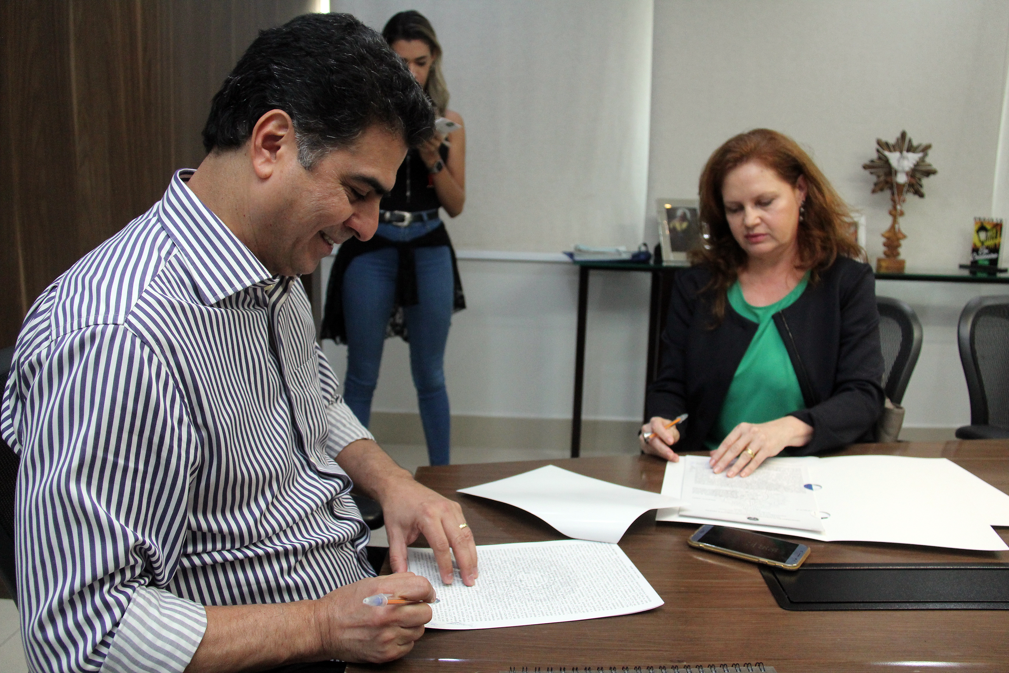 O Prefeito de Cuiabá, Emanuel Pinheiro e a Superintendente do Patrimônio da União em Mato Grosso, Lucimara Rodrigues Cordeiro Tavares, oficializaram nesta quarta-feira (23) a assinatura do contrato de cessão e uso gratuito para que o município dê continuidade nas obras de requalificação da segunda etapa da Orla do Porto.