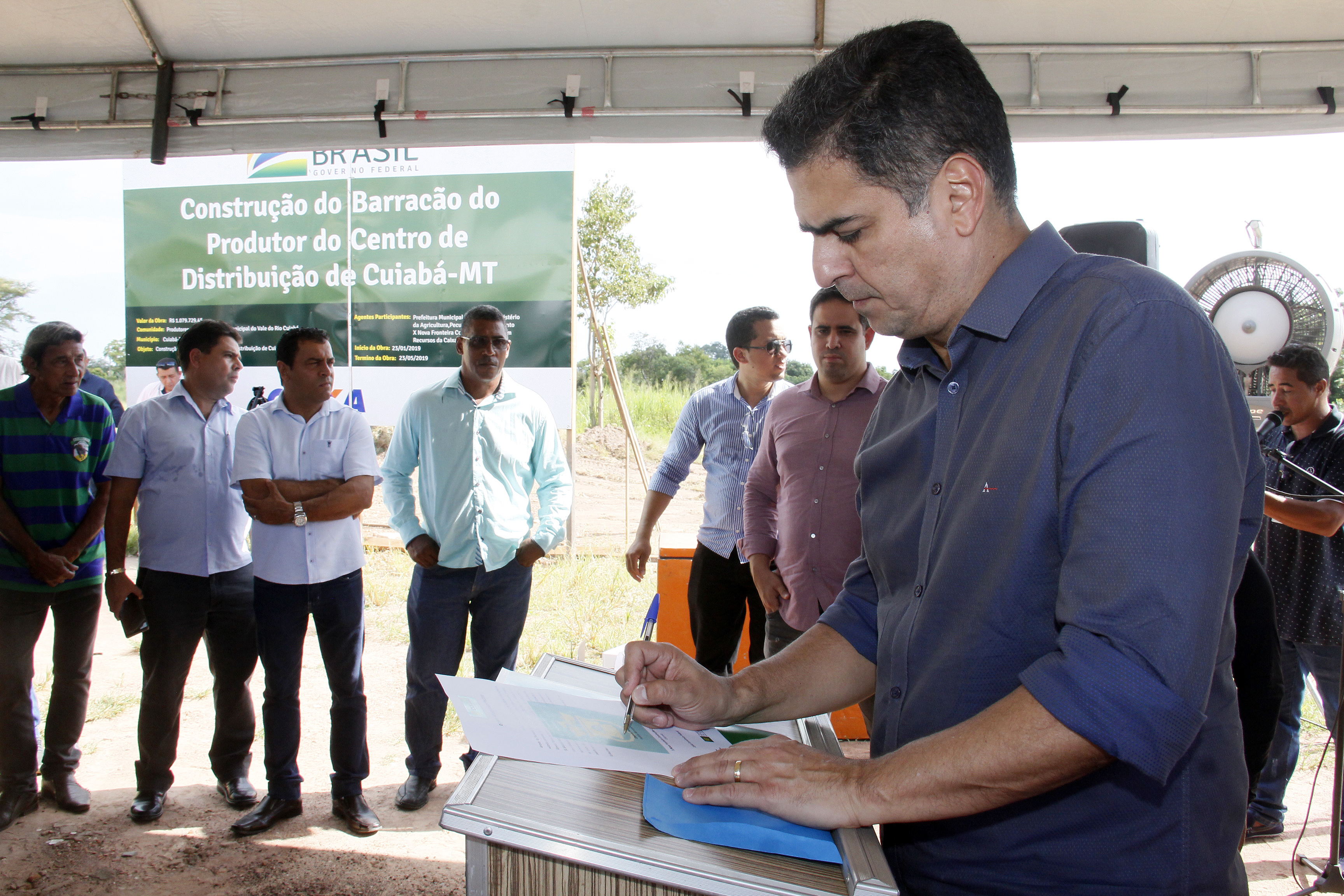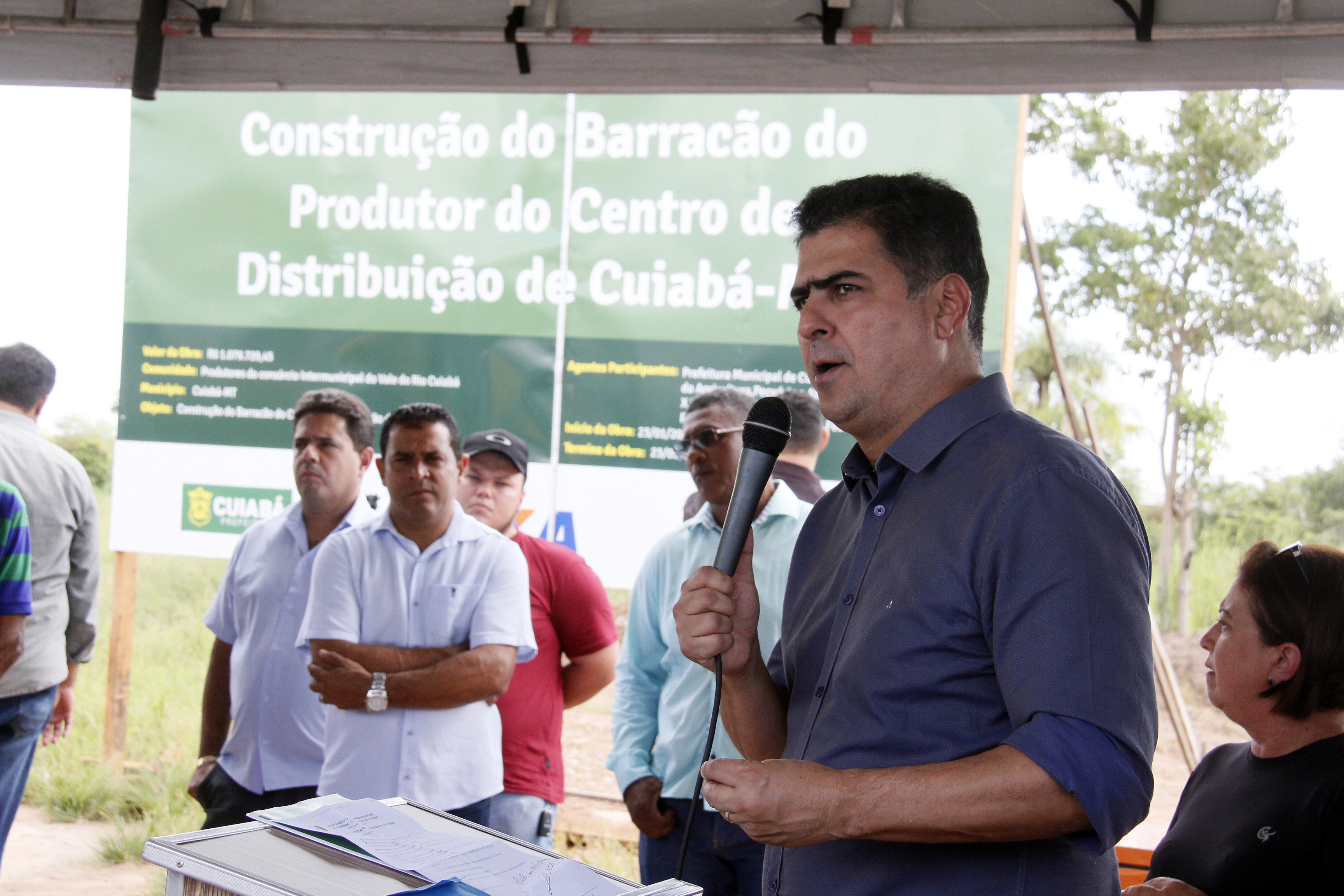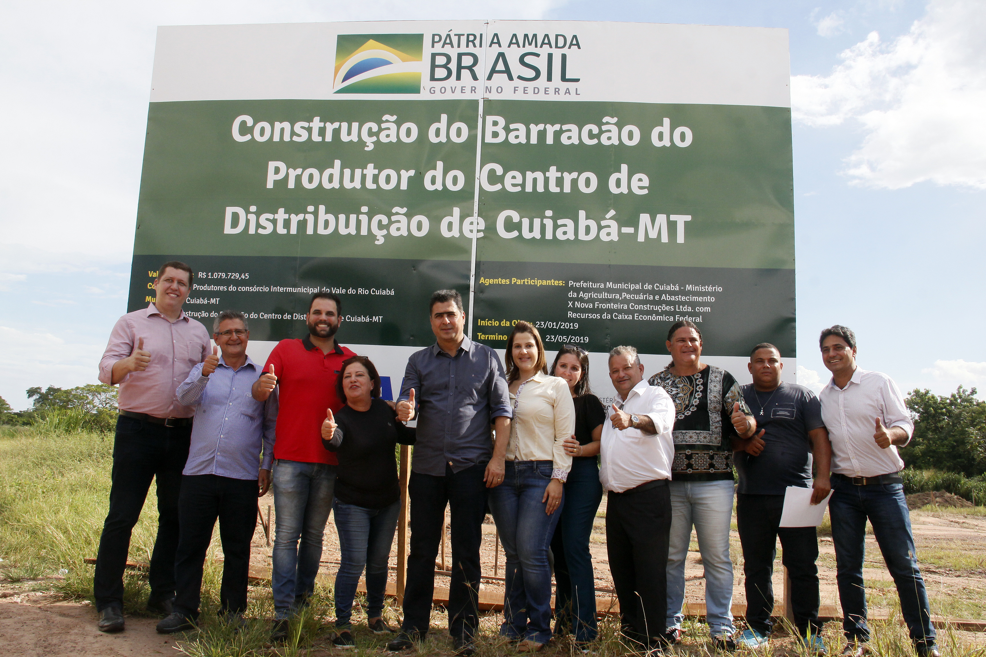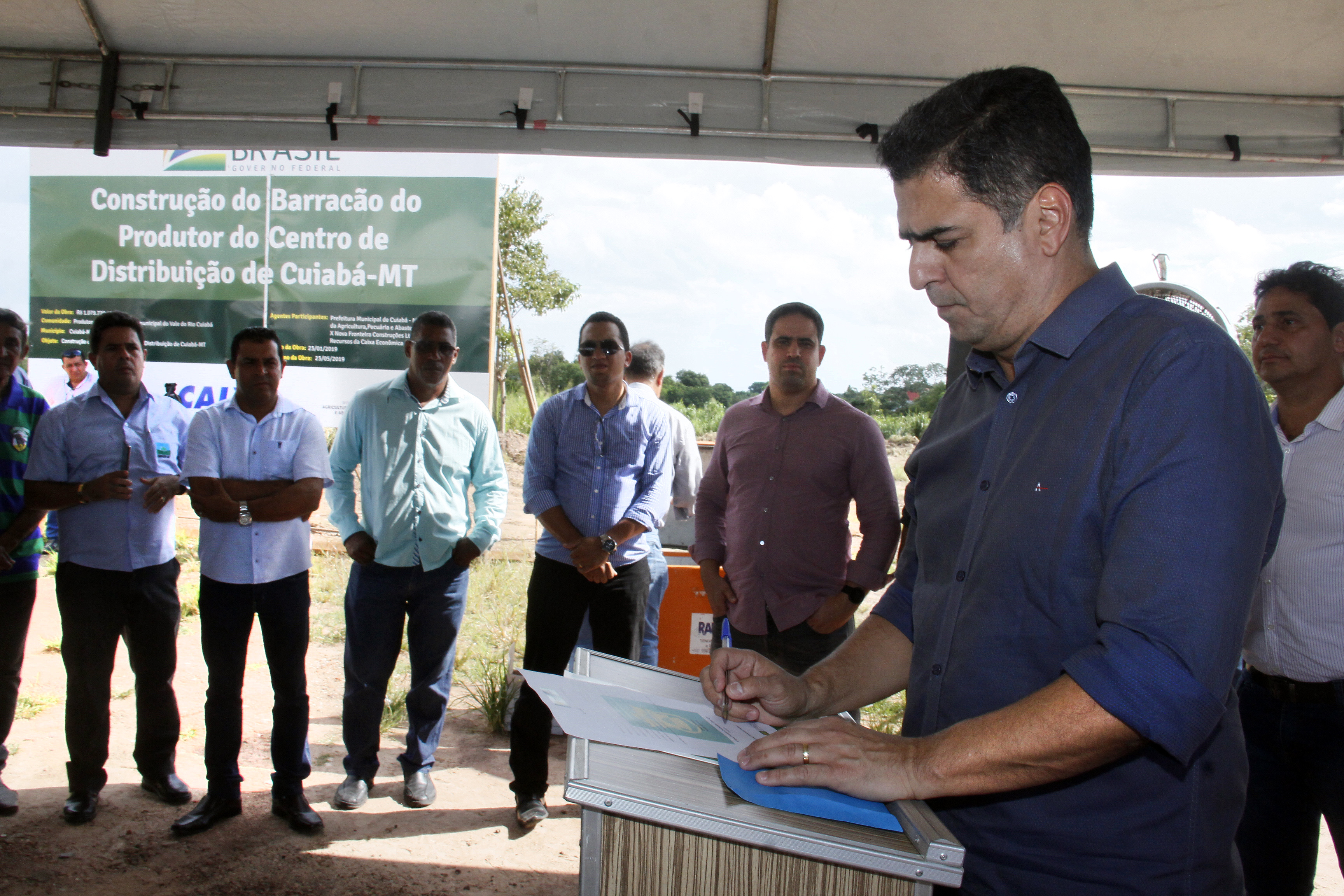 O prefeito de Cuiabá, Emanuel Pinheiro, assinou a ordem de serviço para a construção do Barracão do Produtor, nesta quinta-feira (21). Com investimento estimado em R$ 1,7 milhão, a obra irá beneficiar cerca de 300 produtores rurais do Central de Abastecimento de Cuiabá (CAC), no Distrito Industrial. Os recursos, repassados pela Caixa Econômica Federal, foram viabilizados pelo então ministro Blairo Maggi e pelo, na época, secretário de Políticas Agrícolas do Ministério da Agricultura, Pecuária e Abastecimento (MAPA), Neri Geller.
