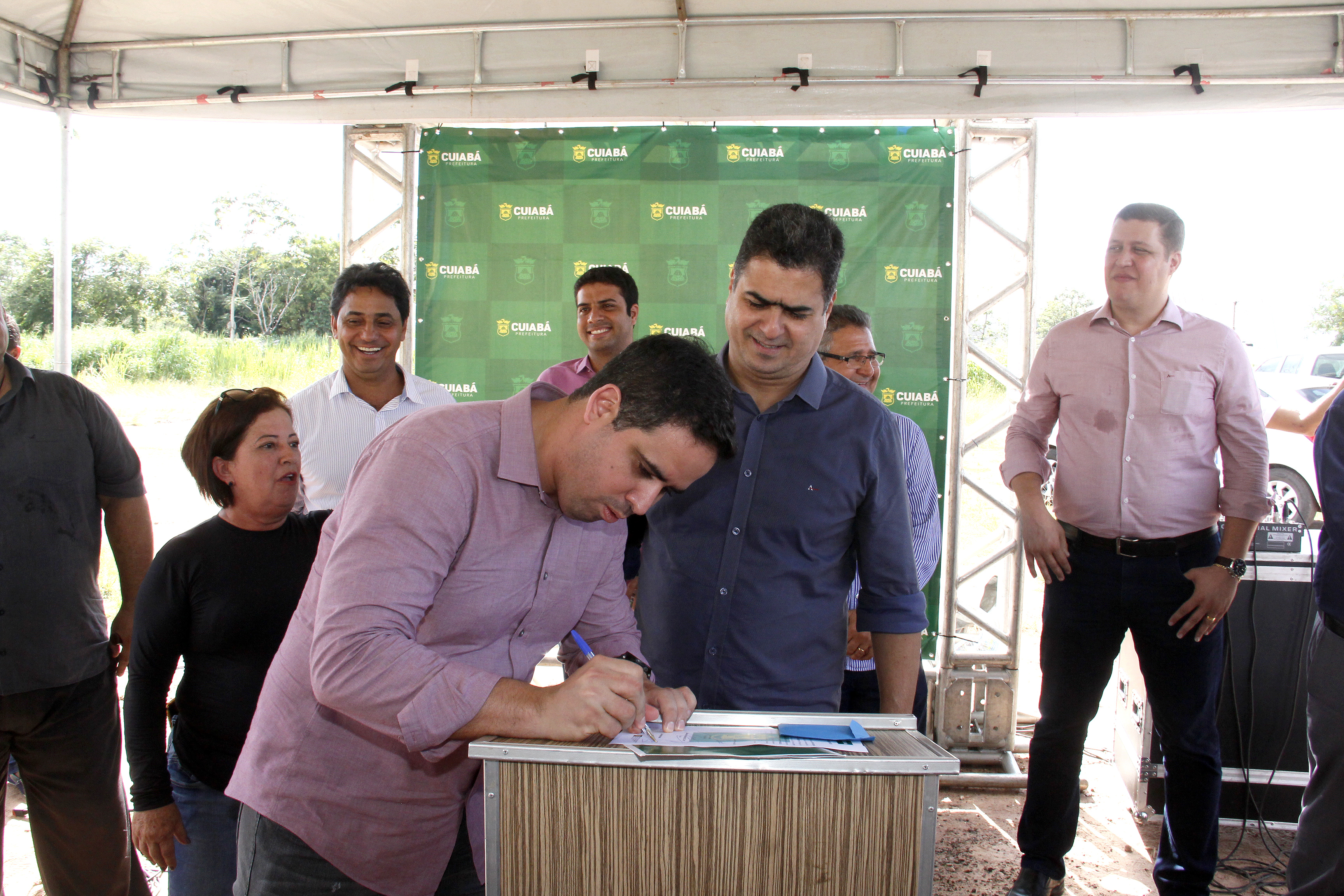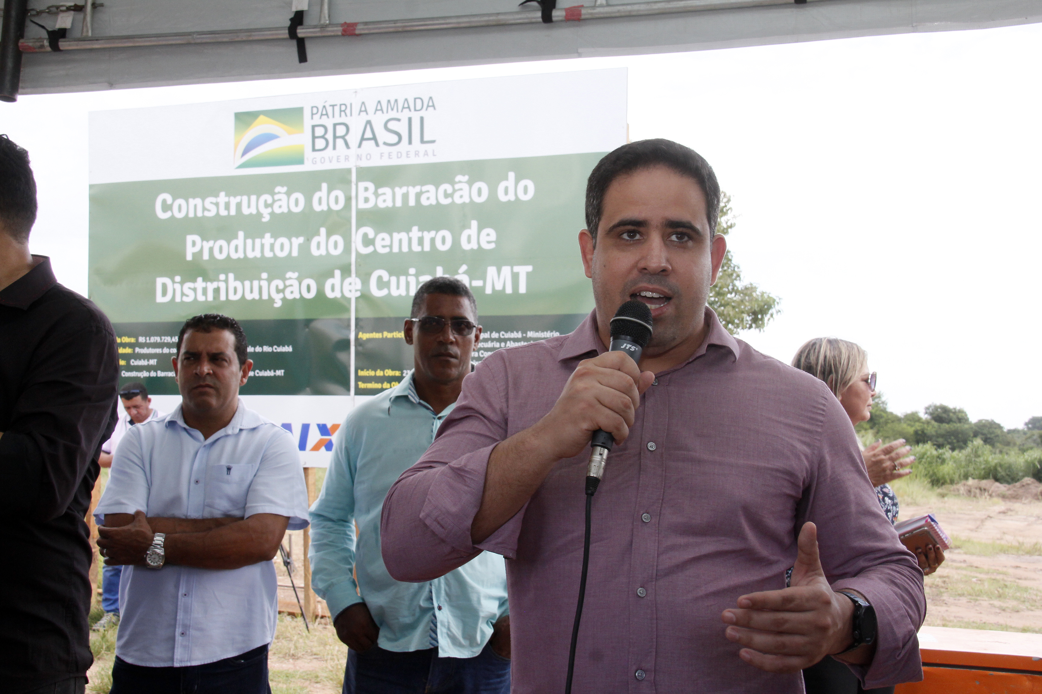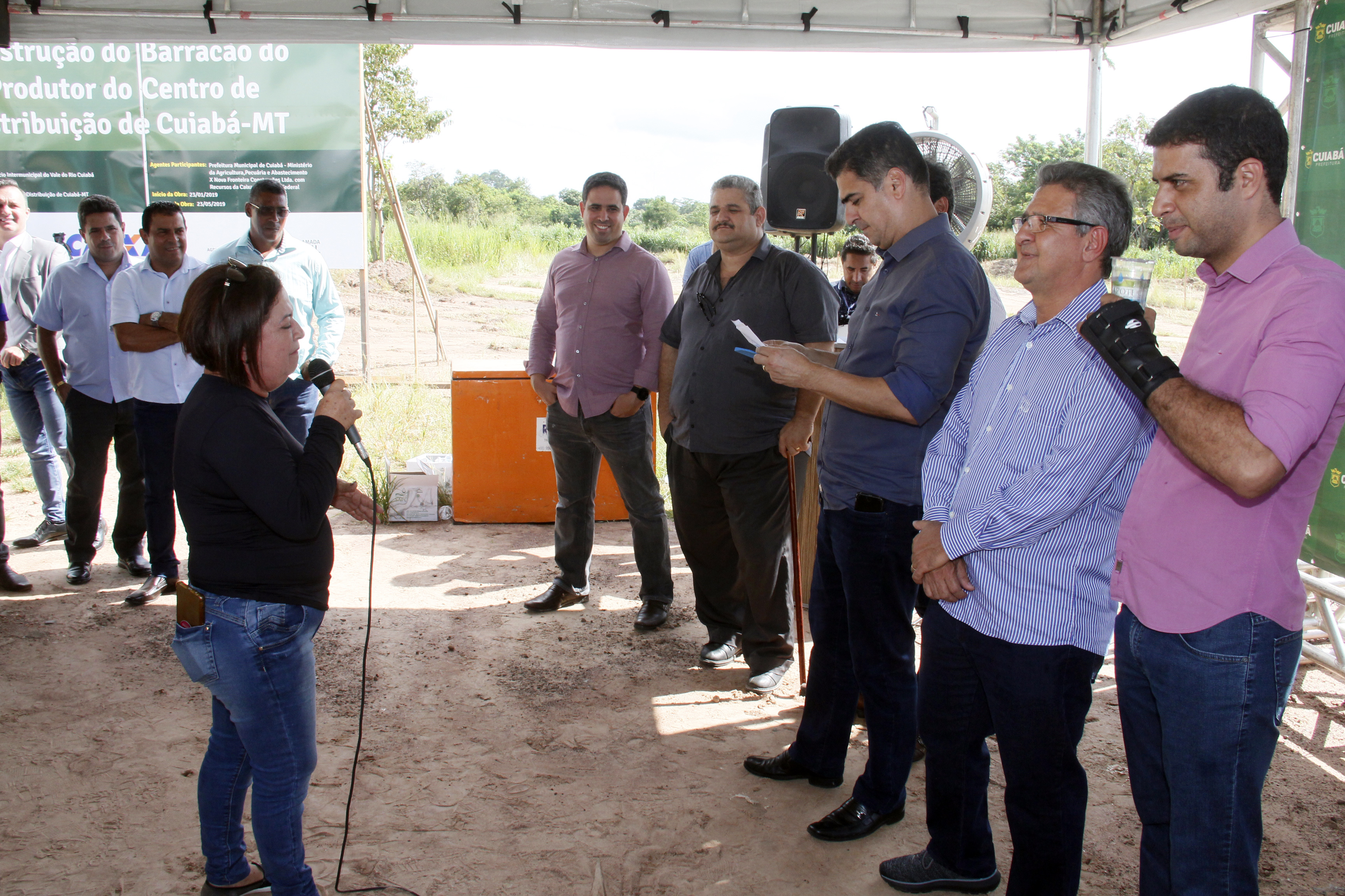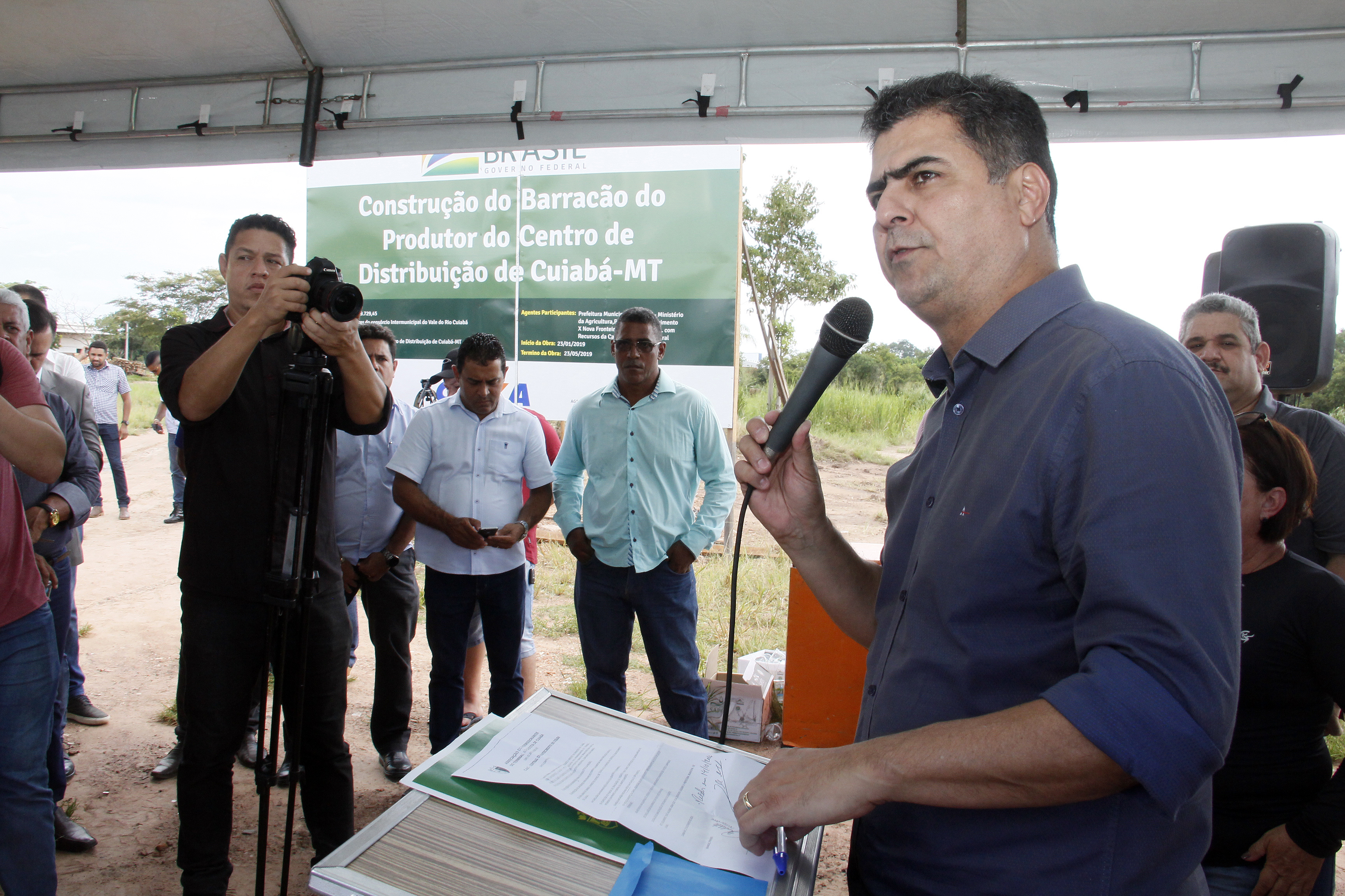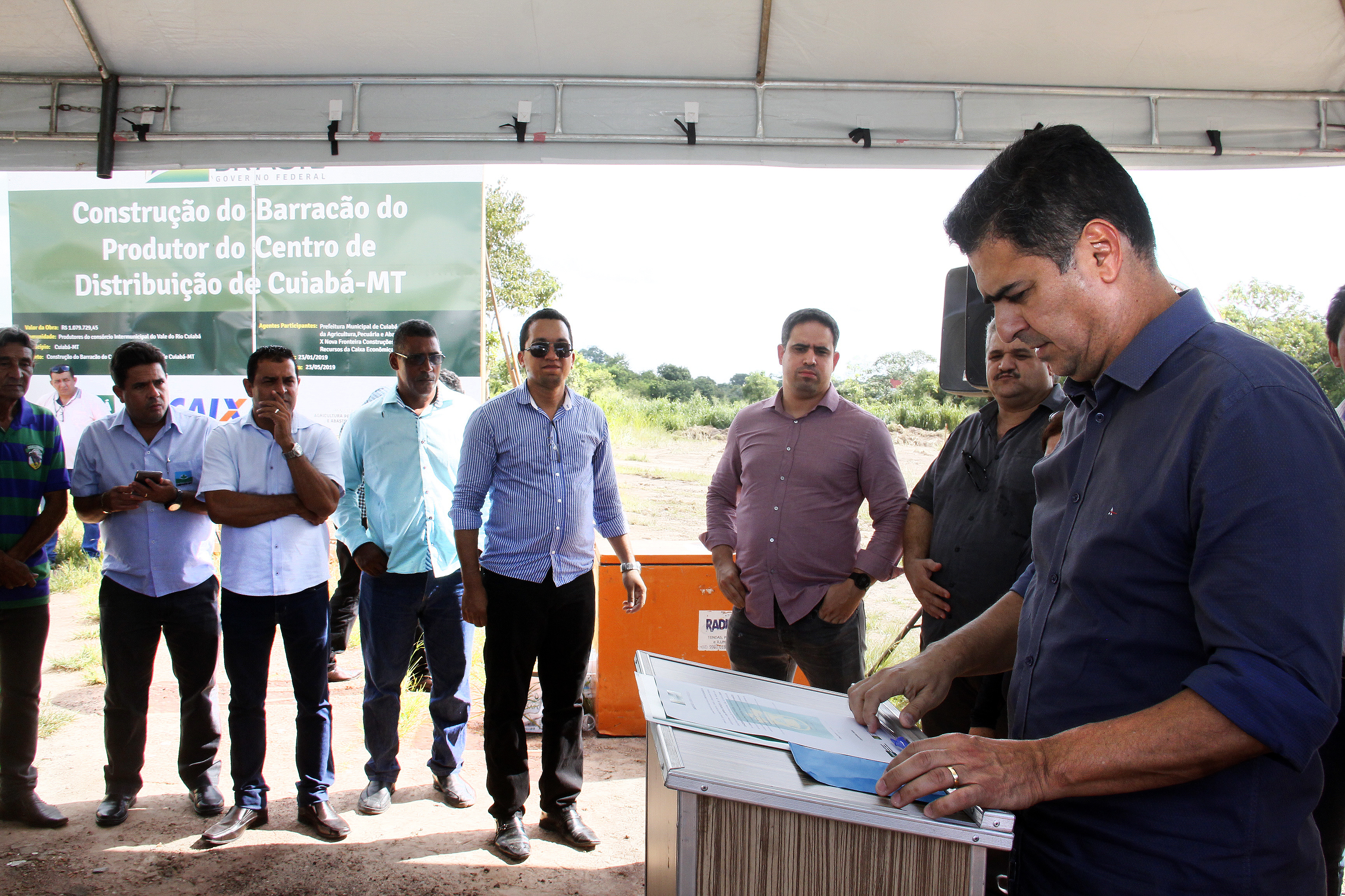 O prefeito de Cuiabá, Emanuel Pinheiro, assinou a ordem de serviço para a construção do Barracão do Produtor, nesta quinta-feira (21). Com investimento estimado em R$ 1,7 milhão, a obra irá beneficiar cerca de 300 produtores rurais do Central de Abastecimento de Cuiabá (CAC), no Distrito Industrial. Os recursos, repassados pela Caixa Econômica Federal, foram viabilizados pelo então ministro Blairo Maggi e pelo, na época, secretário de Políticas Agrícolas do Ministério da Agricultura, Pecuária e Abastecimento (MAPA), Neri Geller.