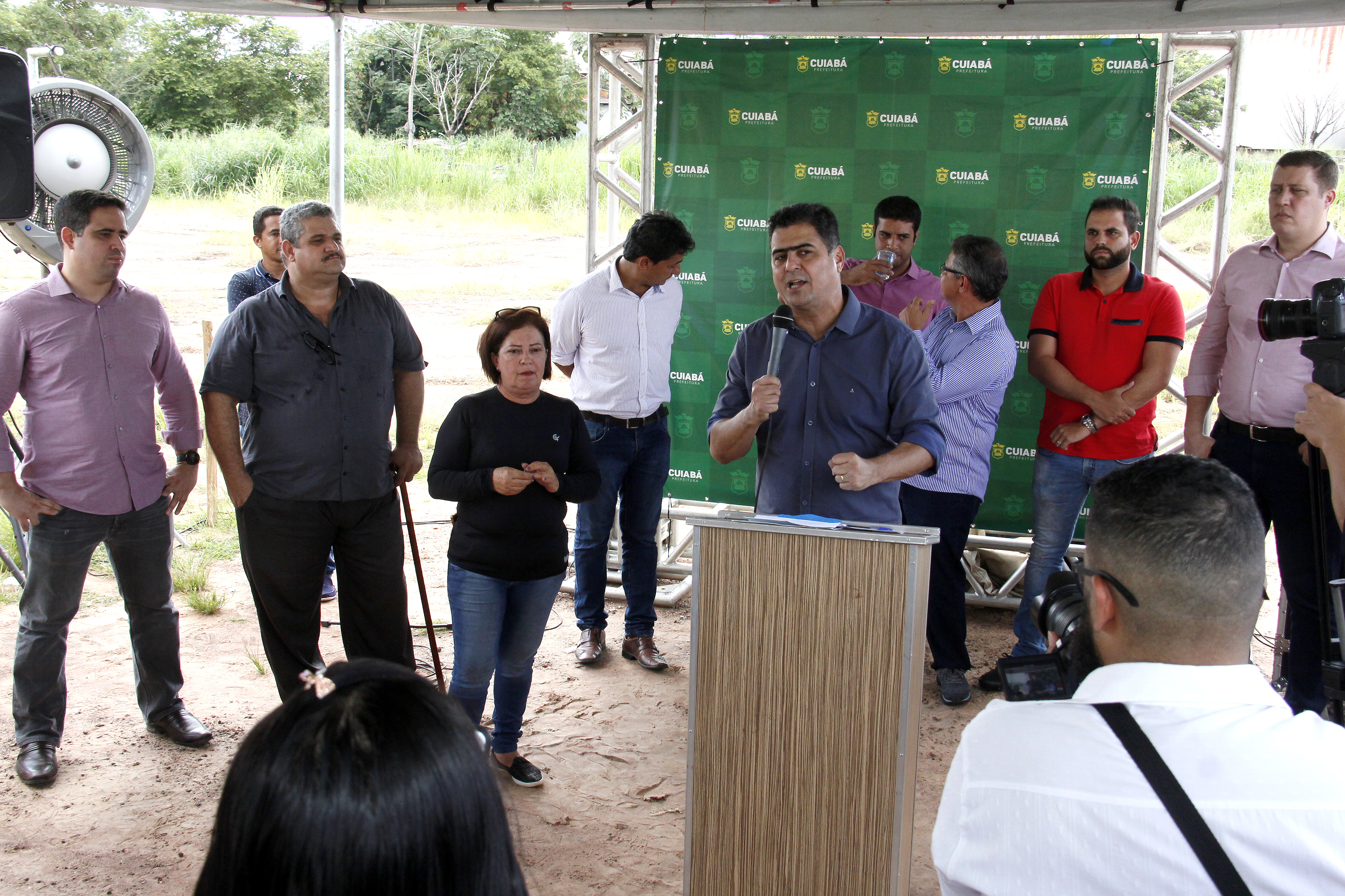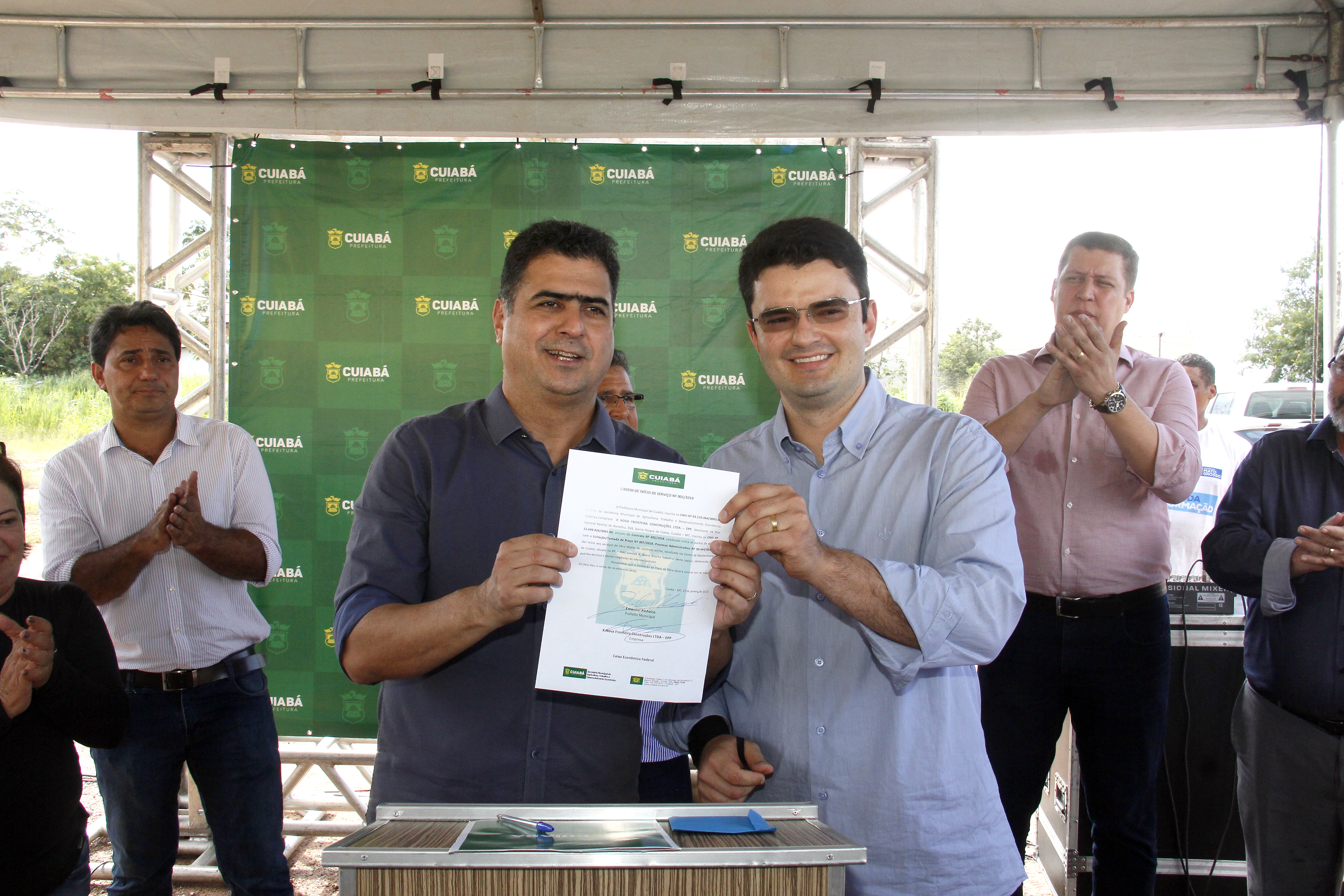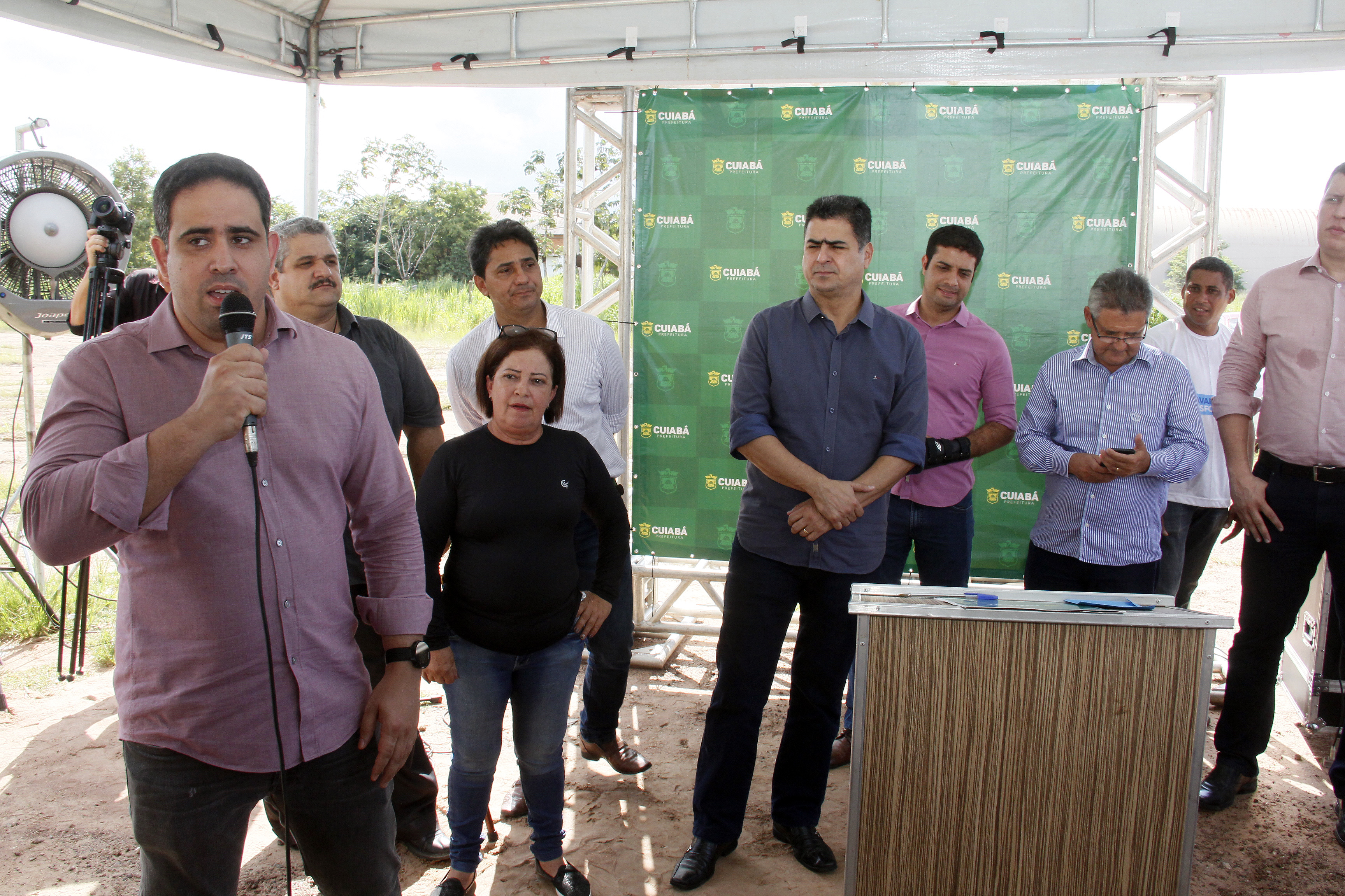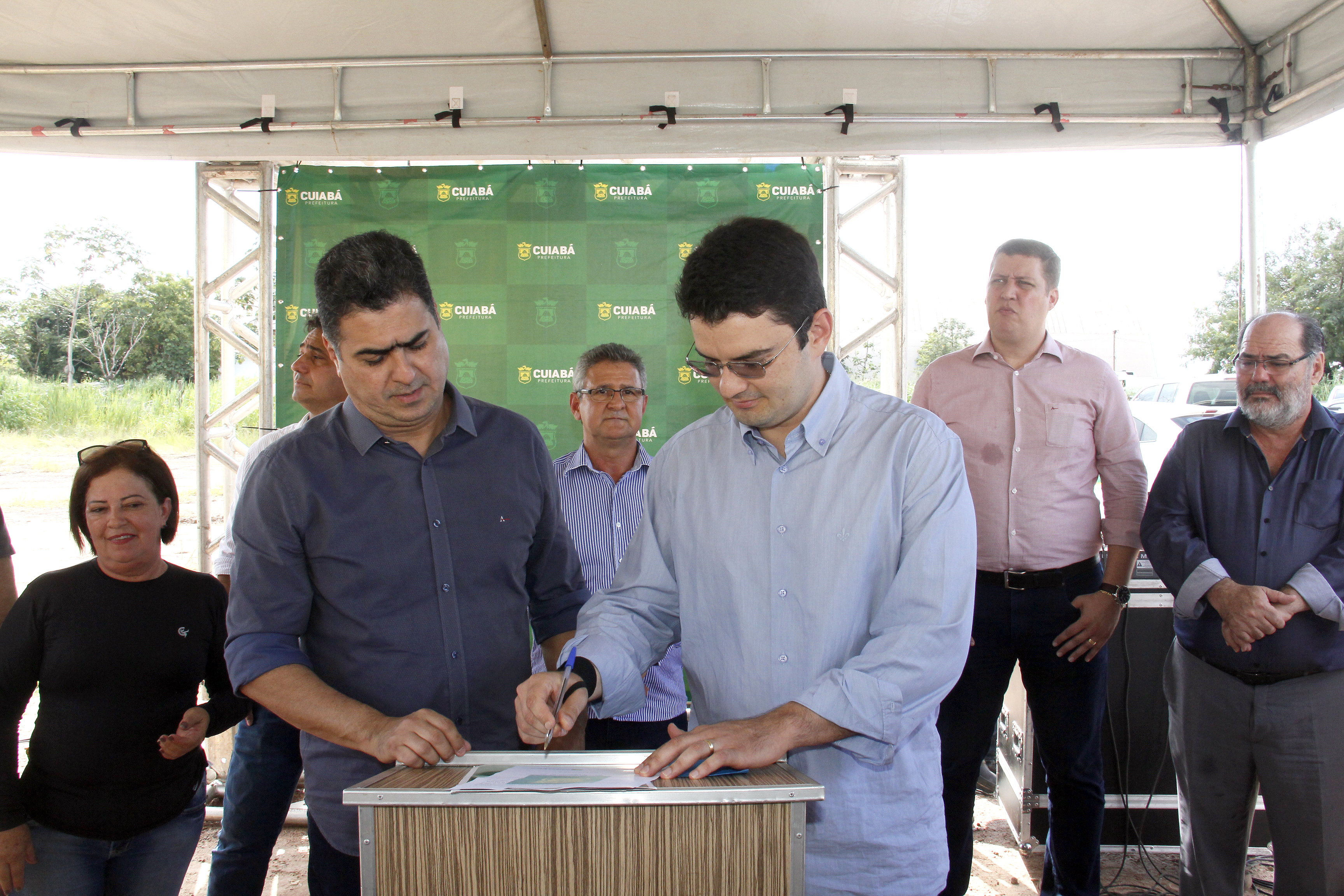 O prefeito de Cuiabá, Emanuel Pinheiro, assinou a ordem de serviço para a construção do Barracão do Produtor, nesta quinta-feira (21). Com investimento estimado em R$ 1,7 milhão, a obra irá beneficiar cerca de 300 produtores rurais do Central de Abastecimento de Cuiabá (CAC), no Distrito Industrial. Os recursos, repassados pela Caixa Econômica Federal, foram viabilizados pelo então ministro Blairo Maggi e pelo, na época, secretário de Políticas Agrícolas do Ministério da Agricultura, Pecuária e Abastecimento (MAPA), Neri Geller.