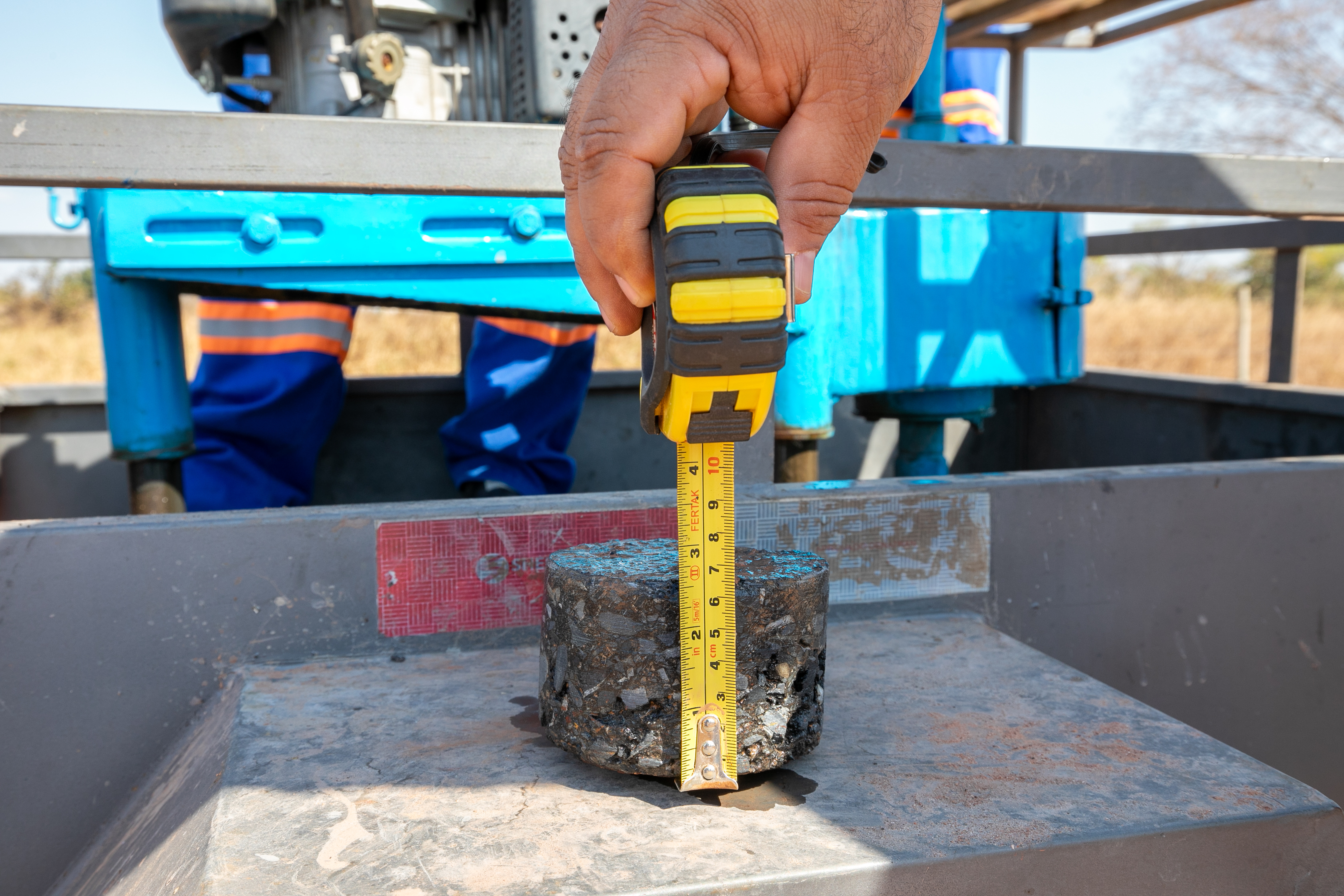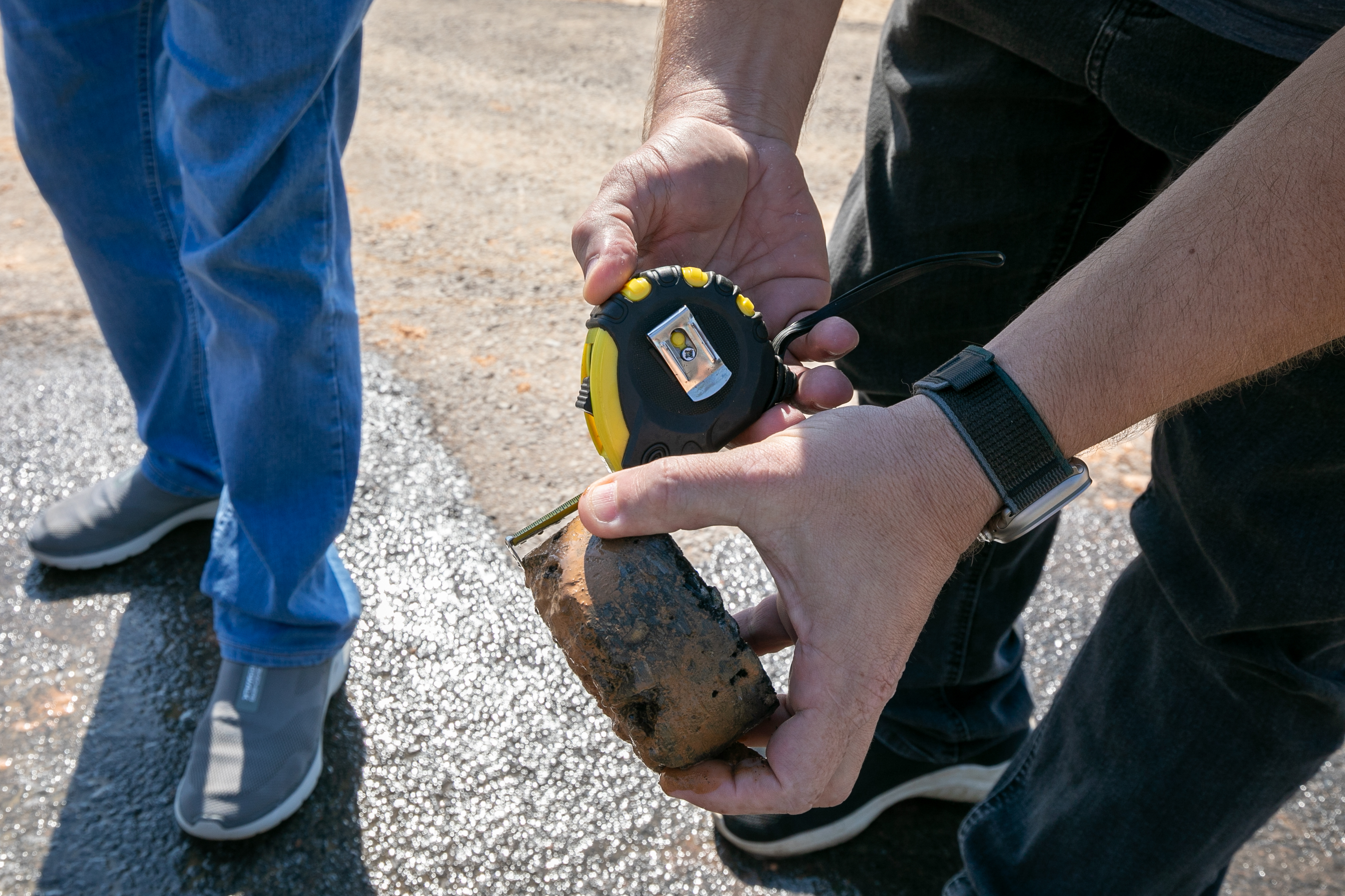 Abilio acompanhou os testes para verificar se a pavimentação está dentro dos padrões exigidos pela norma, que permite uma variação de até 5% na espessura prevista de 5 cm. Ele fez observações técnicas quanto à qualidade da capa asfáltica.