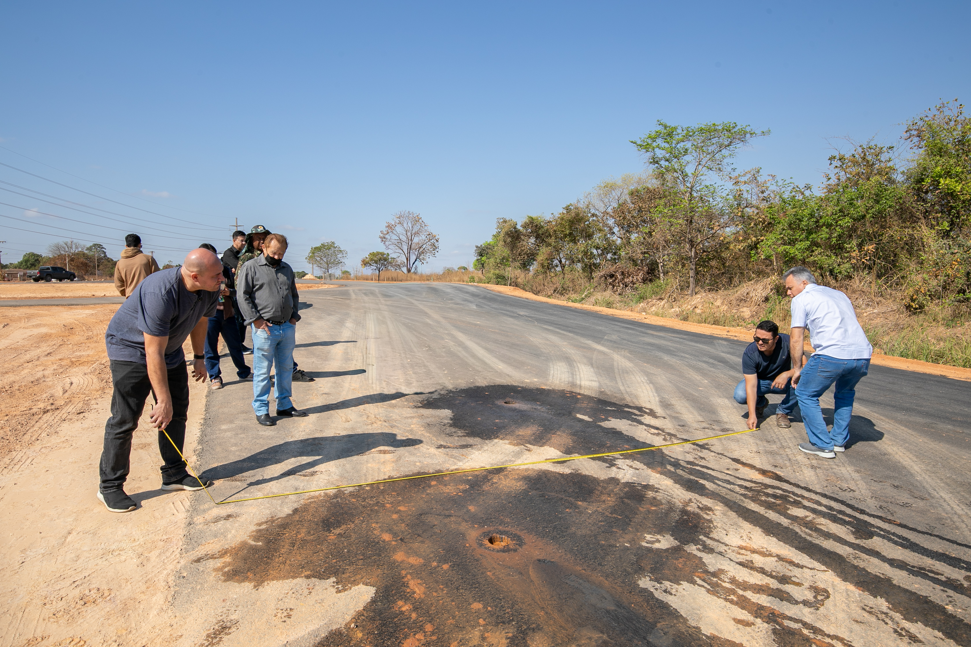 A vistoria contou com a presença do secretário de Infraestrutura e Obras, Reginaldo Teixeira e sua equipe técnica, além de representantes da construtora Nhambiquaras, responsável pela obra. Durante a visita, foram realizadas medições da pavimentação asfáltica para avaliar a qualidade dos serviços executados.