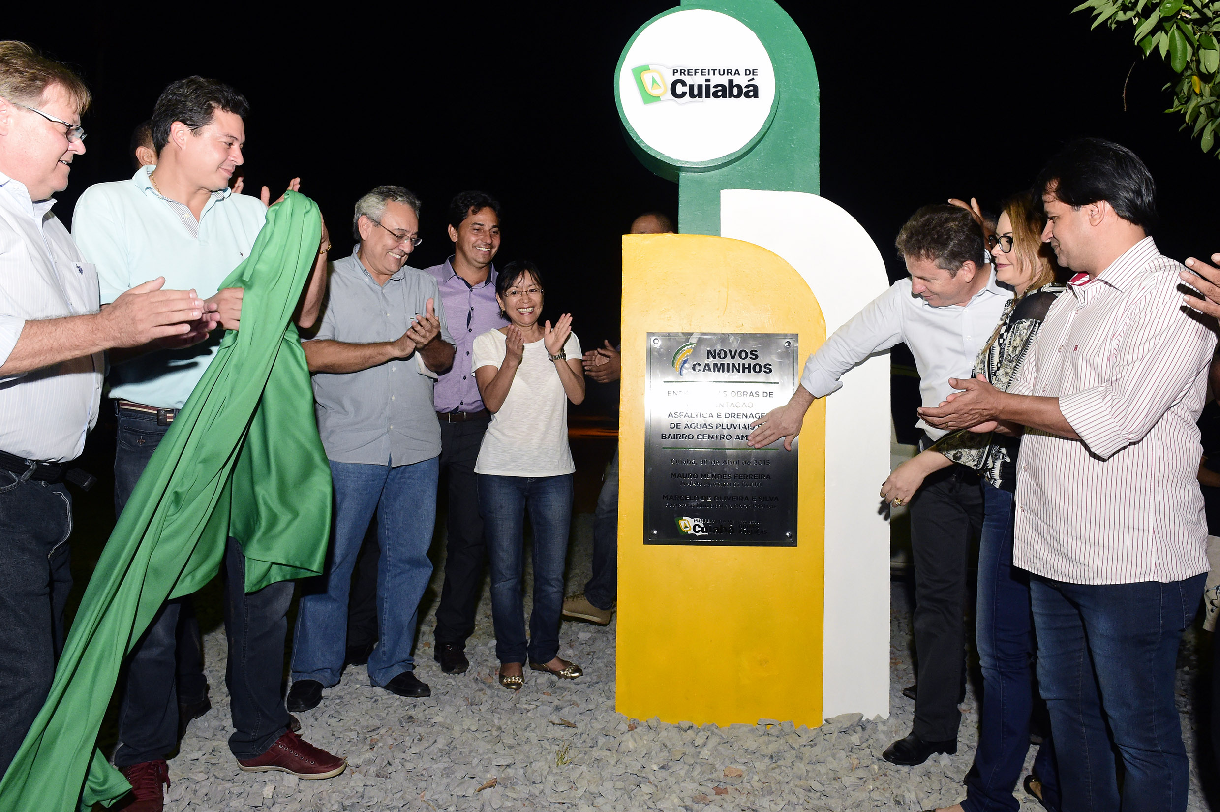 O prefeito Mauro Mendes cumpriu na noite desta quinta-feira (30), a oitava etapa de inaugurações e lançamento de obras do Programa Novos Caminhos, dentro da programação oficial alusiva aos 296 anos de fundação de Cuiabá. Desta vez os beneficiados foram os moradores do bairro Centro América, localizado entre o Morada do Outro e os CPA’s. O bairro teve 8 de suas principais ruas pavimentadas. O total investido chegou a R$ 1,2 milhão