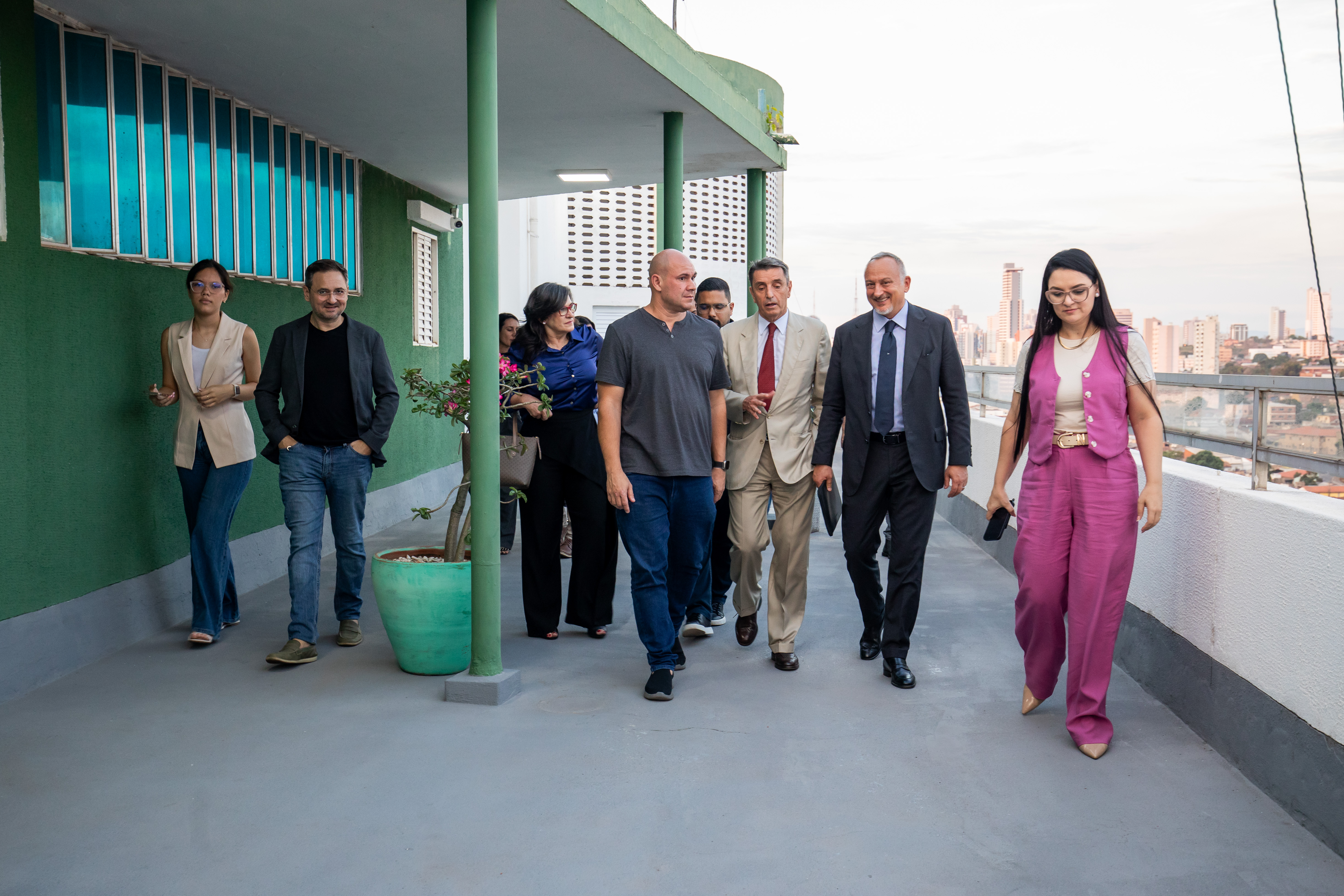 Na imagem principal o prefeito posou para uma foto com os embaixadores da Itália e todos os convidados da agenda. A imagem foi tirada no oitavo andar do Palacio Alencastro com vista para o por do sol.