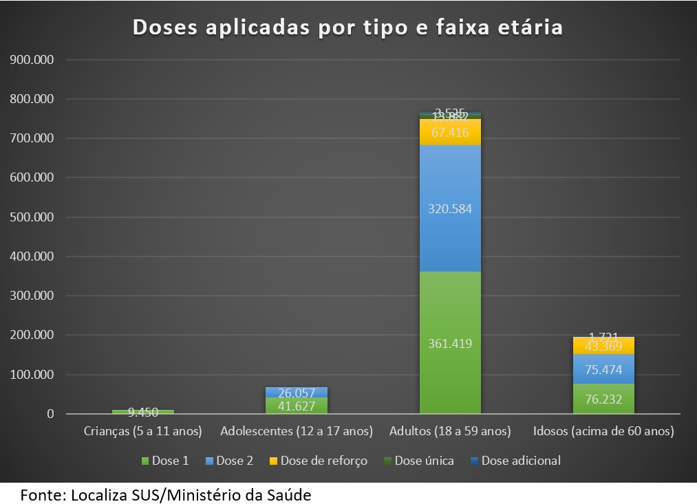 Quanto à dose de reforço (popularmente chamada de terceira dose), 78,9% do grupo de indivíduos de 18 a 59 anos imunizados com duas doses ainda não compareceram para completar o esquema vacinal. Entre os idosos, esse percentual é de 42,5%.