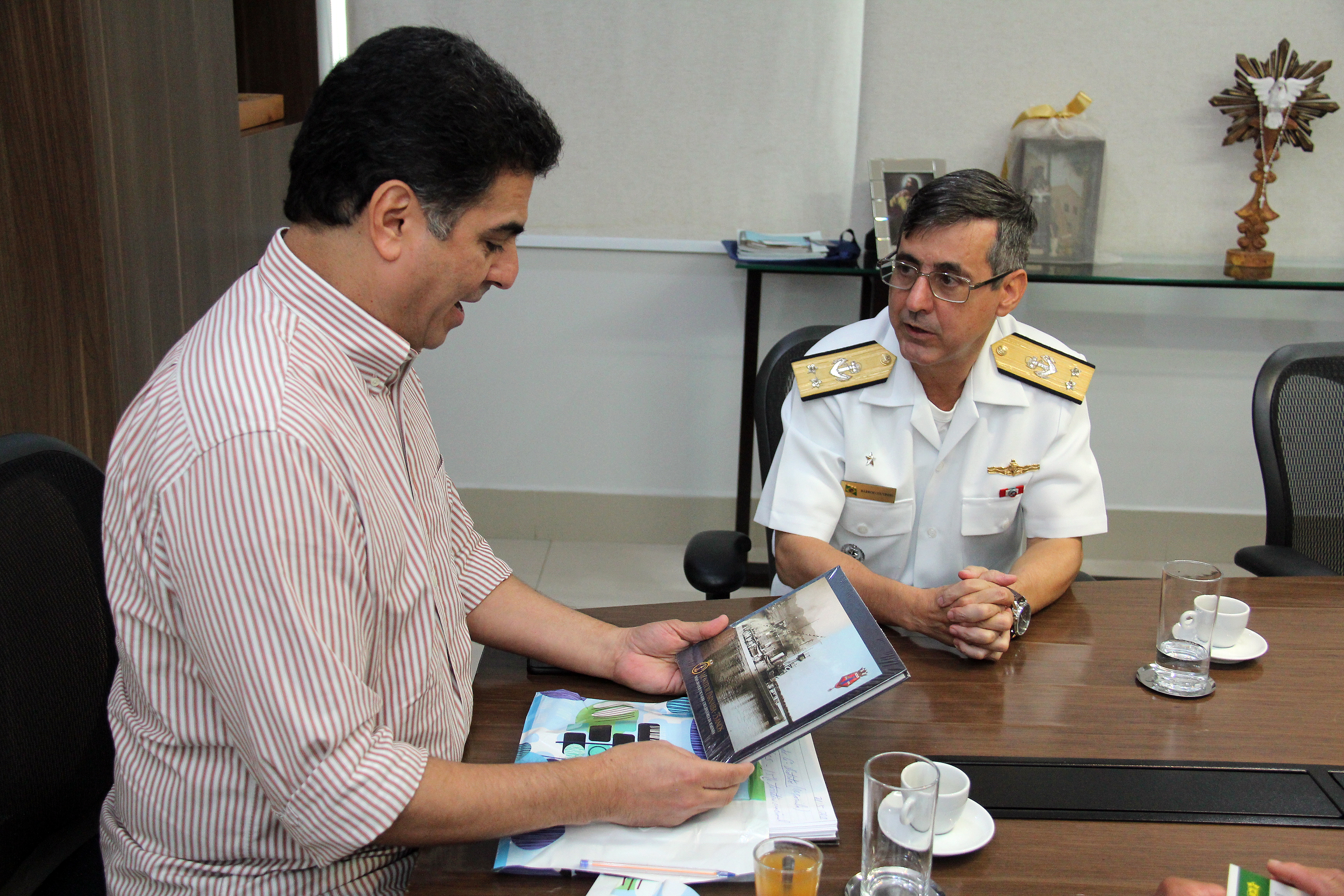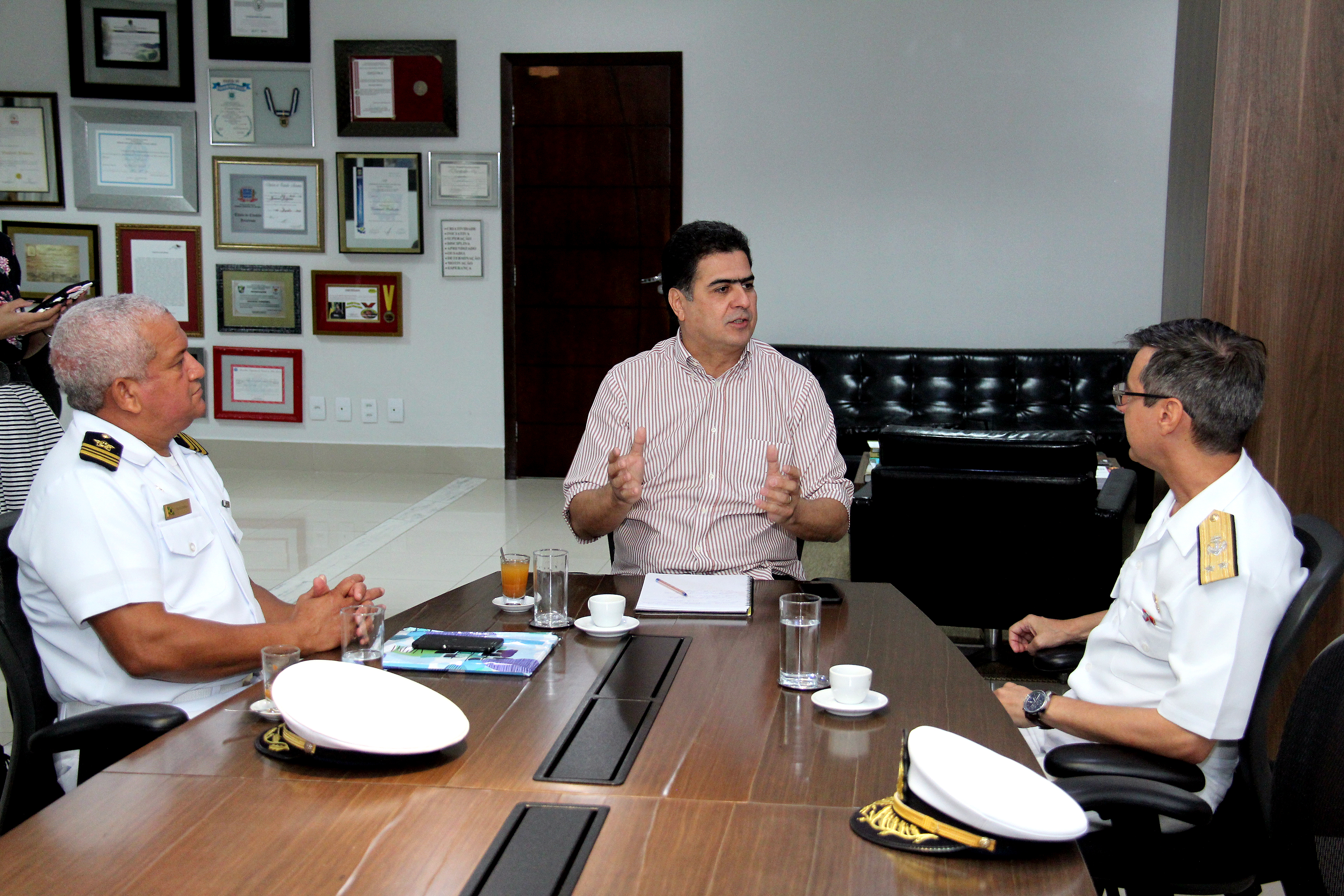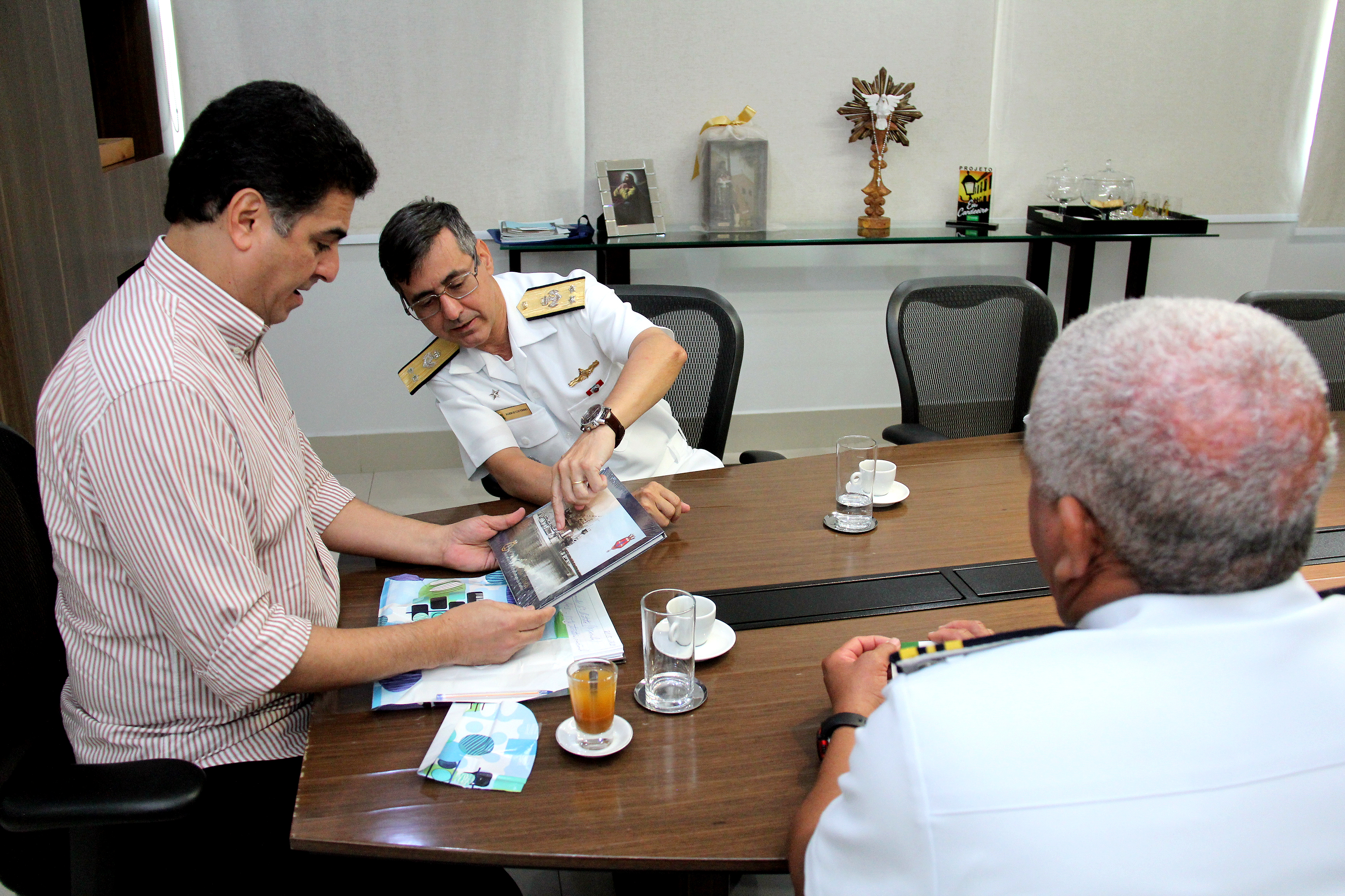 O prefeito Emanuel Pinheiro e a Marinha do Brasil - Comando do 6º Distrito Naval - dialogaram sobre possíveis ações para marcar as festividades do tricentenário de Cuiabá. O encontro, que aconteceu na tarde desta segunda-feira (21), partiu inicialmente de uma visita de cortesia feita pela instituição e se desenvolveu em uma troca de experiências, possibilidades de atividades, homenagens firmadas mediante uma parceria entre o município e a força armada.