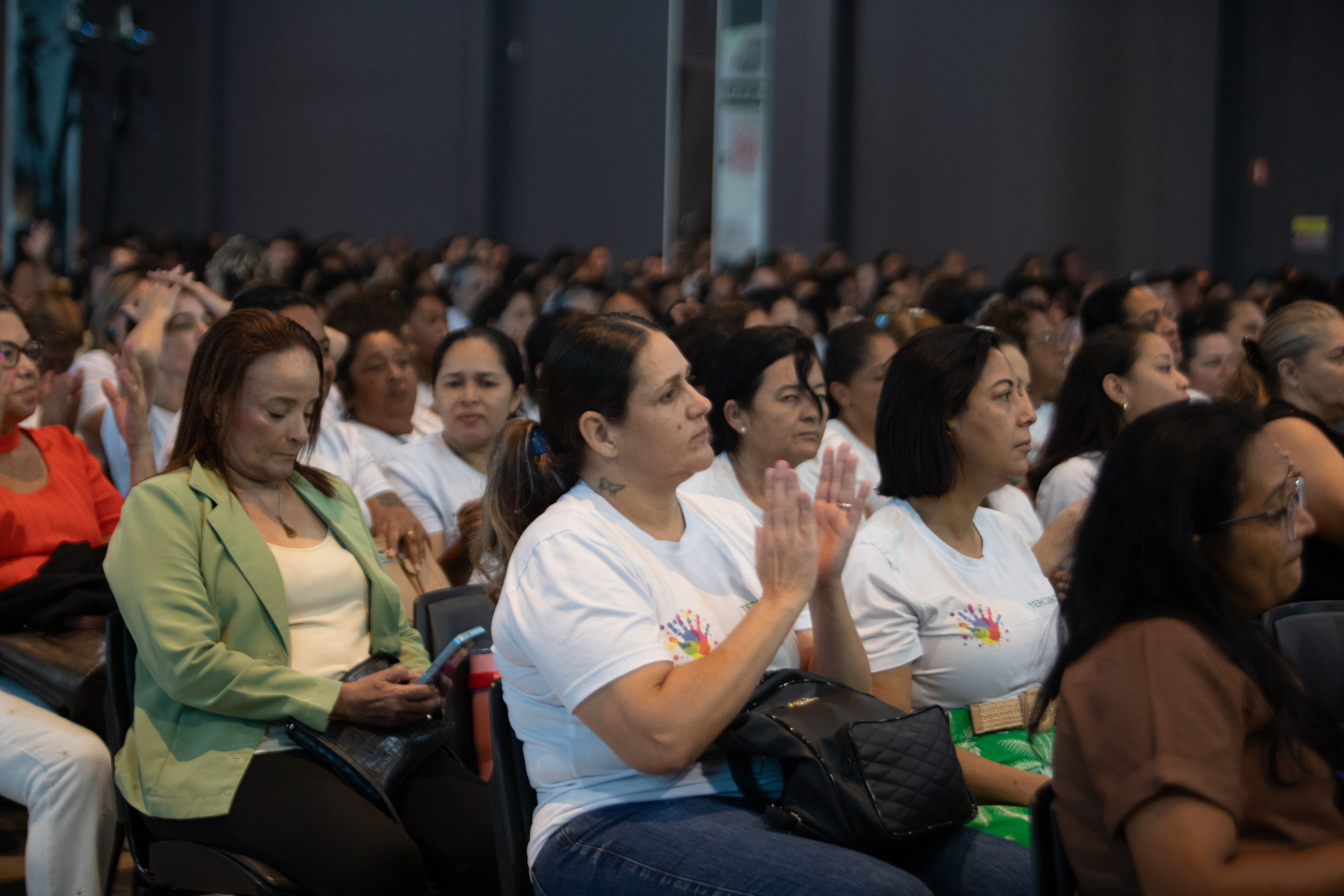 A primeira-dama também destacou que o evento alcança muitas famílias e é uma oportunidade de inclusão real. “Essa parceria é essencial, assim a gente consegue alcançar cada vez mais famílias e, nesse caso aqui, nós estamos alcançando também as cuidadoras dos alunos da nossa rede municipal. Então, é importante que a gente tenha momentos como este de capacitação, de conscientização, para poder colaborar com a sociedade em geral”, emendou Samantha.