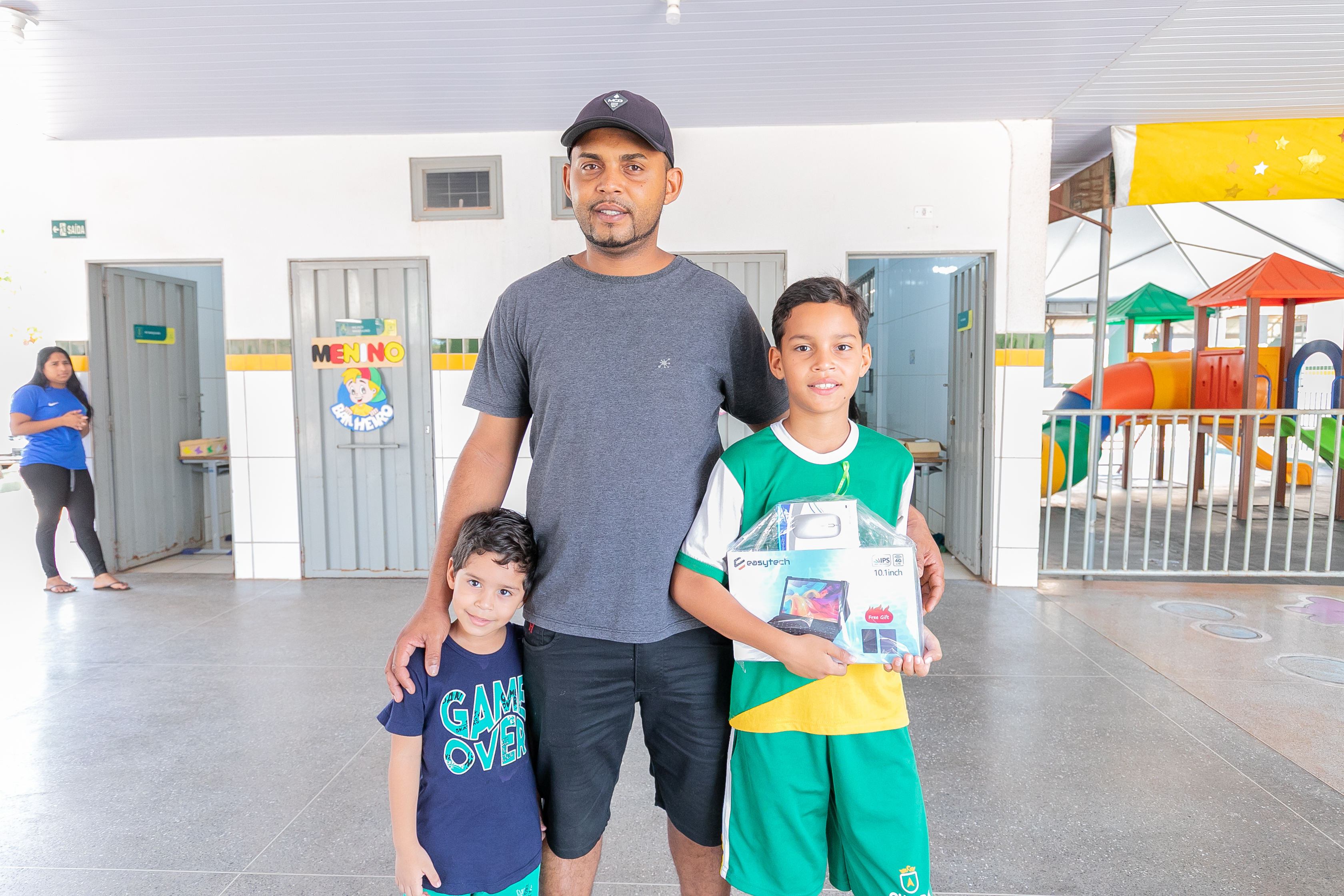 O prefeito Abilio Brunini e a primeira dama Samantha Iris entregaram na quarta-feira (15) um aparelho tablet ao estudante João Lucas Silva Barreto, matriculado no 4º ano C da escola professora Gracildes Melo Dantas, localizada no bairro Altos da Glória. O ato de entrega ocorreu durante o lançamento do projeto “Livro Livre”.