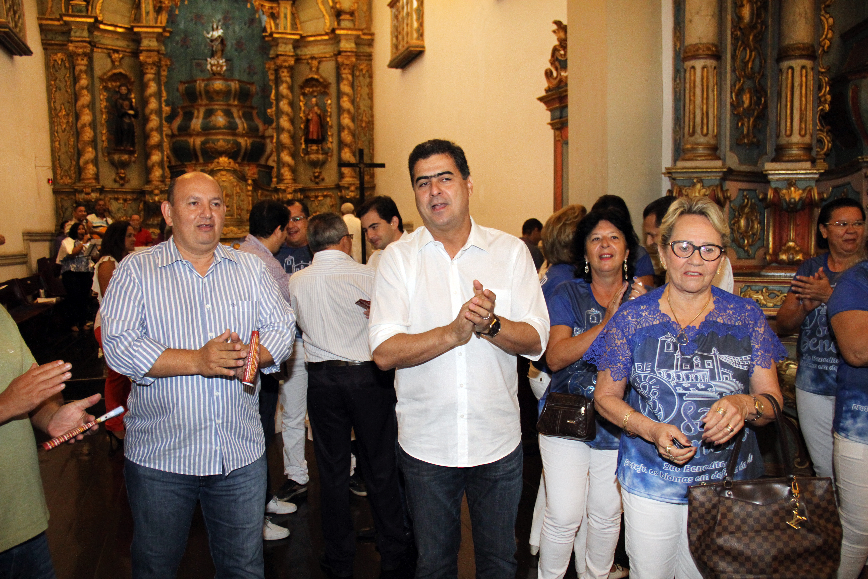 Como acontece todos os anos, foi celebrada na tradicional Paroquia do Rosário e Igreja de São Benedito, no centro histórico da cidade, a missa em comemoração ao aniversário da Capital, que este ano, completa seus 298 anos. O prefeito Emanuel Pinheiro sentou-se na primeira fileira de banco, ao lado do vice-prefeito Niuan Ribeiro e acompanhou todo o ato religioso. Ainda participaram da missa comemorativa deputados federais, vereadores, secretários municipais, e o representante do Governo do Estado, Paulo Taques - secretário Chefe da Casa Civil, além de devotos e toda a comissão da Irmandade da tradicional Igreja. Segundo Emanuel, foi uma honra participar dessa festa que intimamente é ligada ao povo cuiabano que preserva a sua história e tradição, por isso, como prefeito foi pedir as bênçãos de Deus para uma cidade mais próspera, alegre e solidária. “Estamos aqui rumo aos 300 anos de existência de Cuiabá, e esta missa abençoada na madrugada nesse dia 8 de Abril em que comemoramos os 298 da Cuiabá de todos os santos, é o presente para o nosso povo. Então que Deus pai todo poderoso nos abençoe nessa gestão e que consigamos realizar todos os nosso objetivos visando uma cidade ainda melhor para se viver”, frisou.