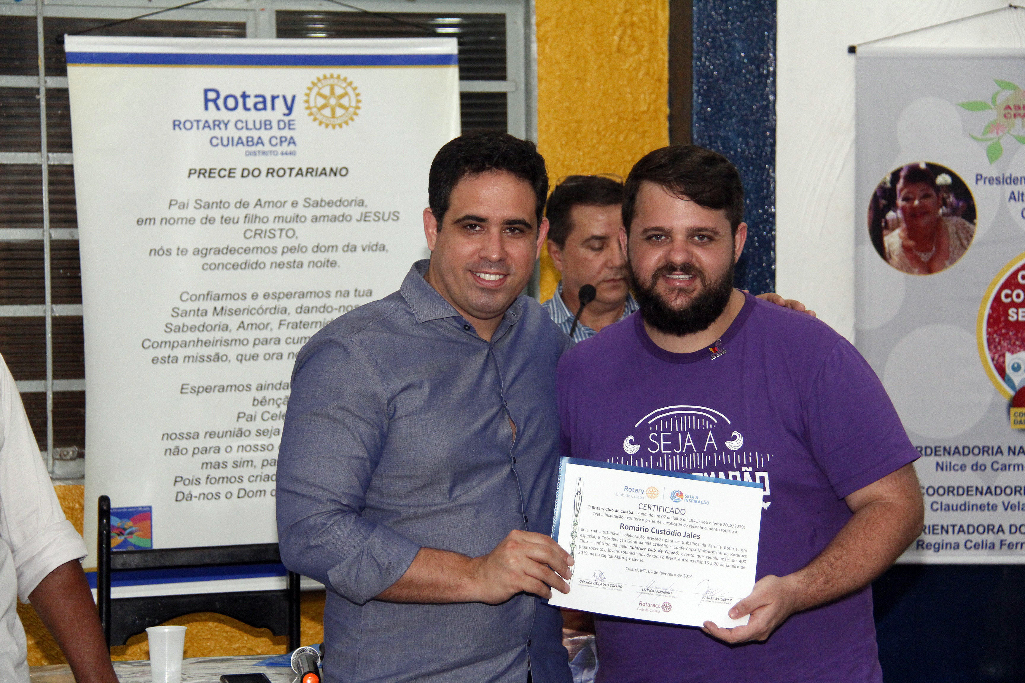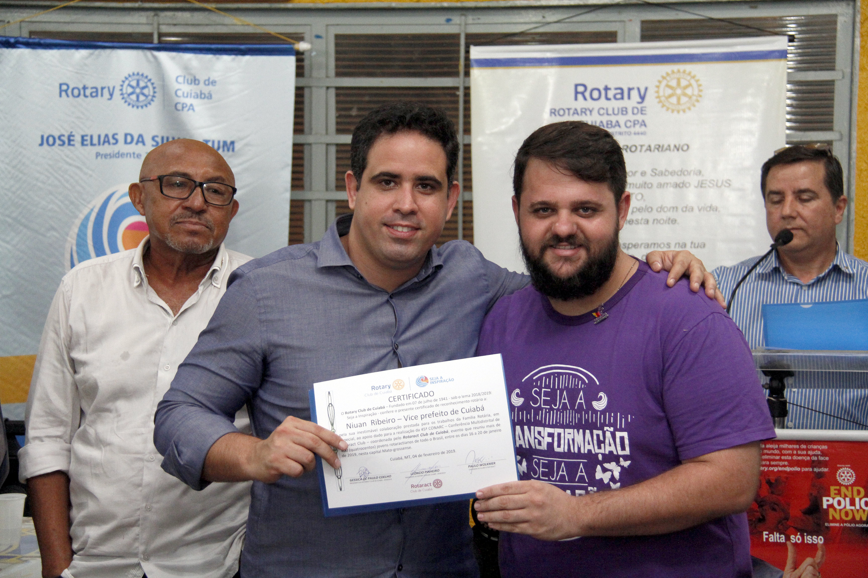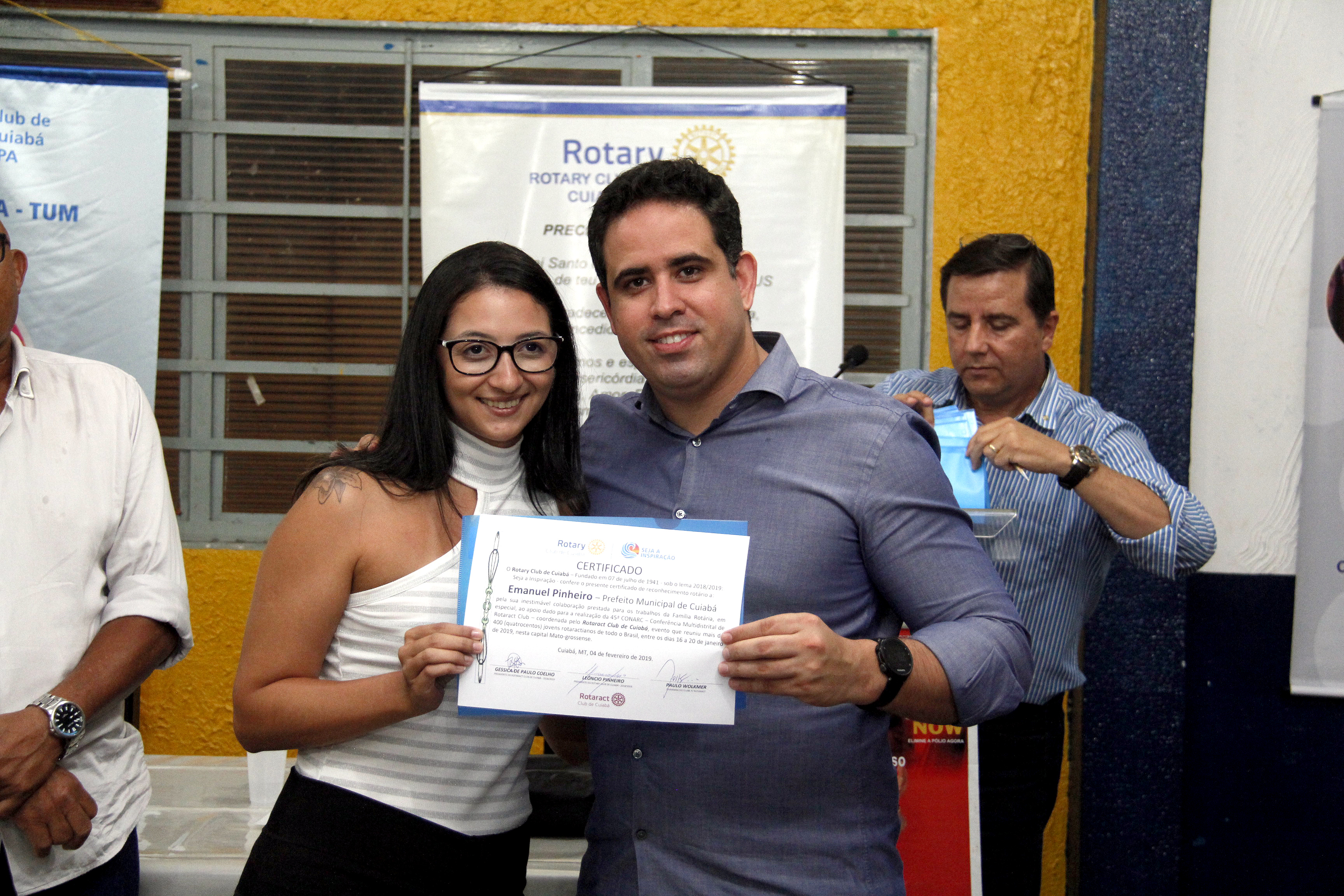 O prefeito de Cuiabá, Emanuel Pinheiro foi reconhecido pelos serviços prestados ao Rotary ao longo da 45ª Conferência Nacional de Rotaract Club (Conarc). O evento reuniu mais de 400 jovens de todo o Brasil na Capital entre os dias 16 e 20 de janeiro. Em encontro realizado na noite de segunda-feira (4), o vice-prefeito, Niuan Ribeiro, também homenageado, recebeu as honrarias e reforçou a parceria entre a gestão e o Clube de Serviço.