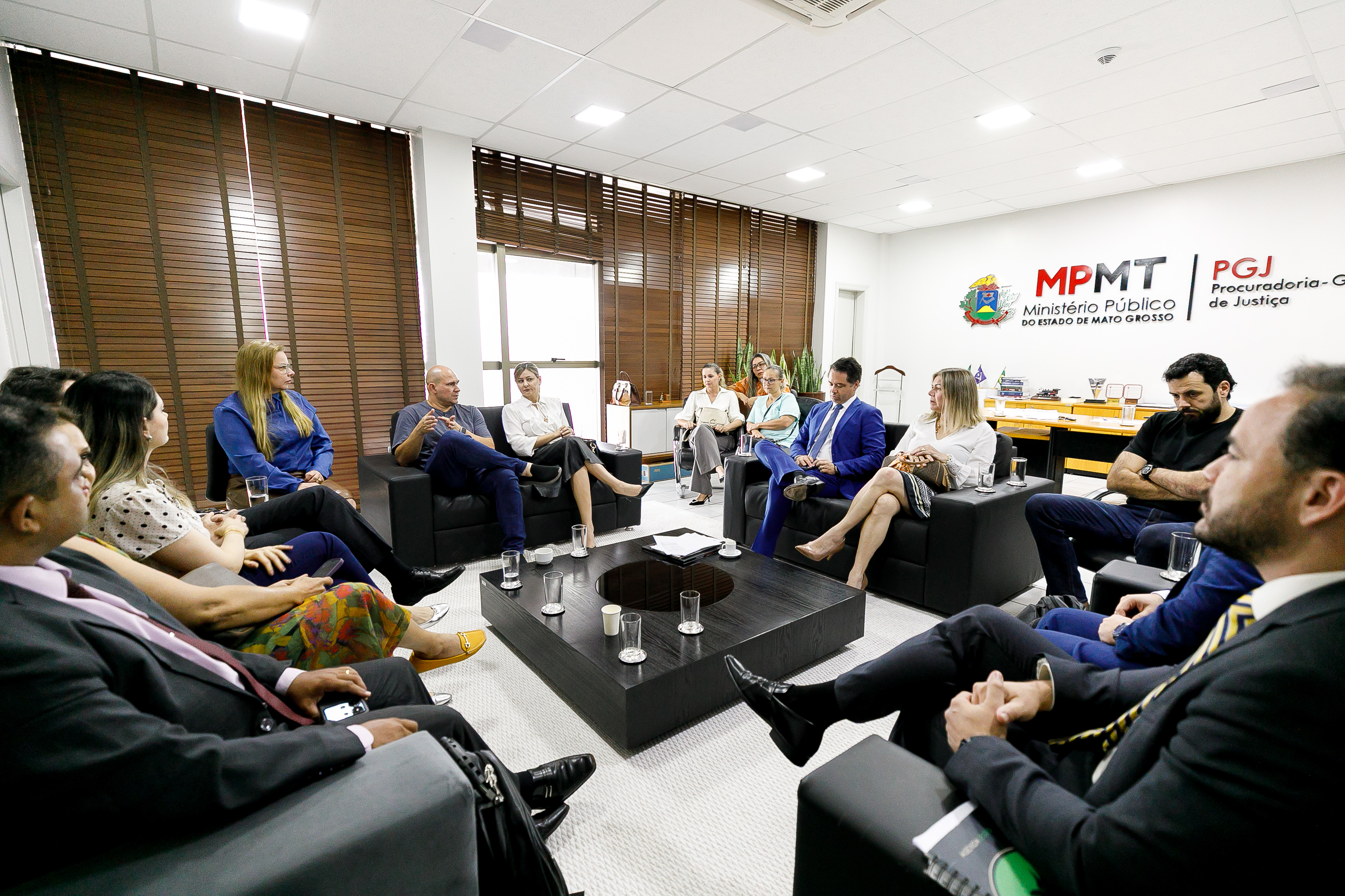 O prefeito de Cuiabá, Abilio Brunini, se reuniu na tarde desta quinta-feira (16) com o procurador-geral de Justiça, Rodrigo Fonseca, o promotor de Justiça Milton Mattos e a promotora Lindinalva Correia Rodrigues para oficializar o pedido de dilação de prazo referente ao cálculo das porcentagens de insalubridade aplicadas aos servidores da saúde municipal, conforme a nova lei aprovada hoje pela Câmara Municipal.