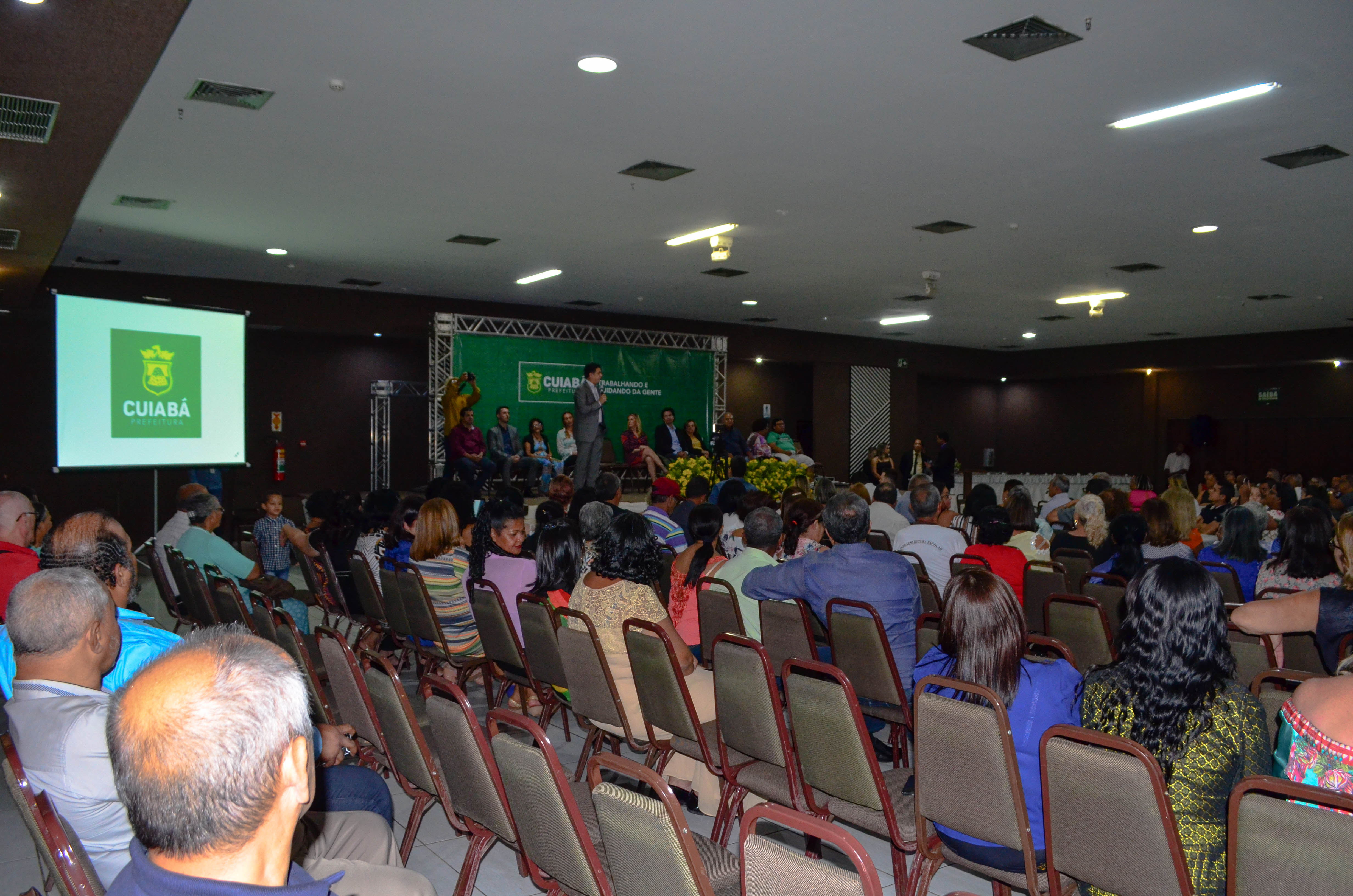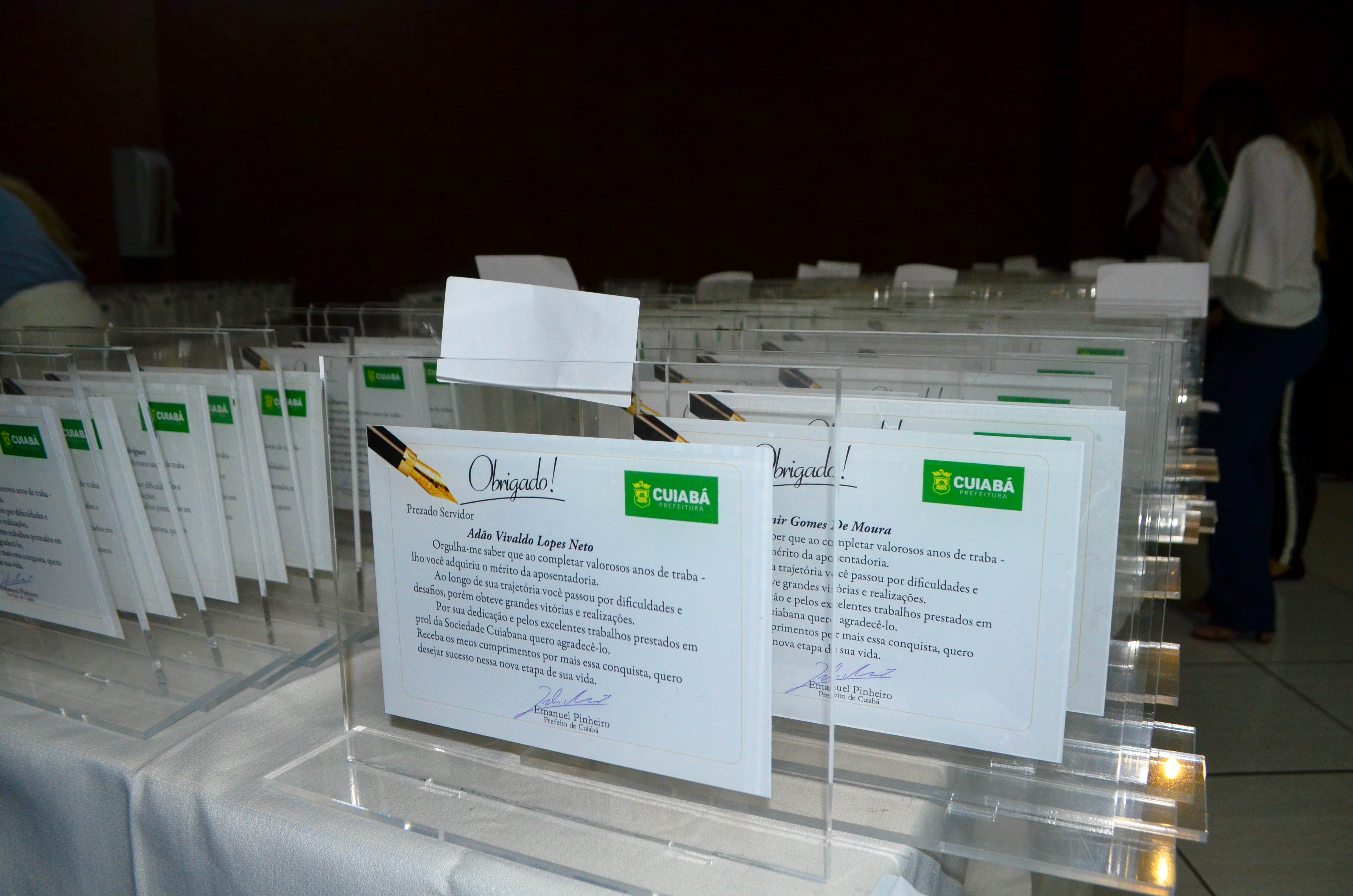 Durante a solenidade, mais de 100 servidores aposentados receberam das mãos do prefeito Emanuel Pinheiro uma placa em homenagem aos anos de trabalho pelo Município que deram mérito à aposentadoria.