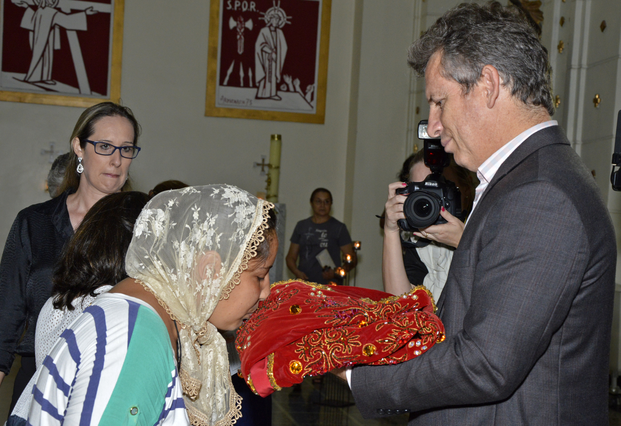“É um manto considerado milagroso, pois já atuou em diversas curas de fiéis. Entregando-o ao prefeito temos a esperança de que as chagas e sofrimentos da população sejam amenizados”, disse o padre.