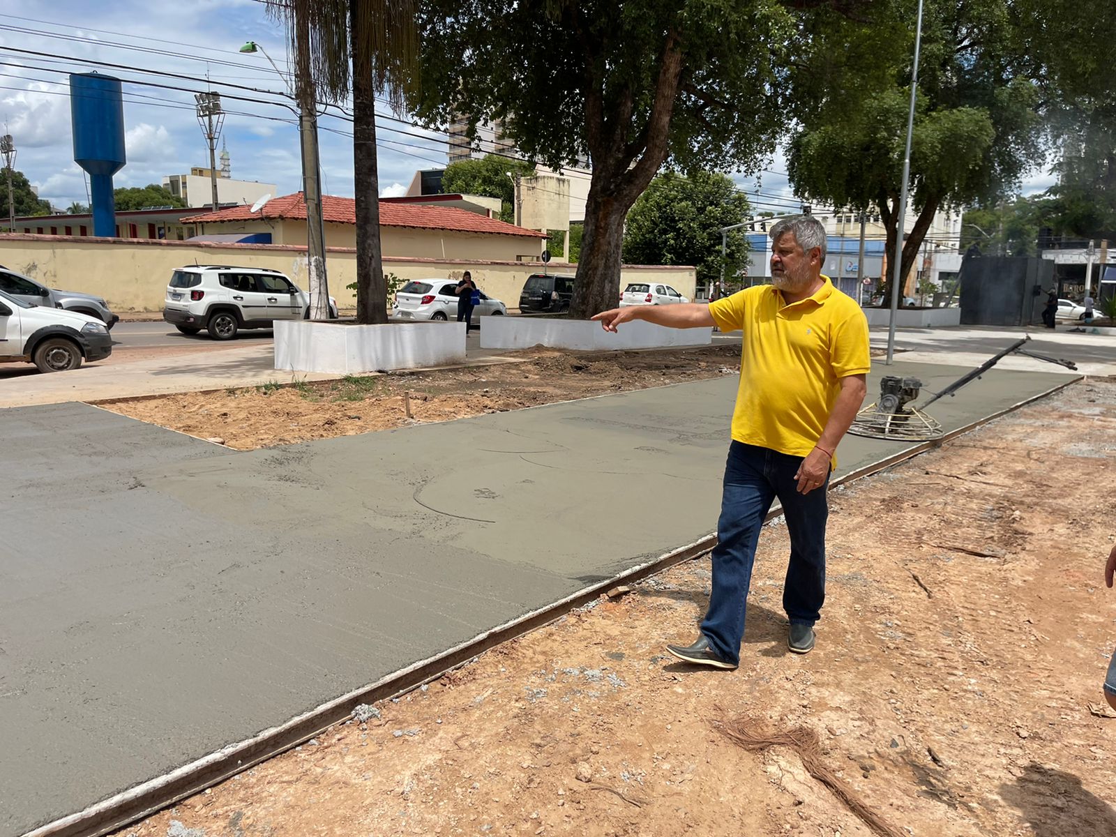Prefeito Stopa vistoria obras de reconstrução da Praça Santos Dumont em Cuiabá