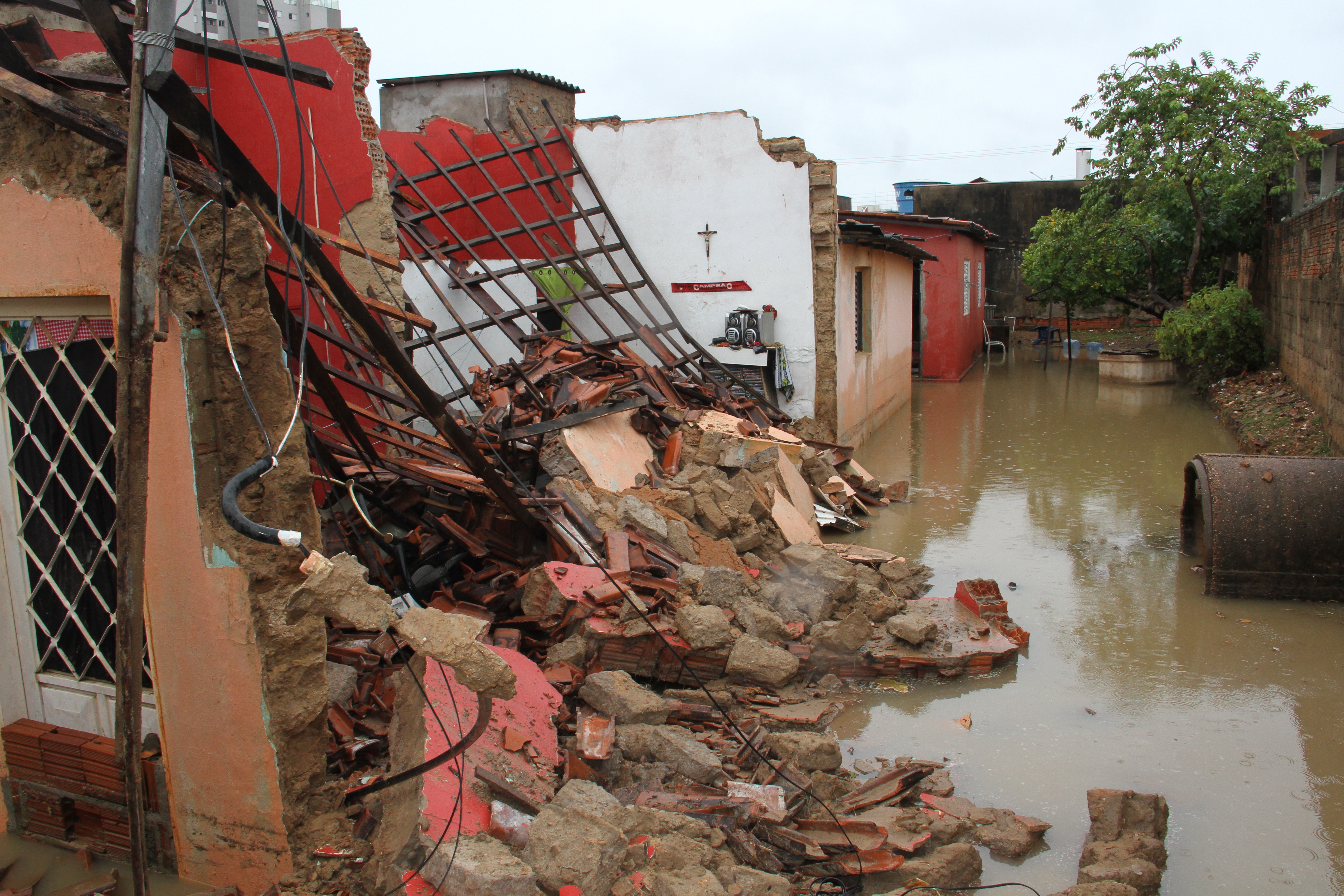 Cumprindo com suas atribuições de desenvolvimento de ações preventivas e assistenciais, no intuito de evitar ou minimizar consequências danosas oriundas de desastres naturais, a Prefeitura de Cuiabá atuou em duas situações resultantes do grande volume de chuva que caiu sobre a Capital na madrugada deste sábado (27). Em um trabalho em conjunto entre a Defesa Civil de Cuiabá e as secretarias municipais de Obras Públicas, Mobilidade Urbana, e Serviços Urbanos, a gestão do Município agiu de maneira rápida nos incidentes, ambos sem vítimas, acontecidos na Rua Rui Barbosa e em uma residência na Rua Cel. Benedito Leite, situadas no bairro Goiabeiras.
