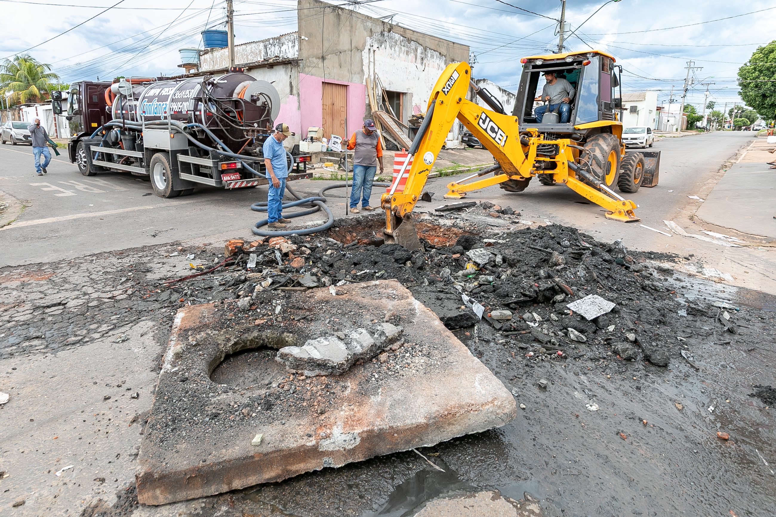 A Secretaria Municipal de Infraestrutura e Obras Públicas remanejou, em caráter de urgência, uma equipe técnica na manhã desta sexta-feira (16) para solucionar um problema de drenagem na Rua 14, no bairro Osmar Cabral. No local, a formação de um buraco na via ocasionou um sinistro de trânsito envolvendo um motociclista, que não conseguiu visualizar a situação a tempo de desviar.