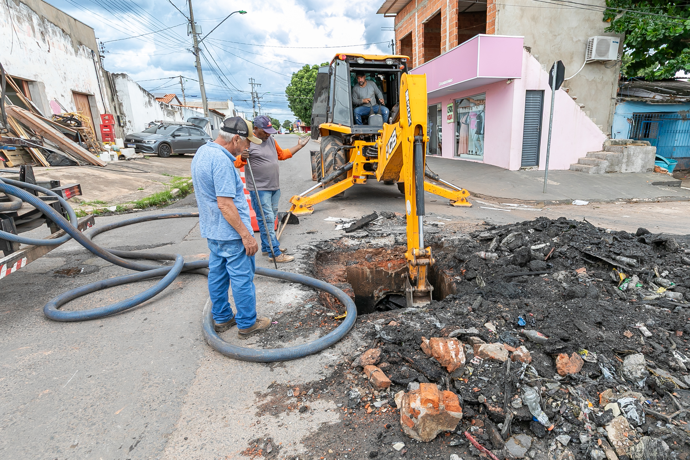 Para iniciar o serviço, foi necessário sugar toda a água, trabalho realizado com o apoio de um maquinário a jato. Depois, retirar o tampão da boca de lobo, além de cortar o asfalto. Após a conclusão da limpeza, o tampão é recolocado. A etapa de refazer o asfalto danificado ficará para o início da próxima semana, uma vez que, em um único dia, não há tempo hábil, em se tratando de obra de maior porte.