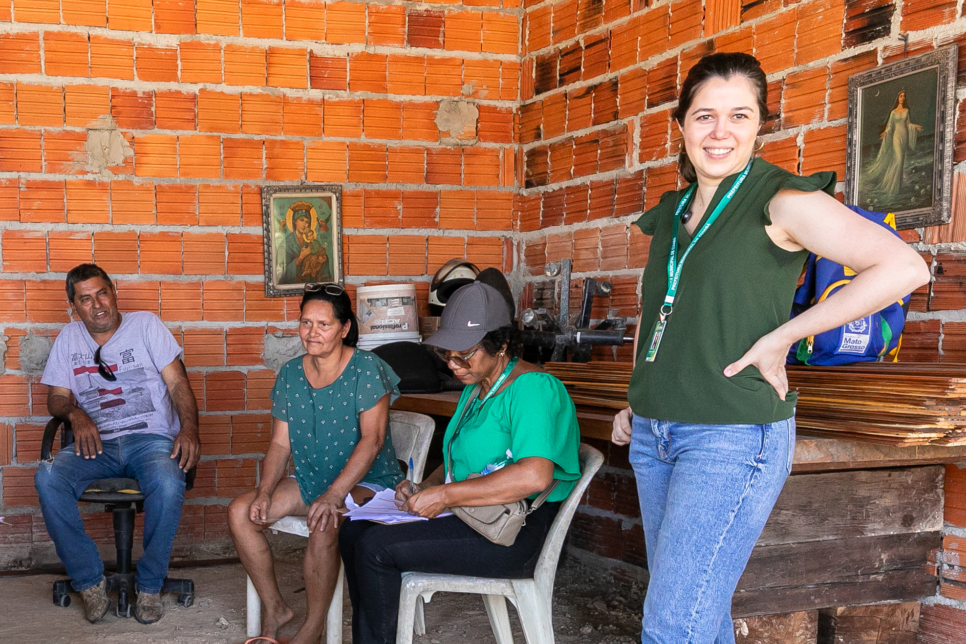 A imagem mostra servidores municipais em ação na atualização do cadastro de famílias do Contorno Leste.