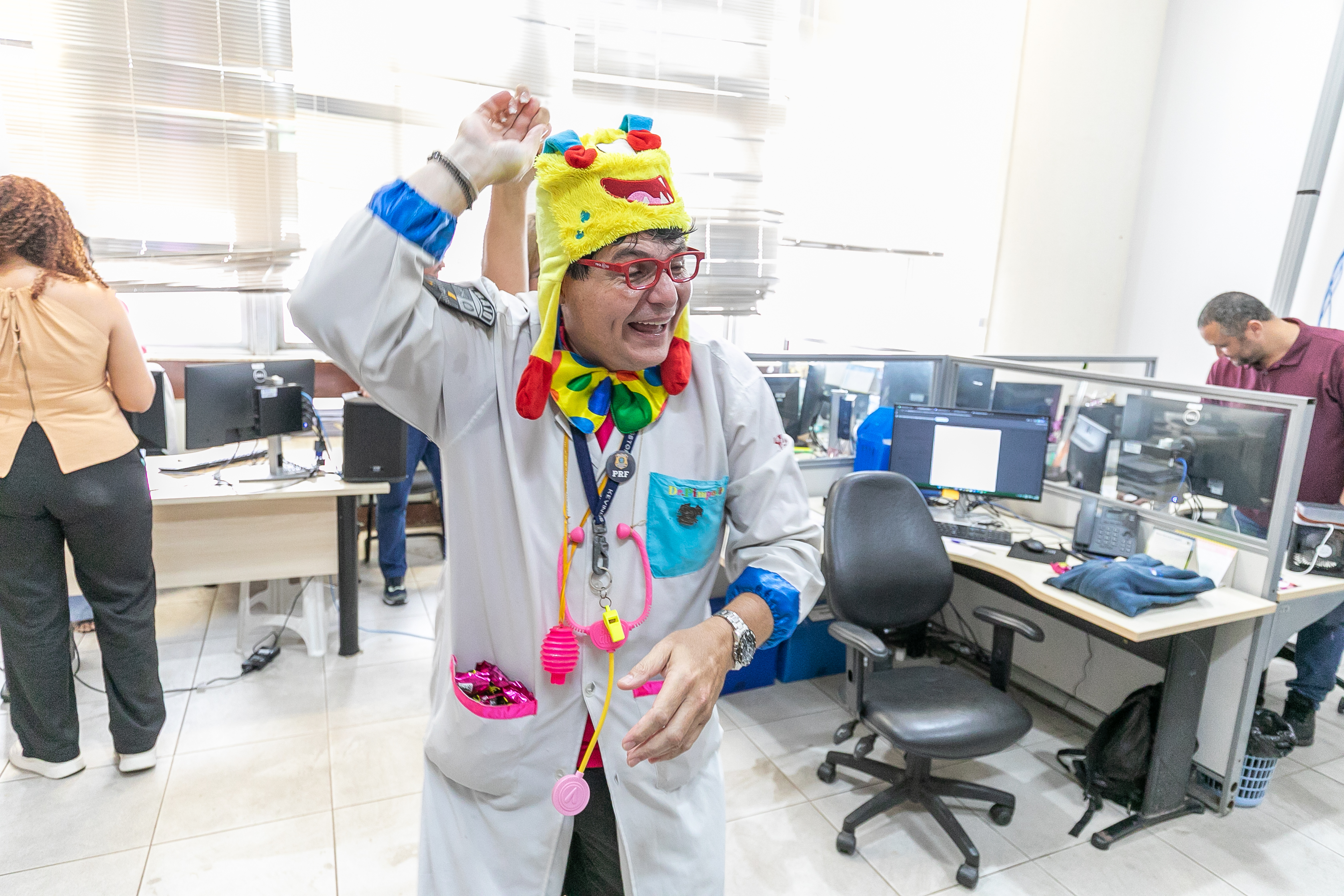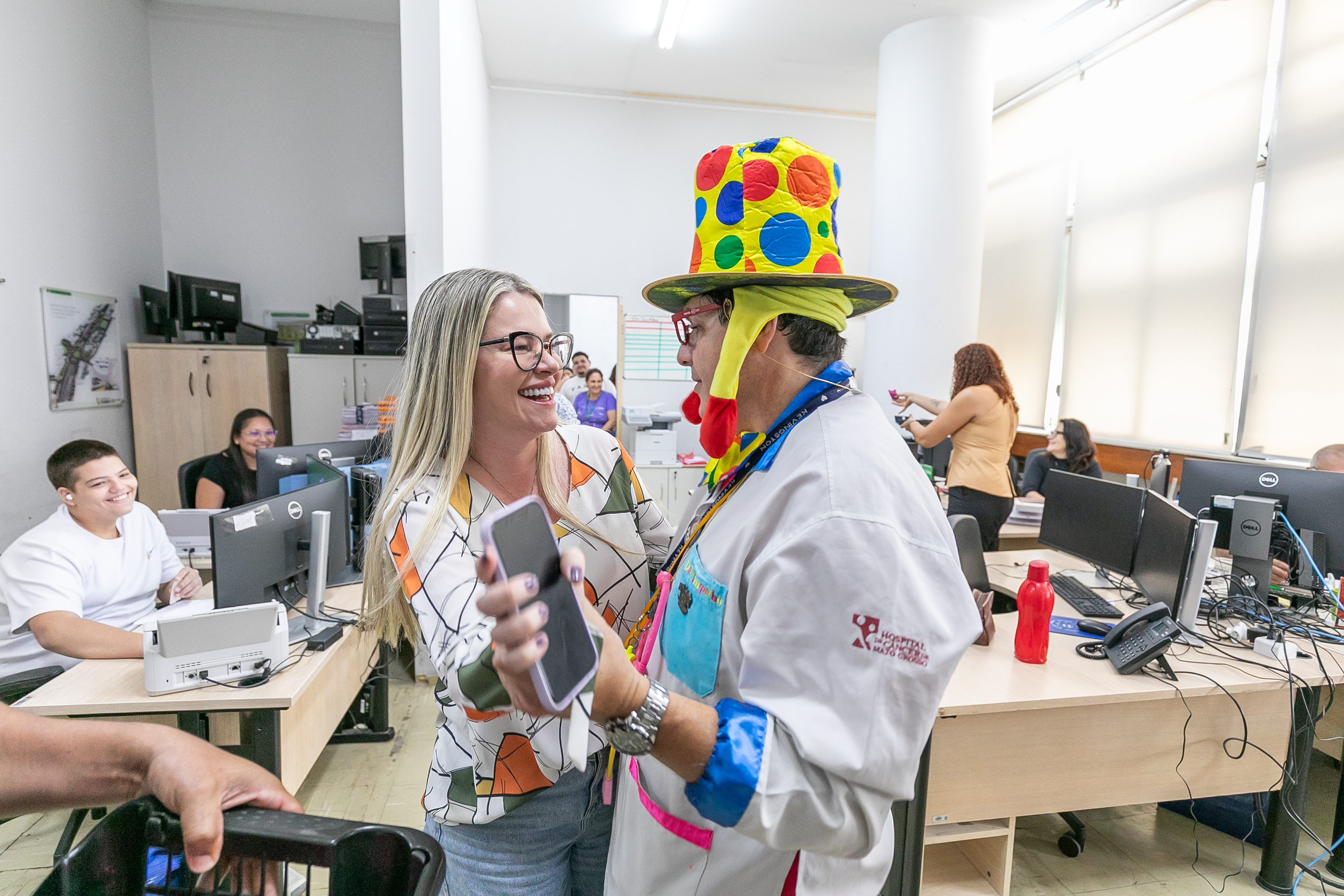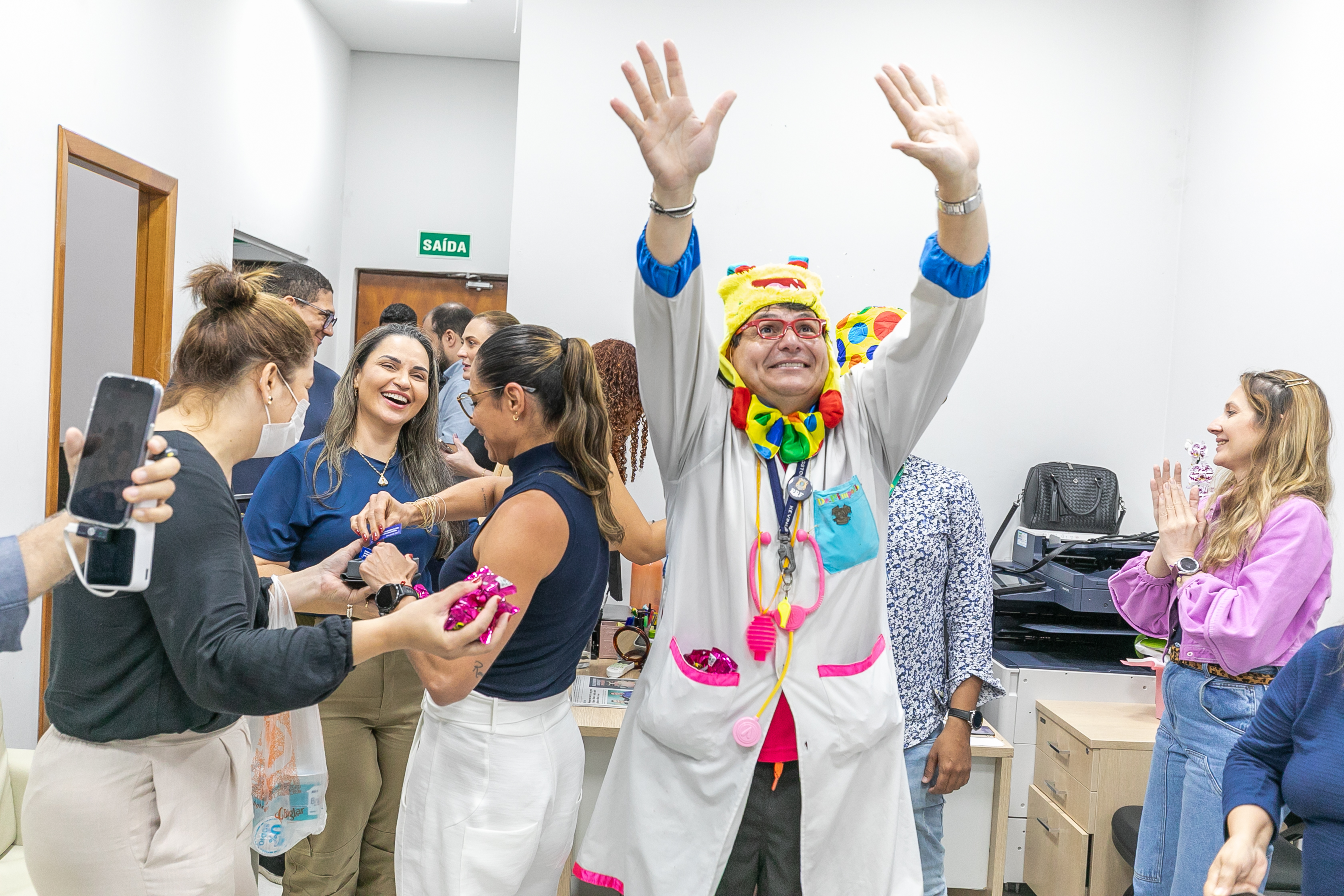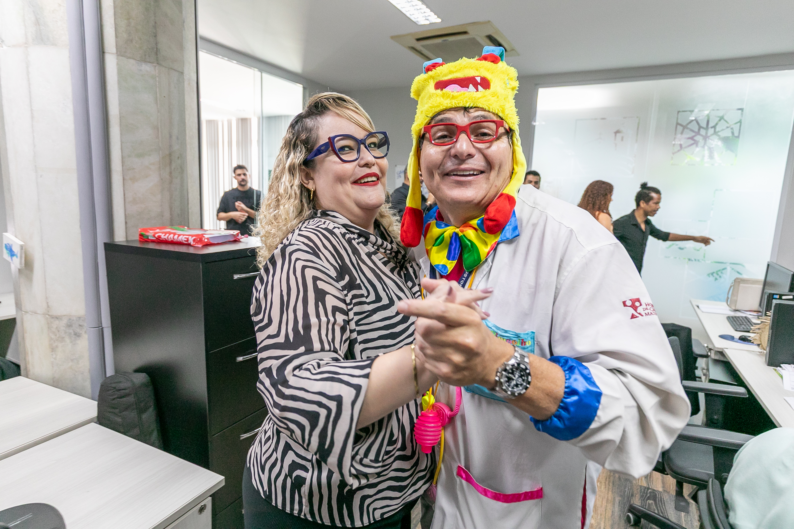 “Muitas vezes as dificuldades do trabalho e os dias tensos sobrecarregam. Hoje é um dia diferente, de comemoração, mas a mensagem não muda: a gente tem que manter a união entre os colegas para que o resultado dê certo. Para mim, está sendo uma grande experiência fazer o que gosto, que é levar alegria às pessoas. Eu nunca tinha entrado na Prefeitura de Cuiabá e hoje estou peregrinando por todos os andares”, declarou Pimpolho.