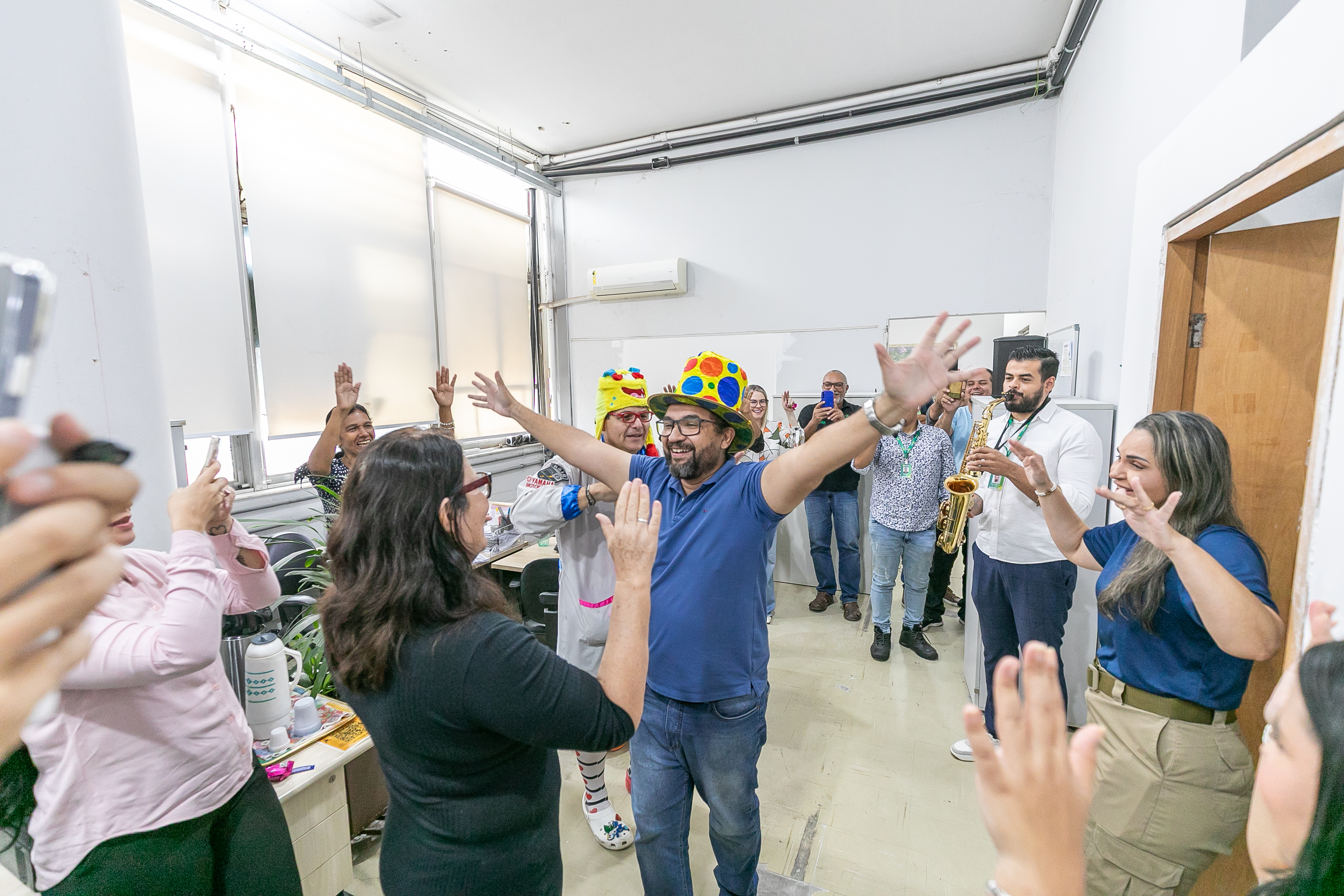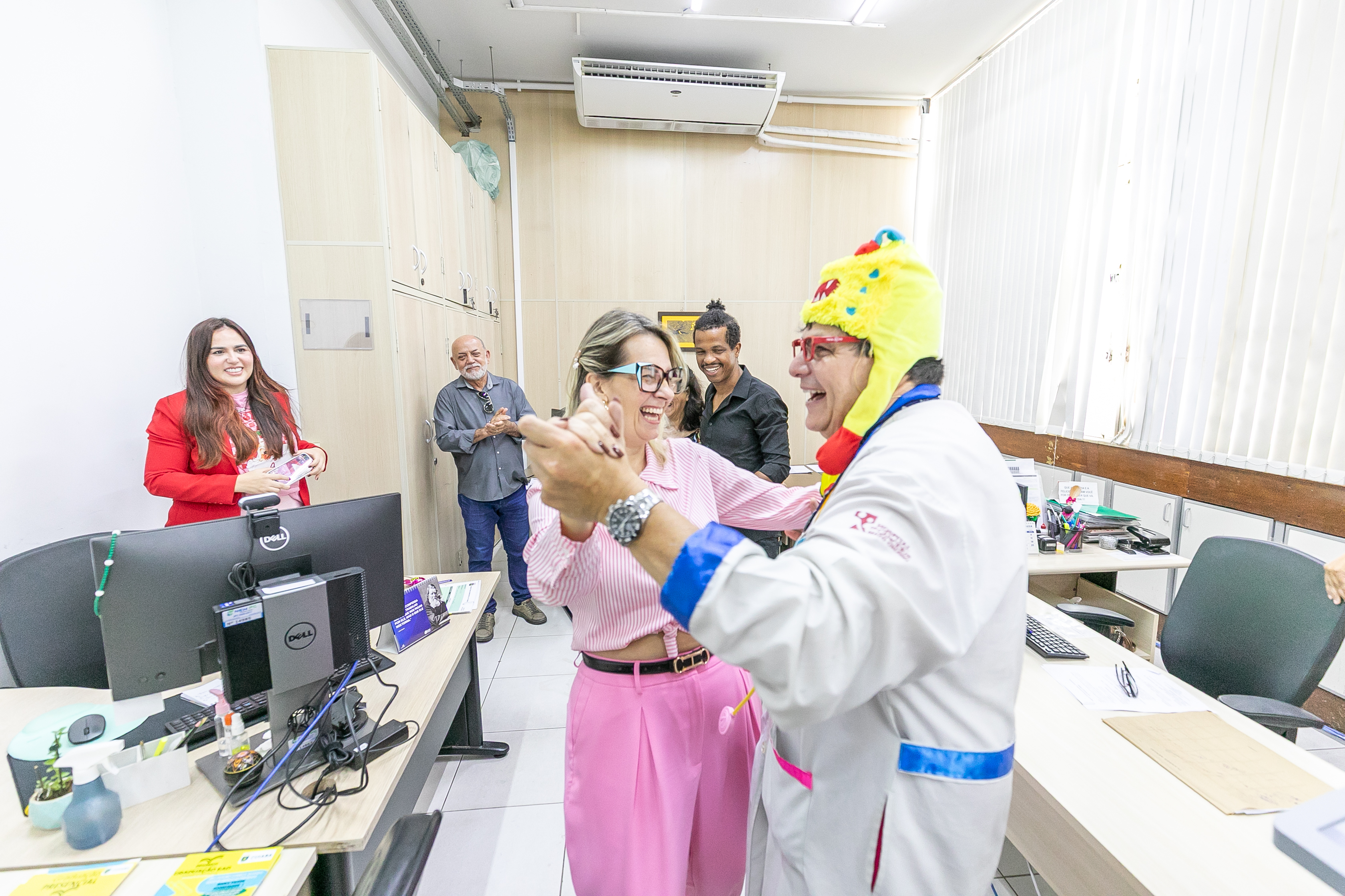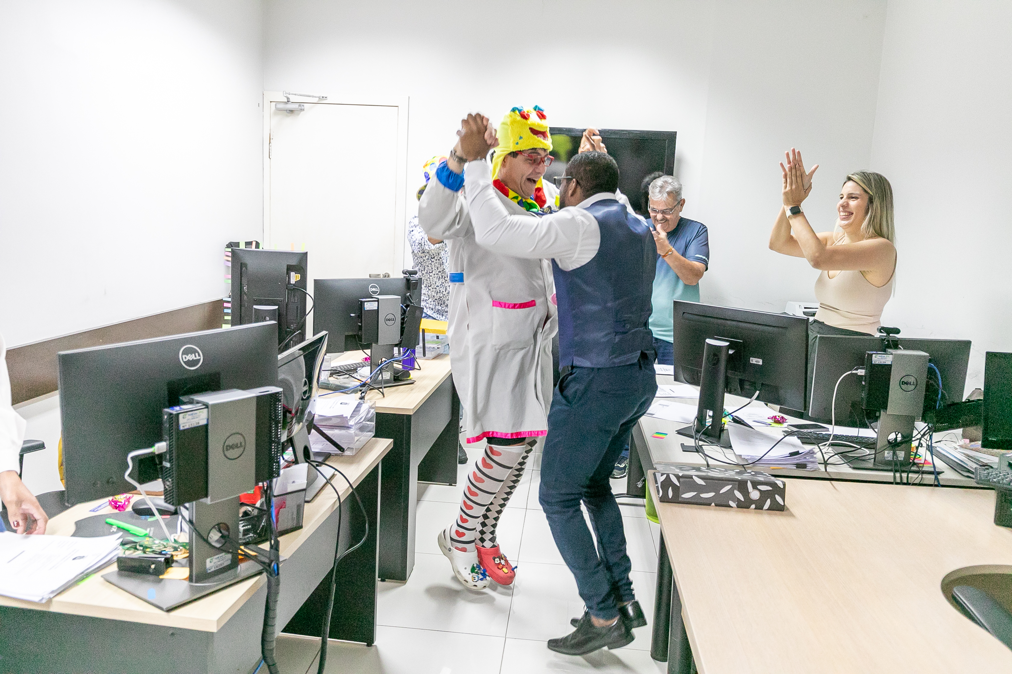 Durante a ação, os servidores participaram de atividades de integração e descontração com o palhaço Pimpolho, reconhecido pelo trabalho social que realiza junto ao Hospital de Câncer de Cuiabá; o professor de dança de salão da academia Criart, Edevaldo Pedroso de Souza; e o saxofonista Dagnel Renner Enoré Silva, servidor da Secretaria Municipal de Assistência Social, Direitos Humanos e Inclusão.