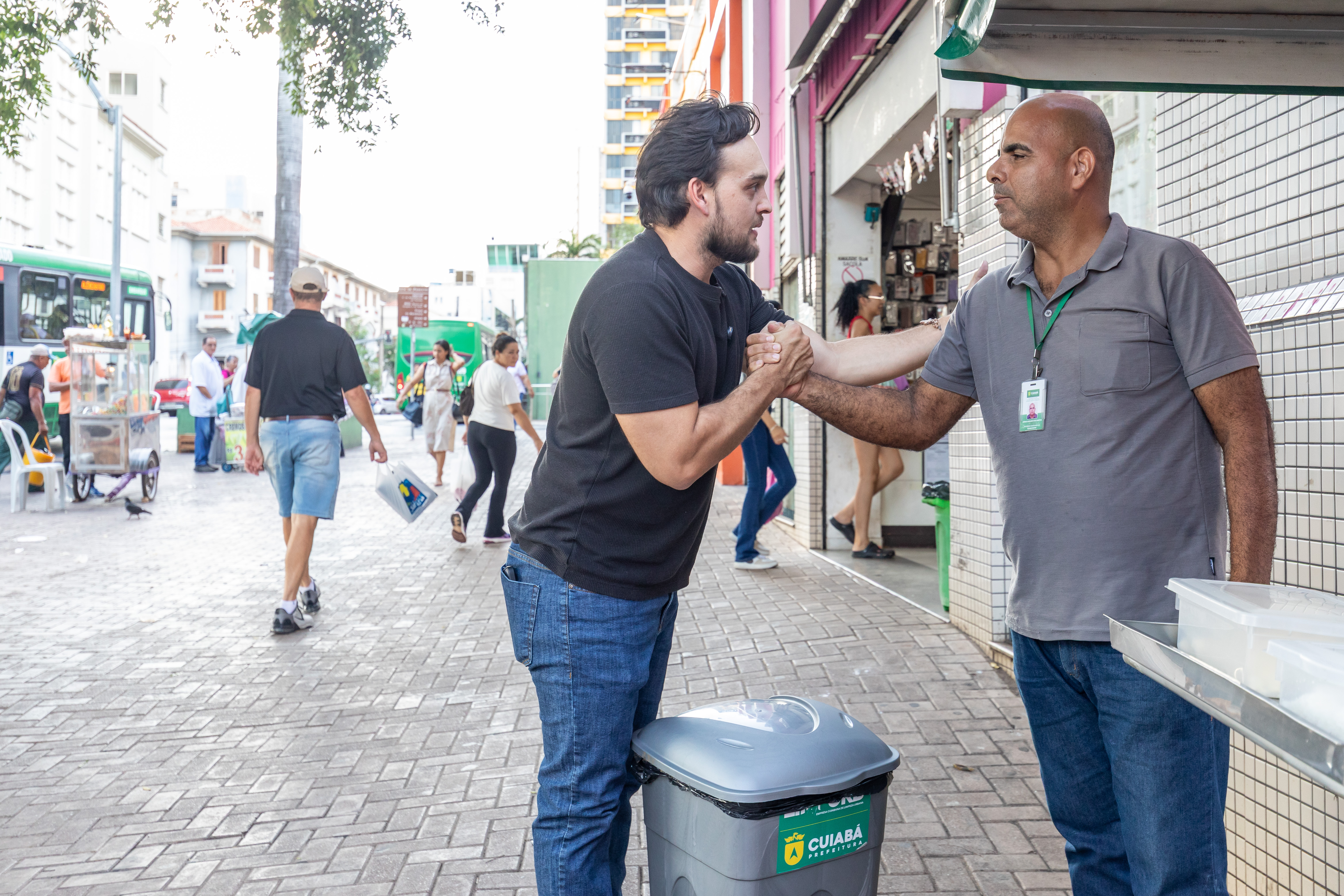 A Prefeitura de Cuiabá, por meio da Empresa Cuiabana de Zeladoria e Serviços Urbanos (Limpurb), realizou nesta segunda-feira (10) a entrega de 250 lixeiras de 60 litros a comerciantes e vendedores ambulantes que atuam no Centro Histórico da capital.