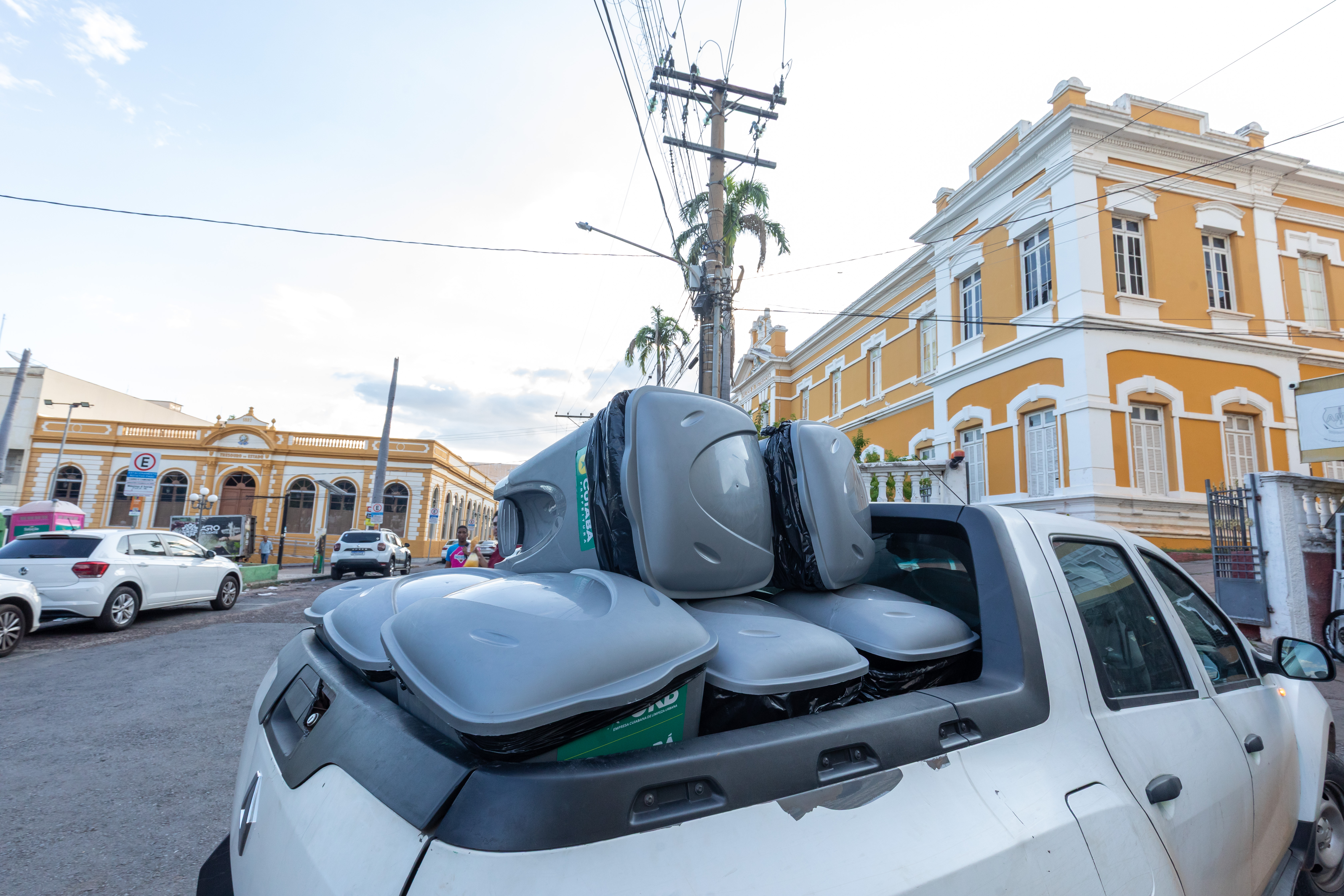 Prefeitura de Cuiabá entrega 250 lixeiras para comerciantes e ambulantes do Centro Histórico