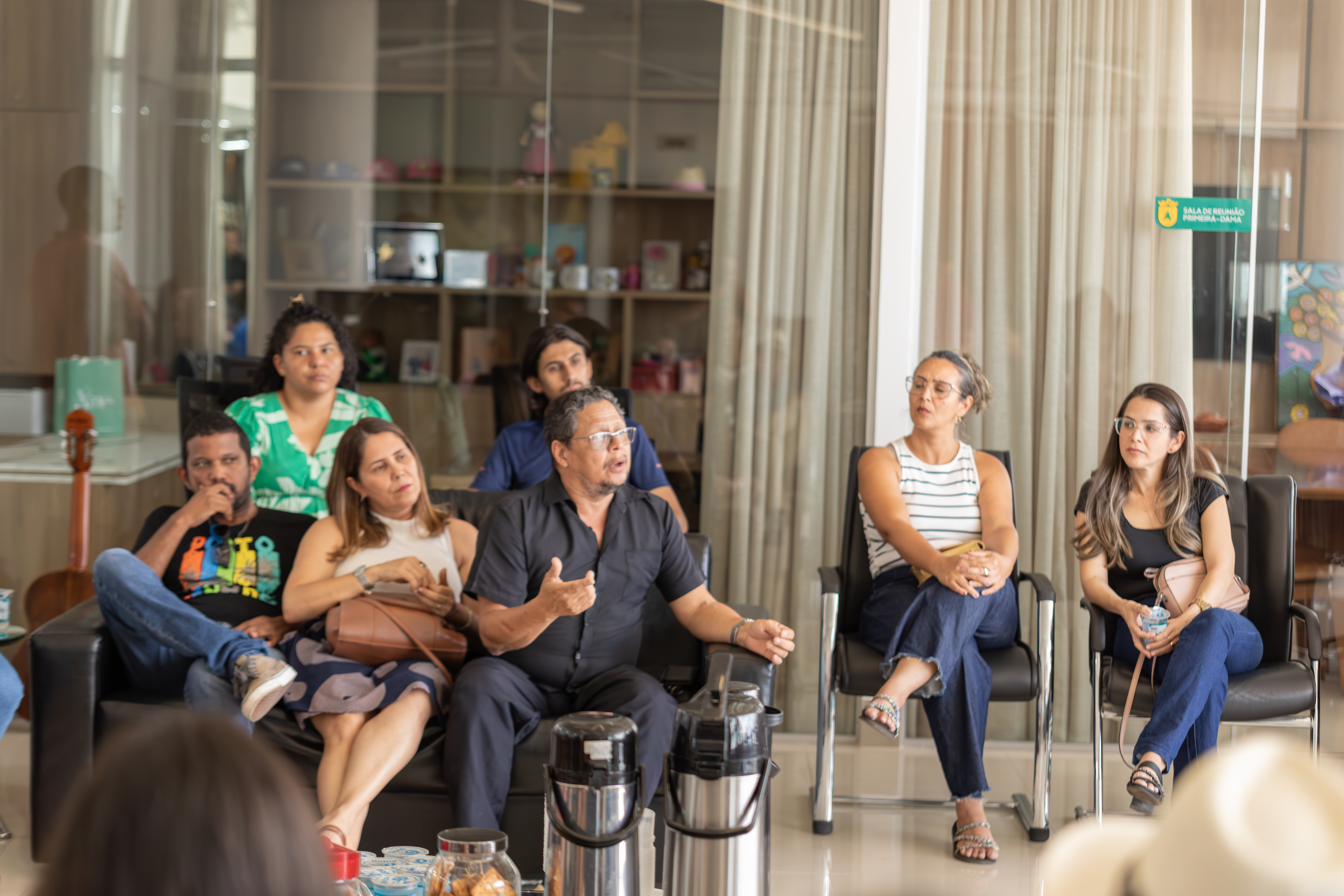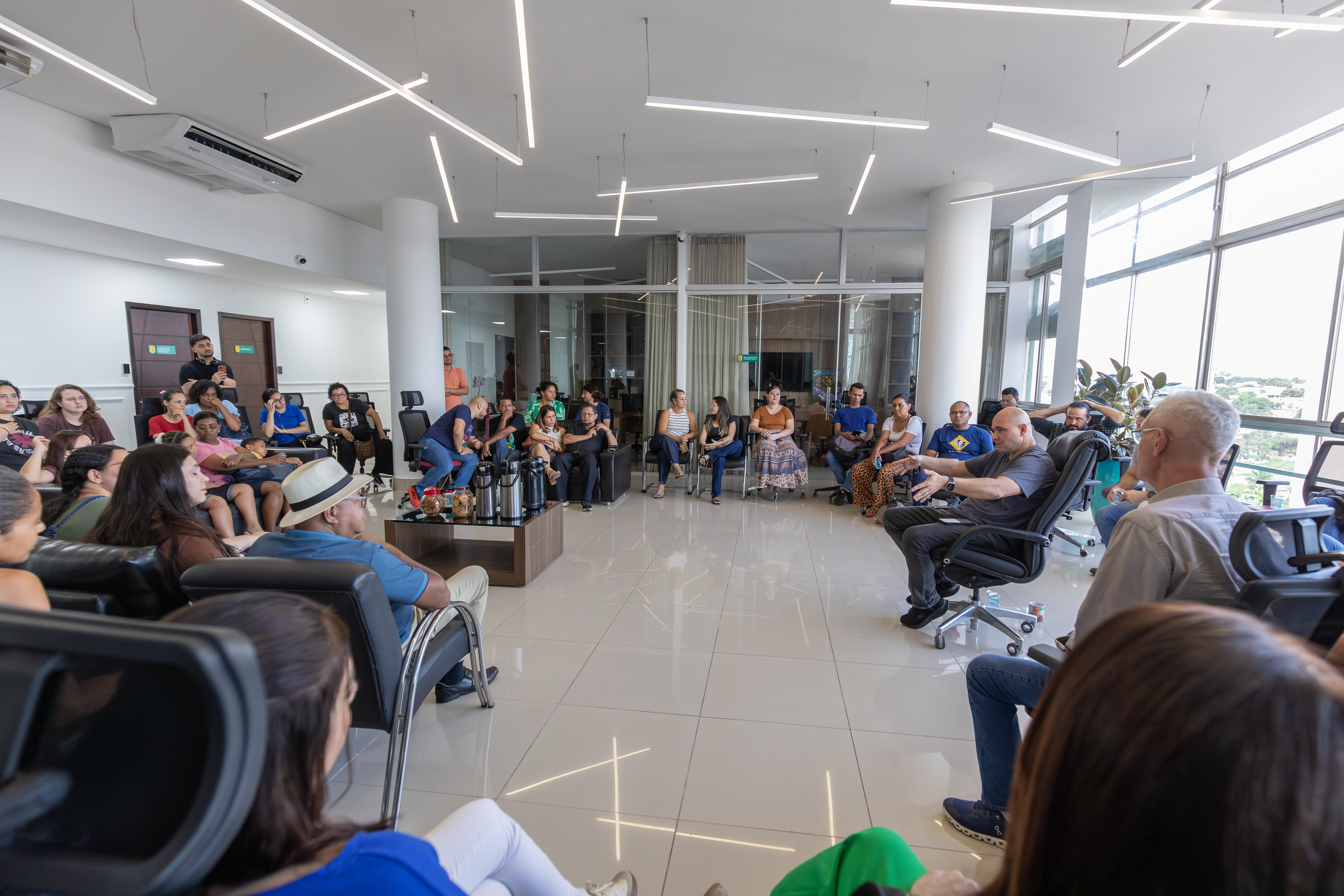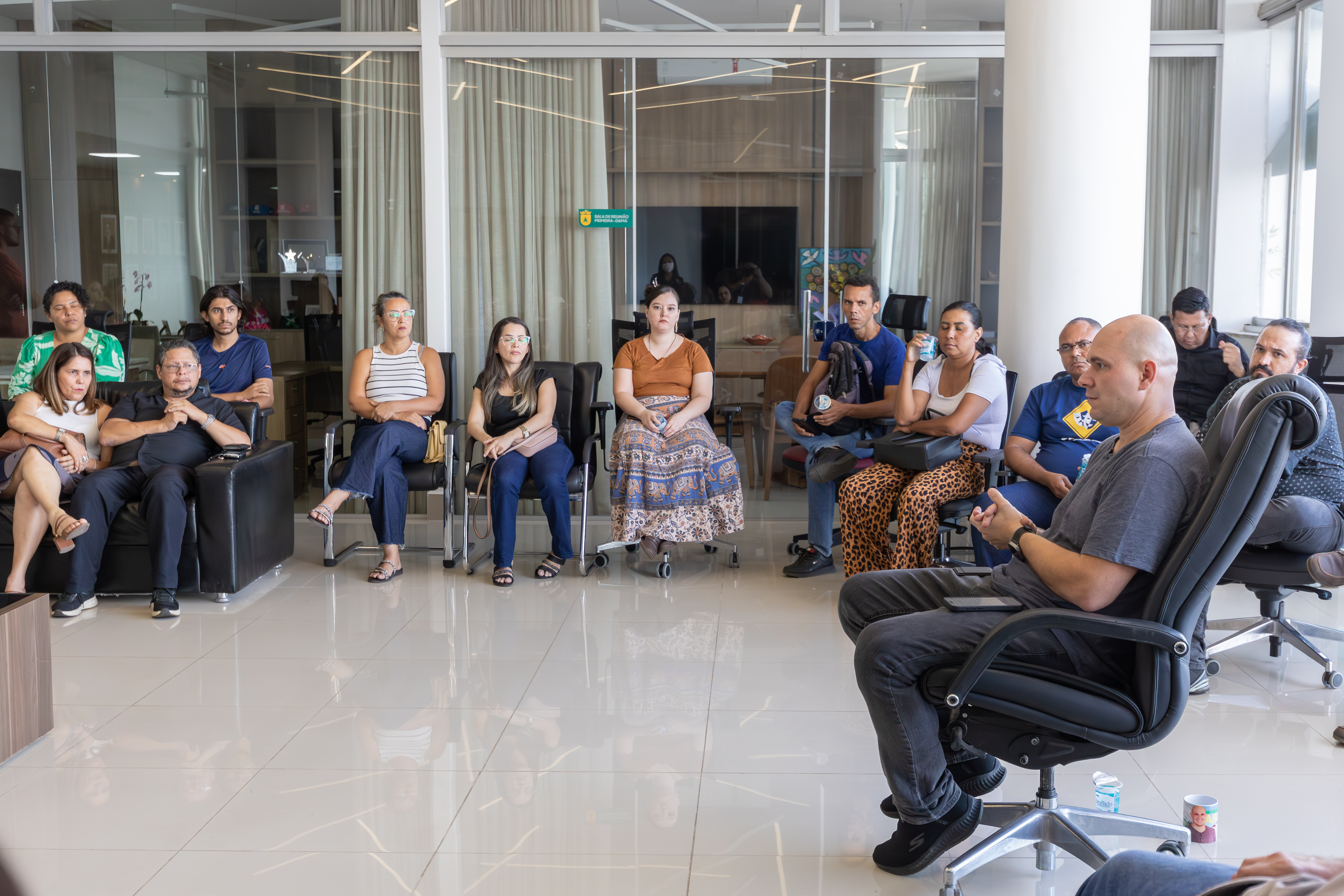 Participaram da reunião o vereador Mário Nadaf, a secretária de Comunicação, Ana Karla, a presidente do Sintep de Cuiabá, Marivone Pereira, e sua equipe, que somavam quase 50 professores da rede municipal.