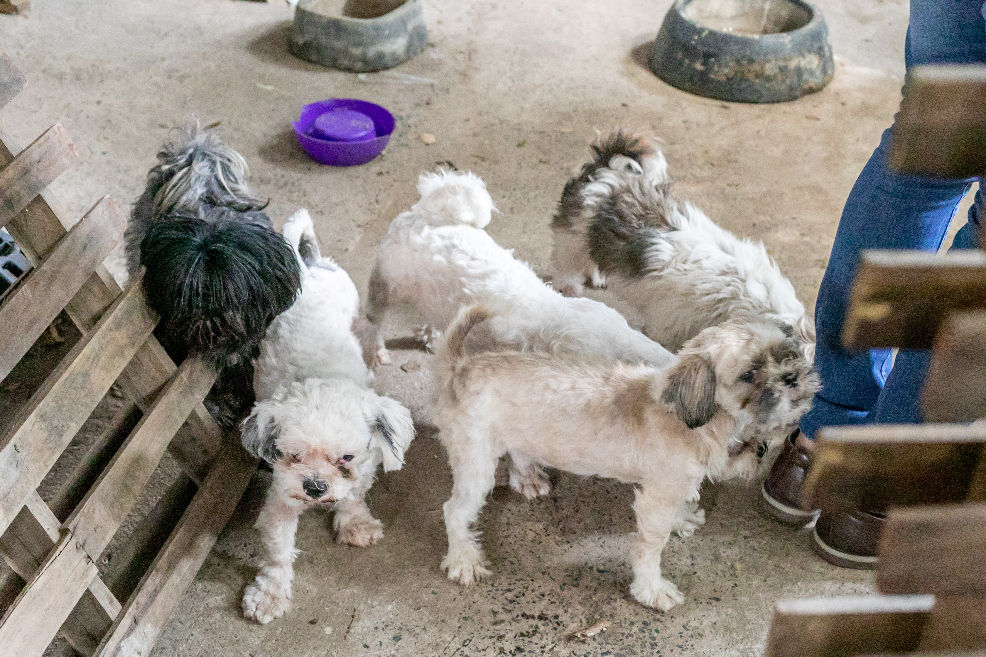 Os animais, de várias raças como Shih Tzu, Spitz Alemão e Pinscher, entre outras, estavam confinados em espaços pequenos, sem ventilação adequada e sem manejo sanitário. Também foram encontrados hamsters em um viveiro irregular. Muitos apresentavam sinais de doença e debilidade física.