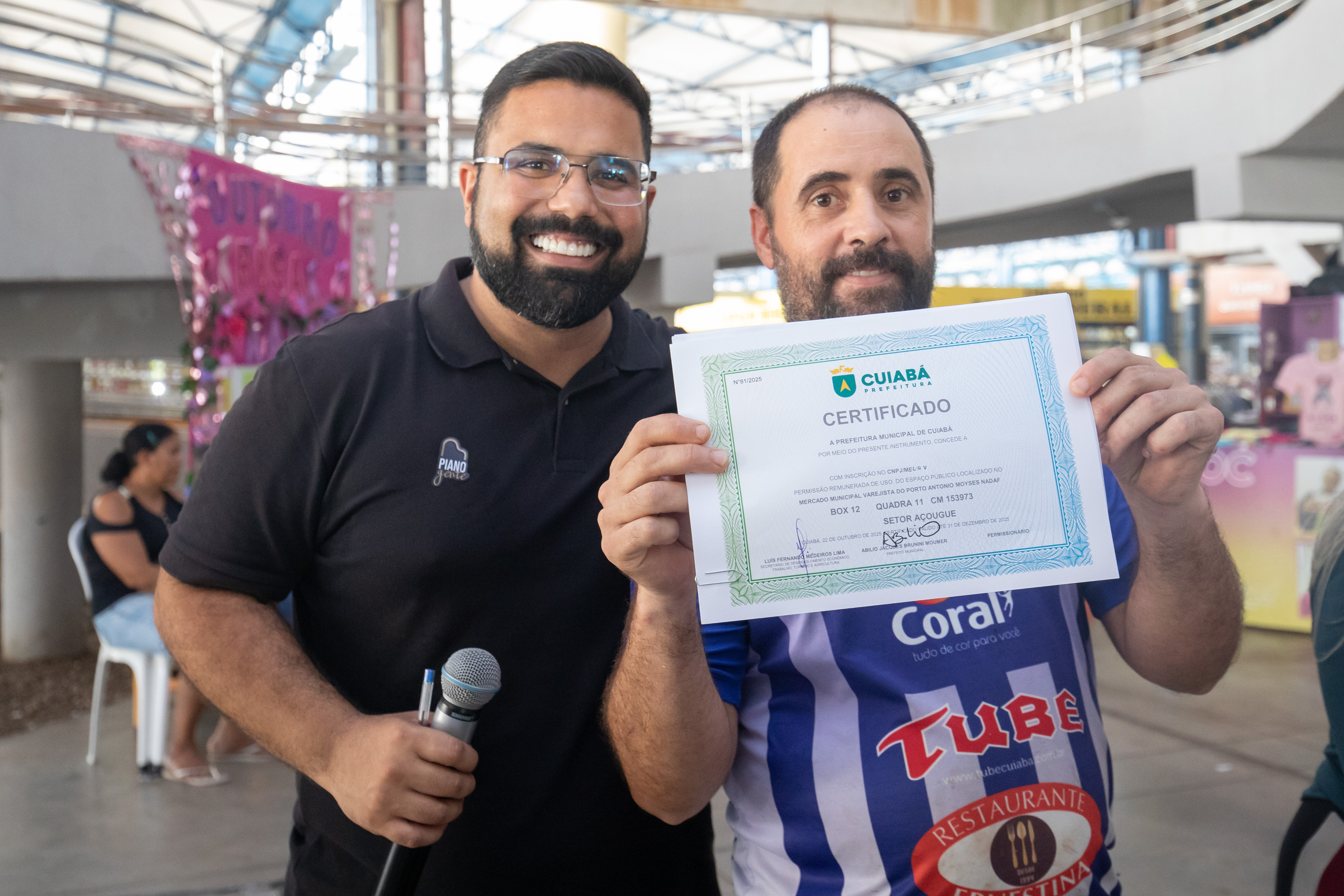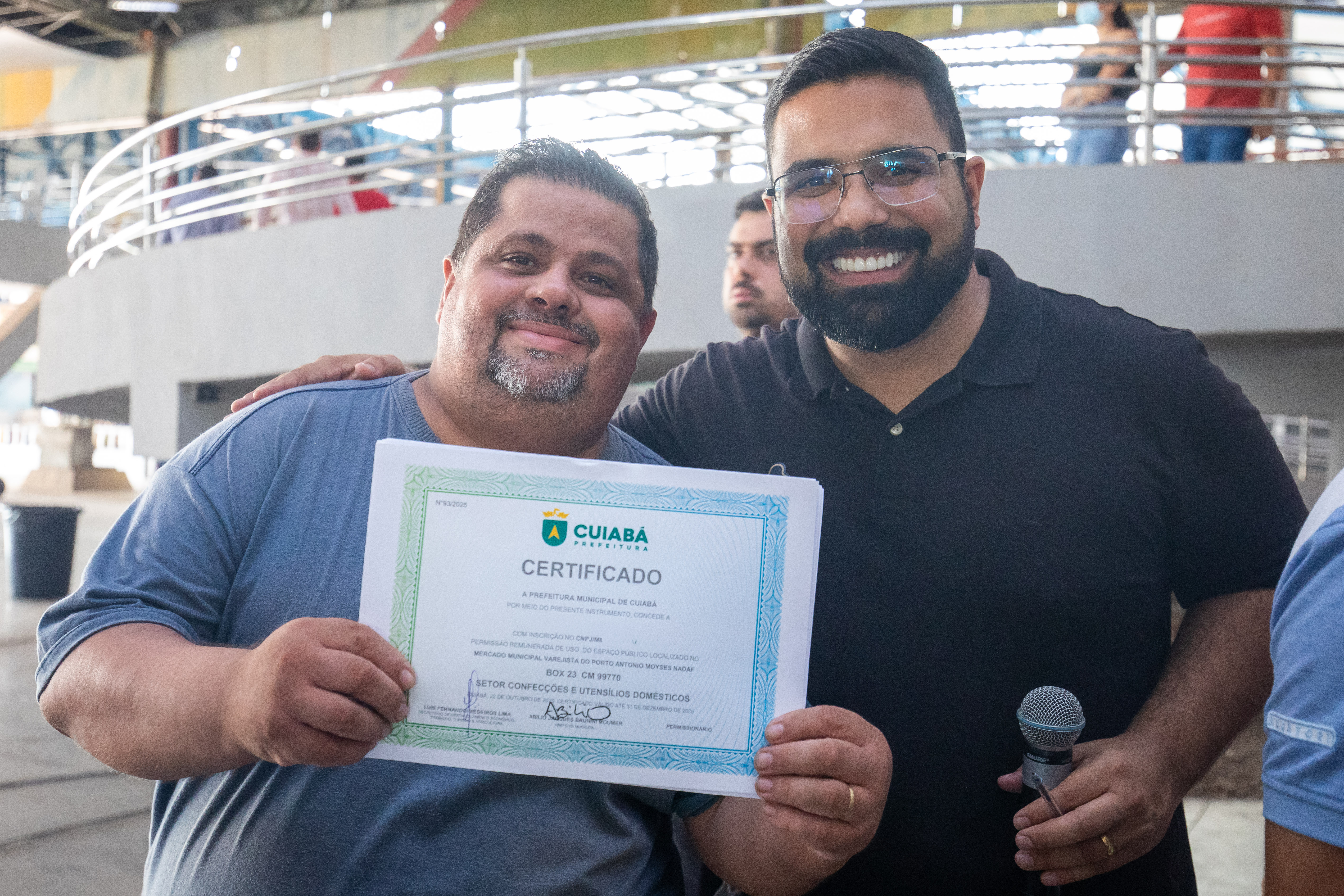 A manhã desta terça-feira (21) foi de celebração no Mercado do Porto, um dos principais polos de comércio e tradição de Cuiabá. A Prefeitura Municipal, por meio da Secretaria de Desenvolvimento Econômico, Trabalho, Turismo e Agricultura, entregou 142 Termos de Permissão de Uso (TPUs) a permissionários que atuam no local, assegurando regularização, segurança jurídica e novas perspectivas de investimento para quem vive e faz a economia girar no coração da capital.