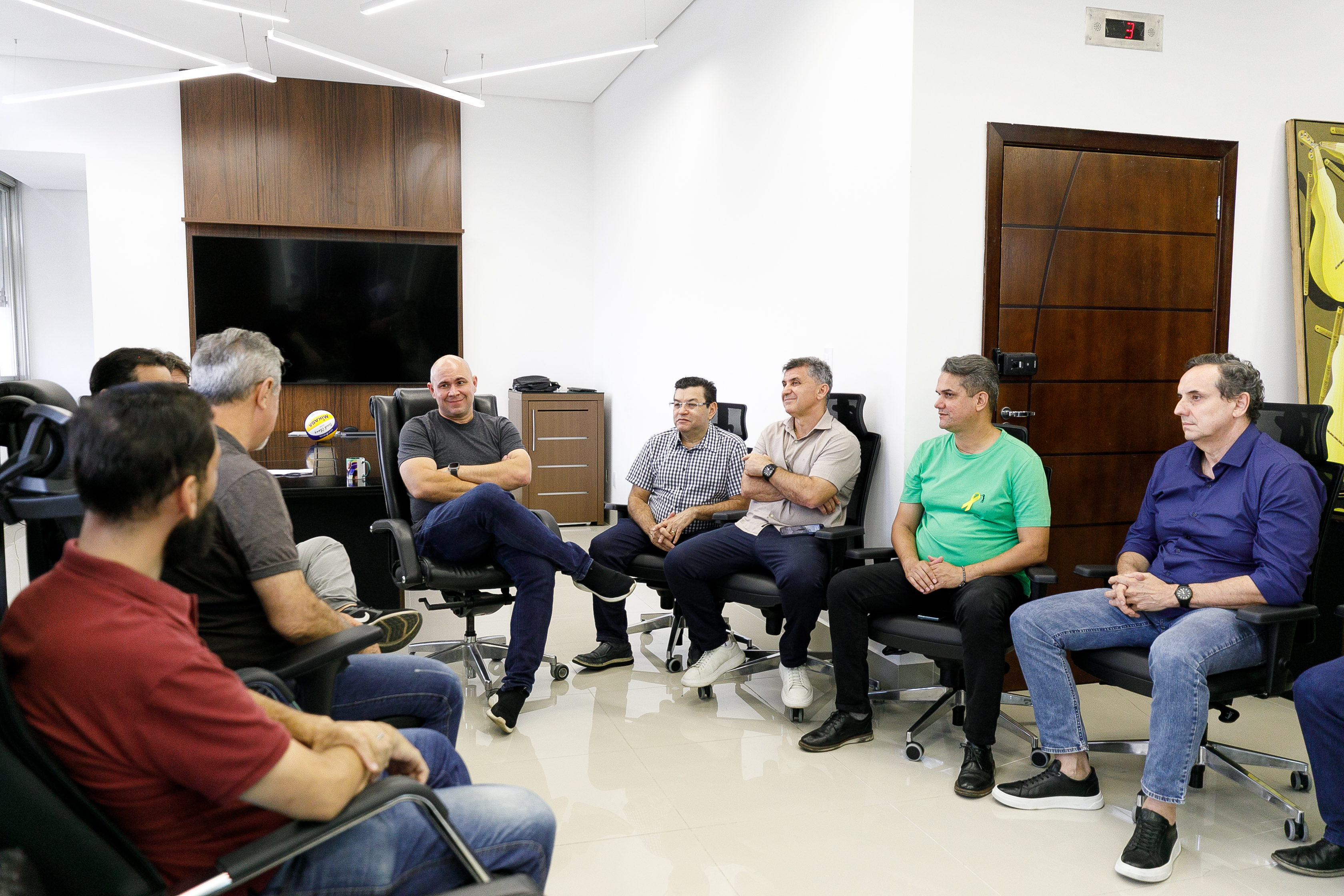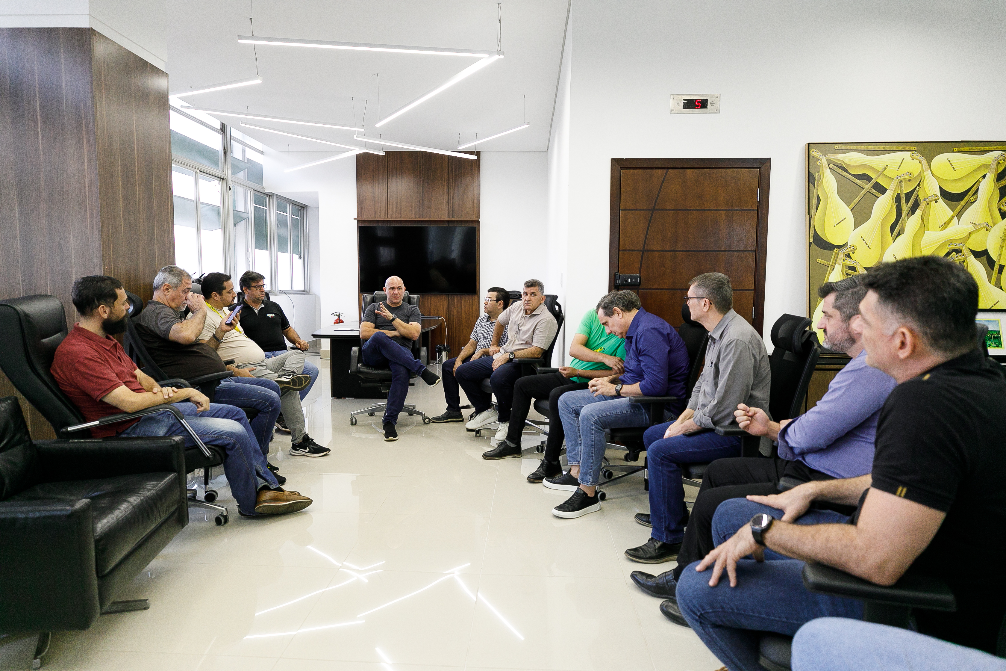A foto mostra momentos da reunião liderada pelo prefeito Abilio Brunini com os representantes da CDL, na Prefeitura de Cuiabá.