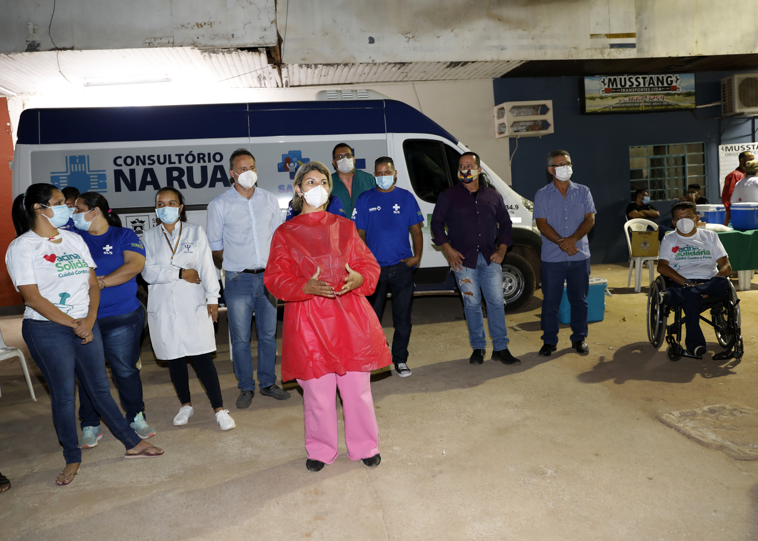 Com foco na imunização contra H1N1 e encaminhamento para atendimento por especialidades, a equipe do Consultório na rua, comandada pela coordenadora Vera Ferreira, se dedicava a dar orientações para atendimentos em unidades de saúde e tirar dúvidas quanto aos cuidados contra a propagação da COVID-19 durante atuação de trabalho. Enquanto isso, Roseli Barranco, coordenadora de saúde bucal de Cuiabá e sua equipe de jalecos rosas orientavam o grupo sobre cuidados para prevenir o câncer de boca dentre outras doenças orais.