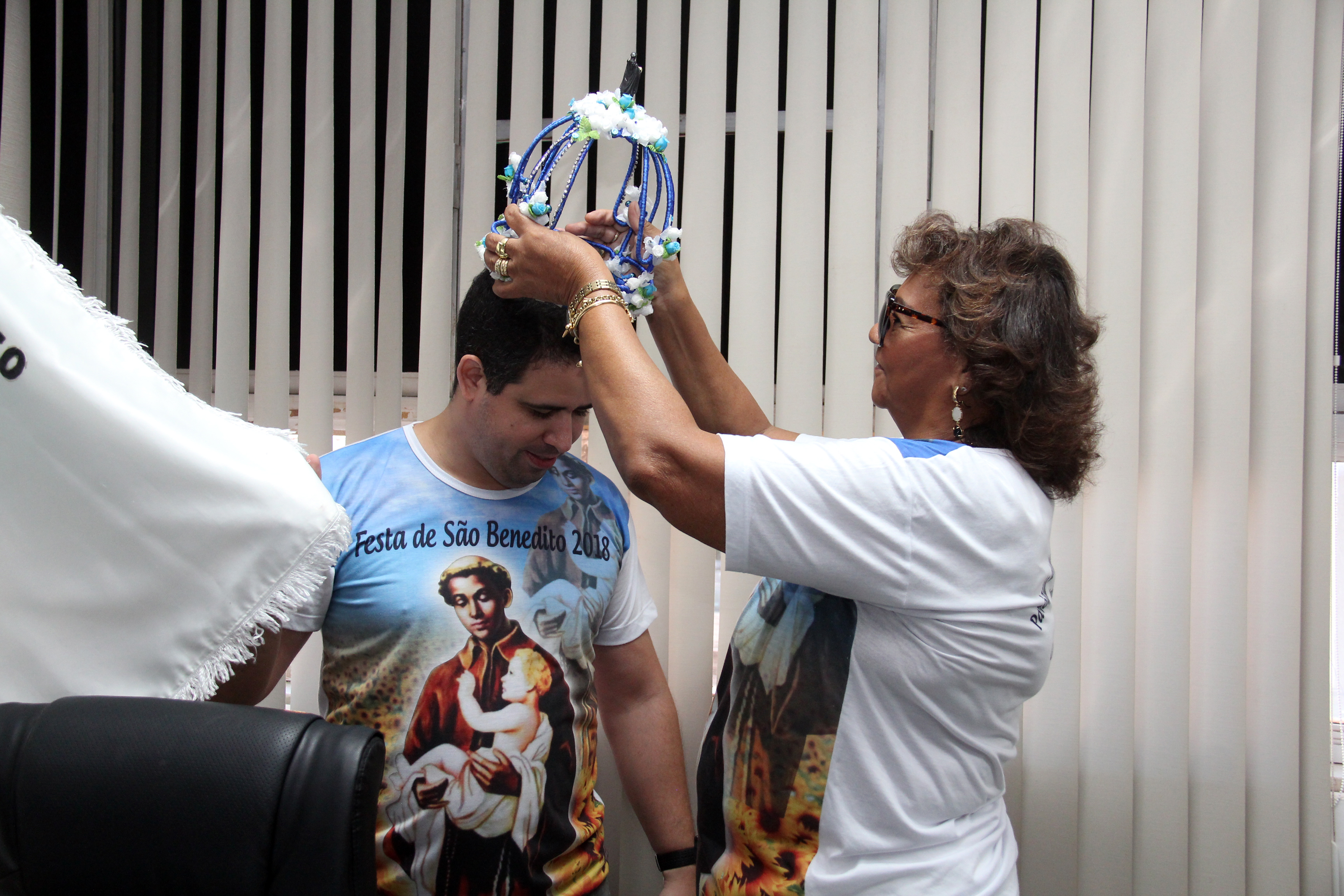 Ao som da tradicional banda da festa de São Benedito o rei e a rainha Cecília Fortes, juntamente com os festeiros de São Benedito 2018, percorreram as dependências do Palácio Alencastro, sendo recebidos com muita devoção pelos servidores públicos municipais. Em cada andar muita música e oração coroadas pelo rei e pela rainha, durante todo o trajeto percorrido pelos festeiros.