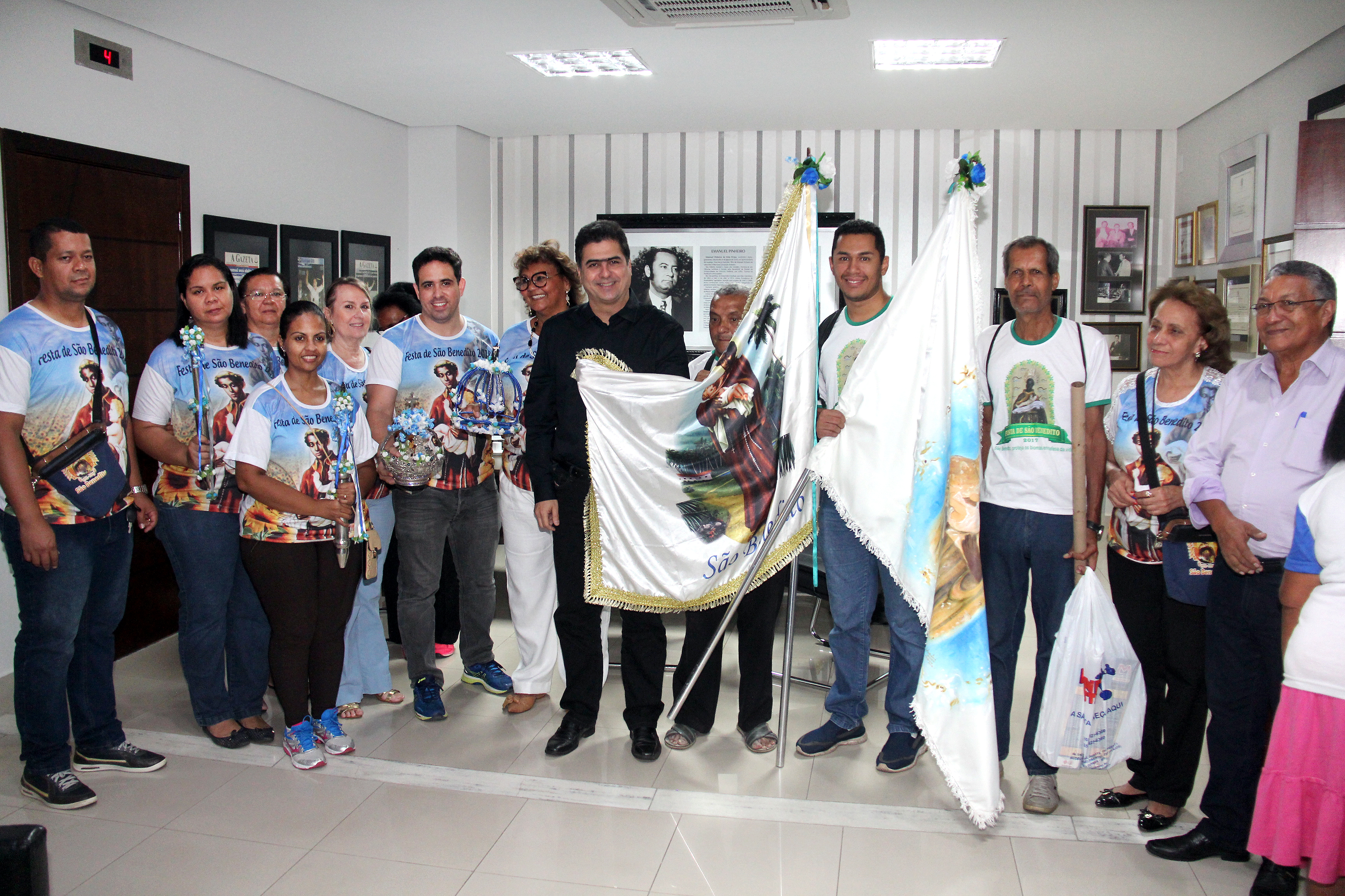 O prefeito Emanuel Pinheiro recebeu nesta terça-feira (15), no terraço do Palácio Alencastro, uma comissão dos festeiros de São Benedito, no qual o vice-prefeito Niuan Ribeiro é o rei da festa deste ano.