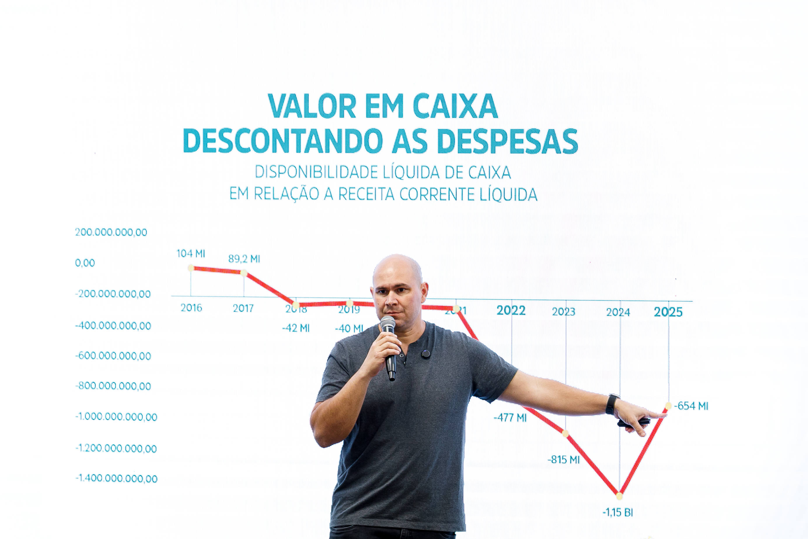 Apesar das ações positivas, a atual gestão teve que enfrentar um cenário financeiro crítico deixado pela administração anterior. Ao assumir, encontrou um passivo de R$ 2,4 bilhões em dívidas, sendo R$ 775 milhões em precatórios e R$ 512 milhões ainda em fase de negociação. O déficit orçamentário herdado foi de R$ 1,15 bilhão. Também chamou a atenção o rombo de R$ 110 milhões referentes à gratuidade do passe livre estudantil, que não estava previsto na Lei Orçamentária Anual (LOA), além de R$ 50 milhões de valores de empréstimos consignados que foram descontados dos servidores, mas não repassados aos bancos. Esses passivos colocaram a gestão diante de um desafio imediato de saneamento fiscal, sem paralisar os serviços essenciais à população.