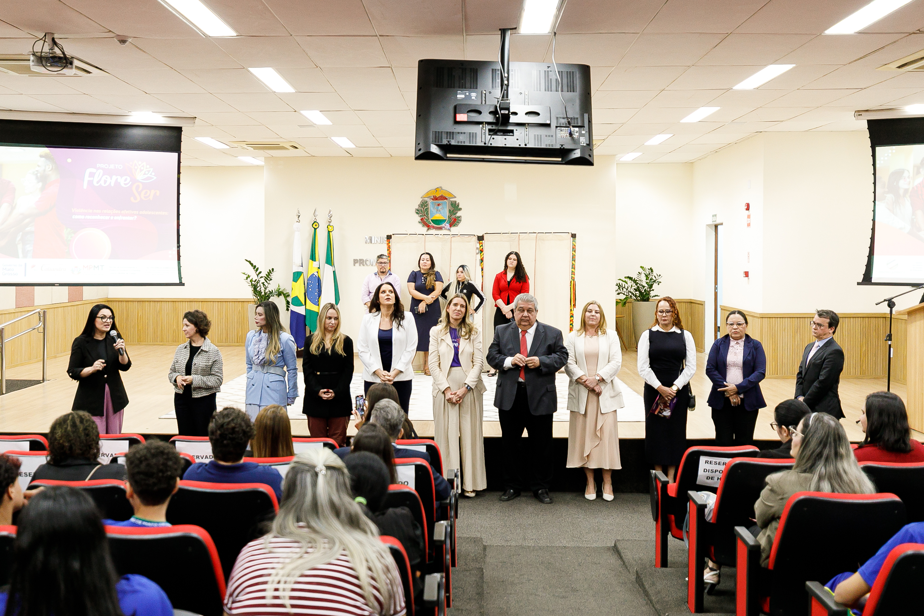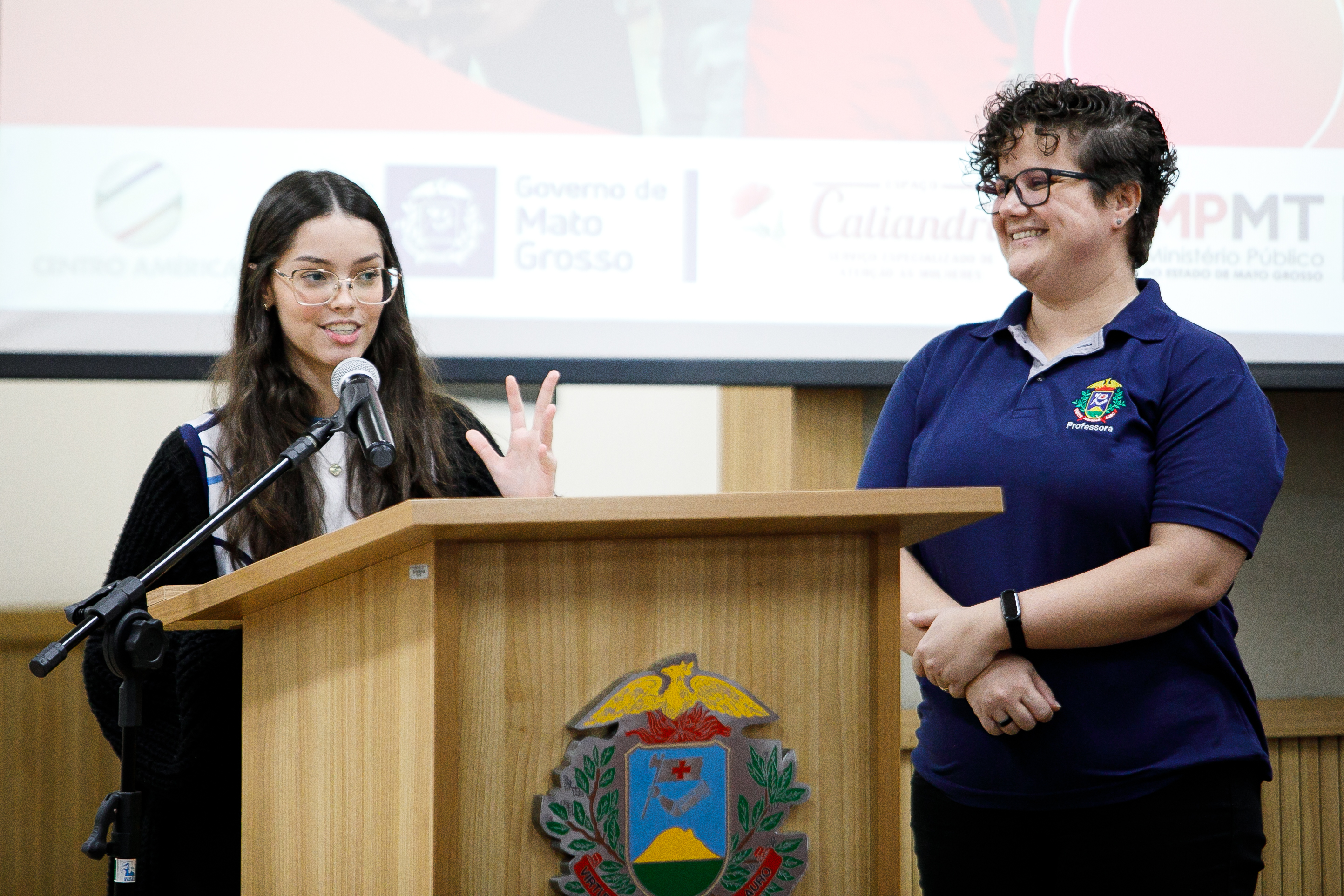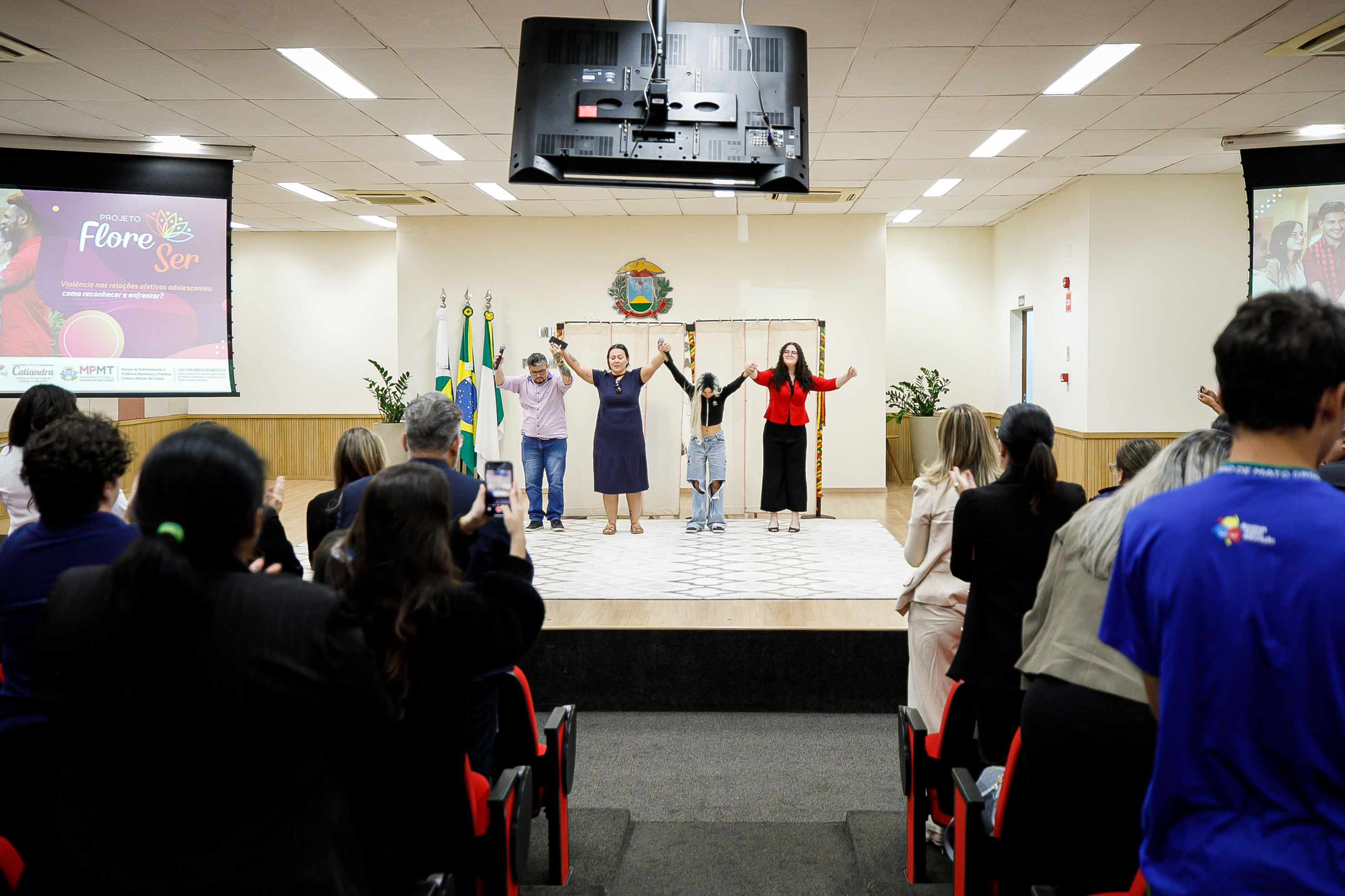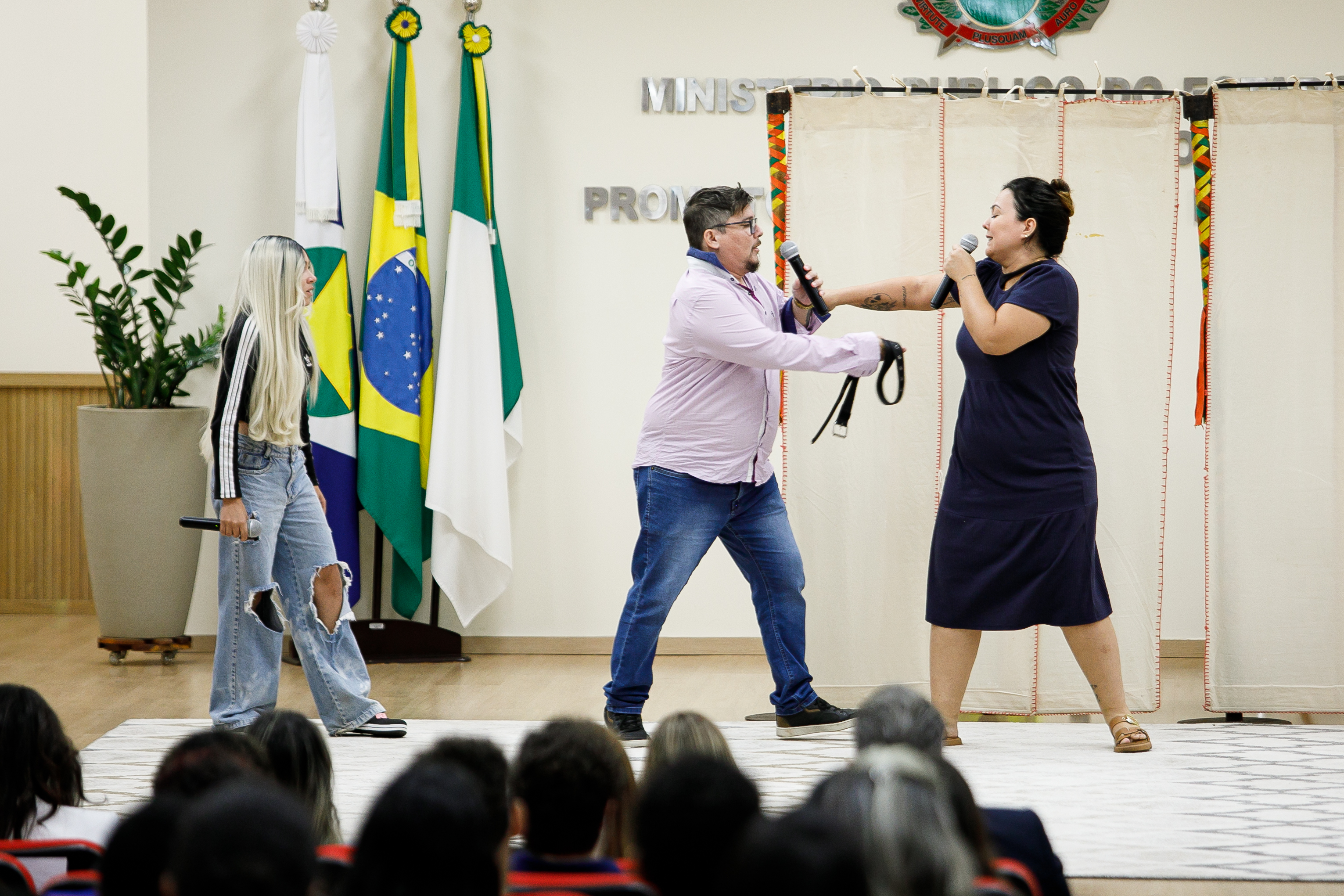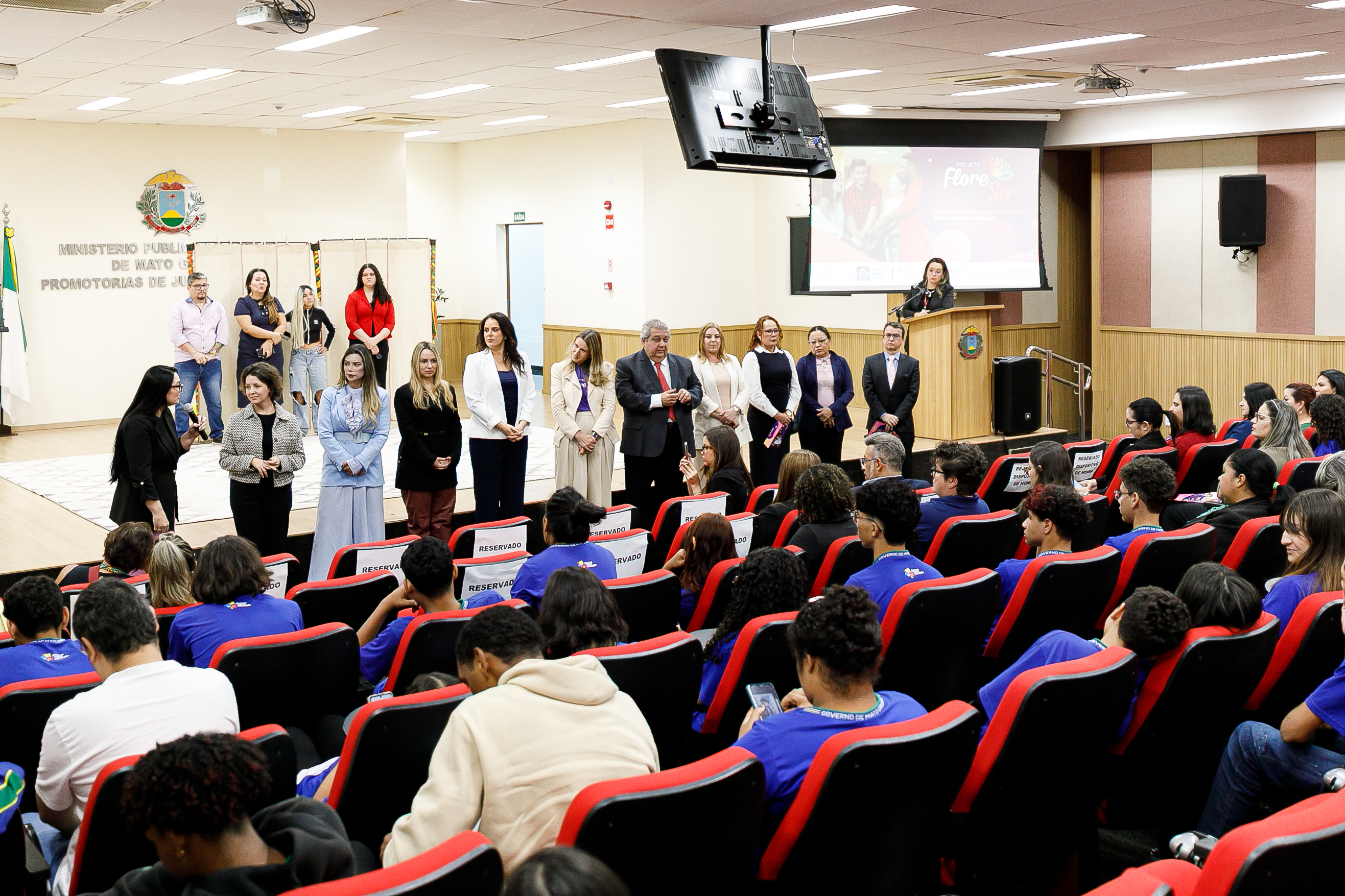 Promovido pelo Ministério Público de Mato Grosso (MPMT), por meio do Núcleo das Promotorias de Enfrentamento à Violência Doméstica e Familiar – Espaço Caliandra, o evento reuniu autoridades, educadores, estudantes e representantes da rede de proteção às mulheres.